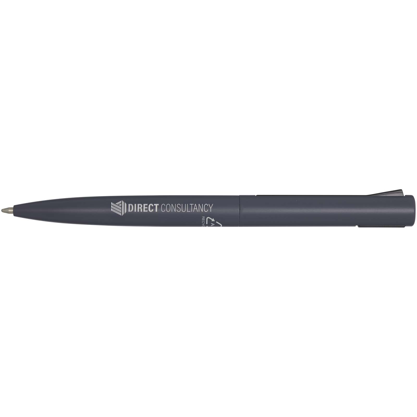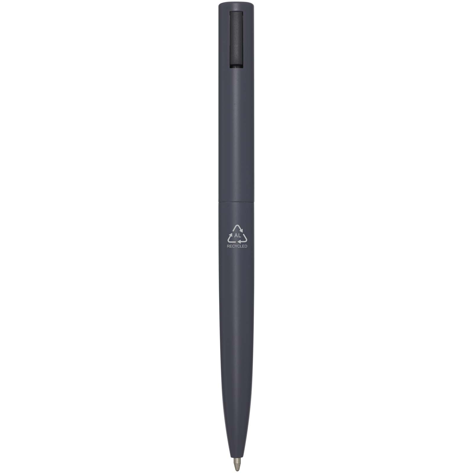 Długopis z górną częścią korpusu wykonaną z tworzyw sztucznych pochodzących z recyklingu i dolną częścią korpusu wykonaną z aluminium pochodzącego z recyklingu. Klips wykonany jest z żelaza. Kolor tuszu: Niebieski. Żywotność: 1000 metrów. Rozmiar stalówki: 1,0 mm.