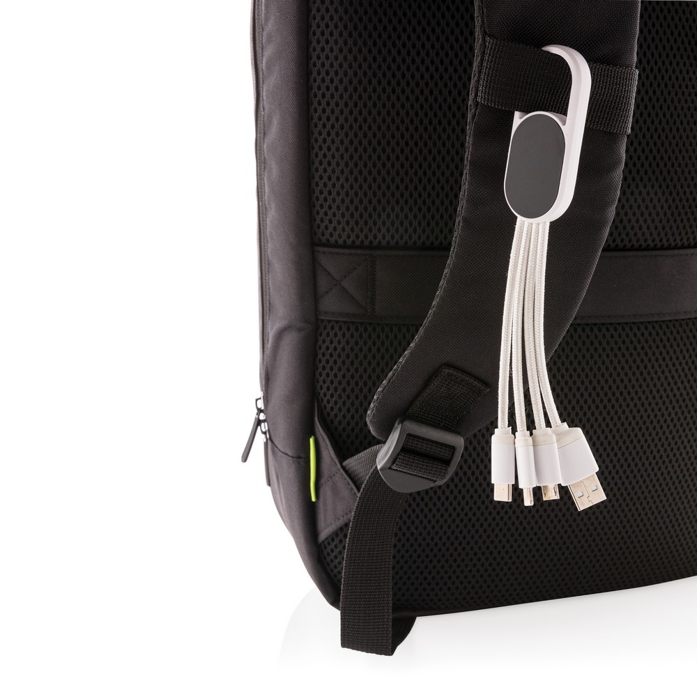 Kabel do ładowania 4 w 1 z karabińczykiem z 4 końcówkami: USB, micro USB, USB typu C oraz końcówką 2 w 1 (micro USB oraz kompatybilną z urządzeniami iOS), obudowa wykonana z ABS, nylonowe kable o długości 10 cm, obsługuje ładowanie do 2.1A, ślad węglowy produktu: 0,47 kg CO2