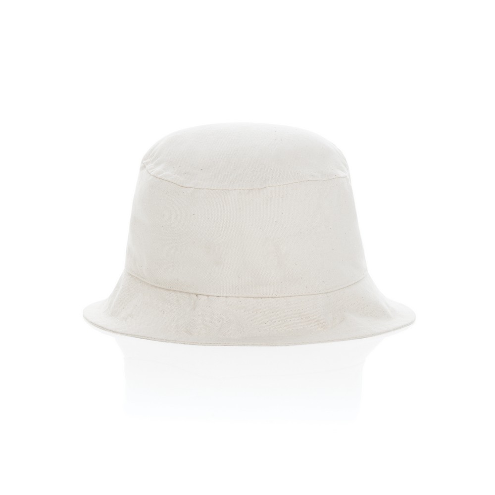 Płócienny kapelusz typu bucket, 285g/m2, niebarwiony, wykonany w 30% z poliestru i 70% z bawełny pochodzących z recyklingu, dzięki zastosowaniu technologii AWARE™ wykorzystane materiały są identyfikowalne z pochodzenia, 2% wpływów z każdego sprzedanego produktu z kolekcji Impact jest przekazywane na rzecz Water.org
