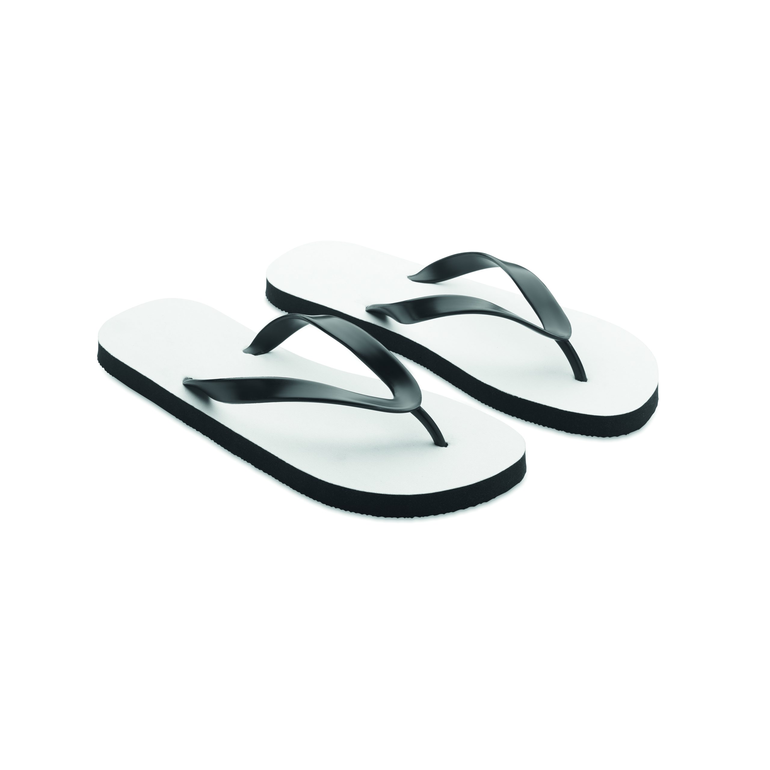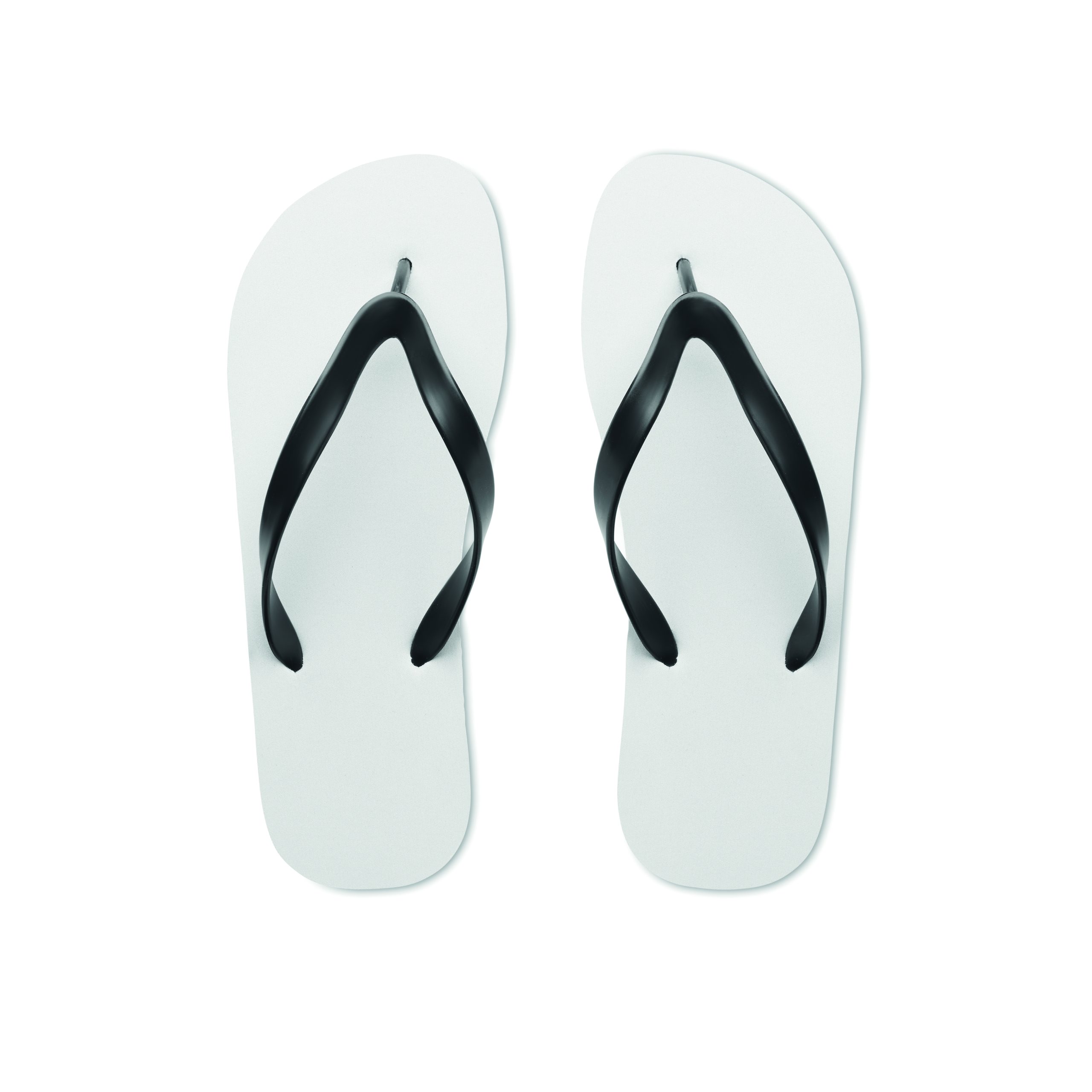 Klapki plażowe do sublimacji z paskami z PVC. Podeszwa wykonana z gumy z wierzchnią tkaniną poliestrową. Rozmiar 38-41. Przedmiot może być zamówiony wyłącznie z nadrukiem.