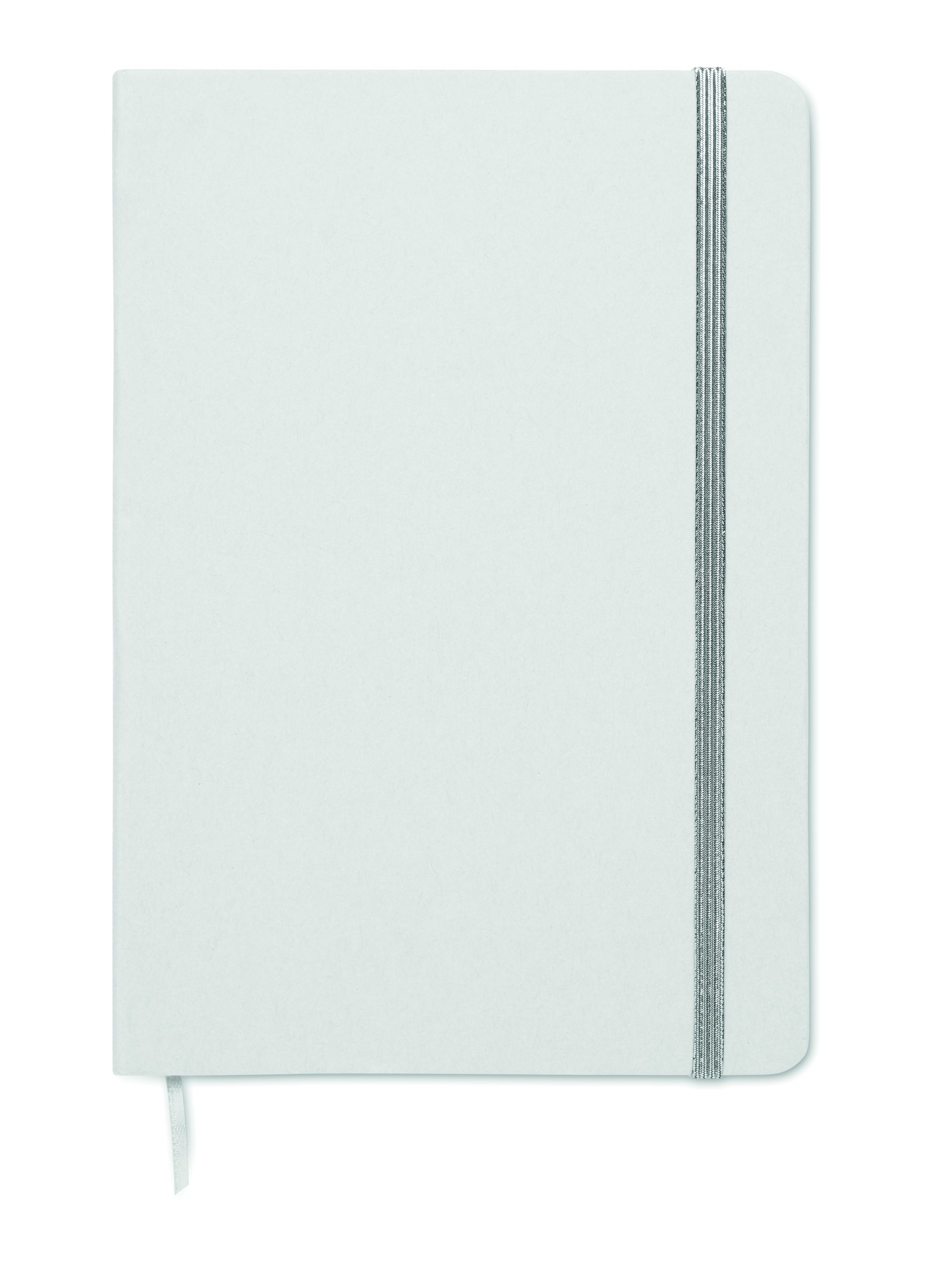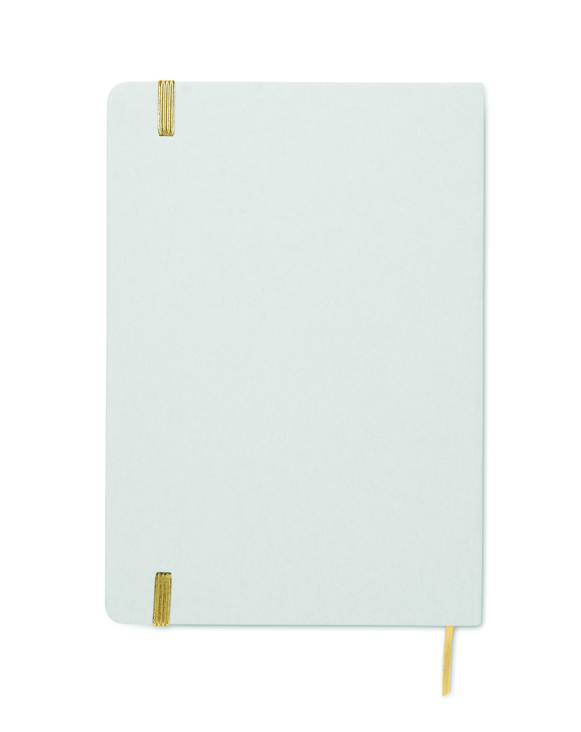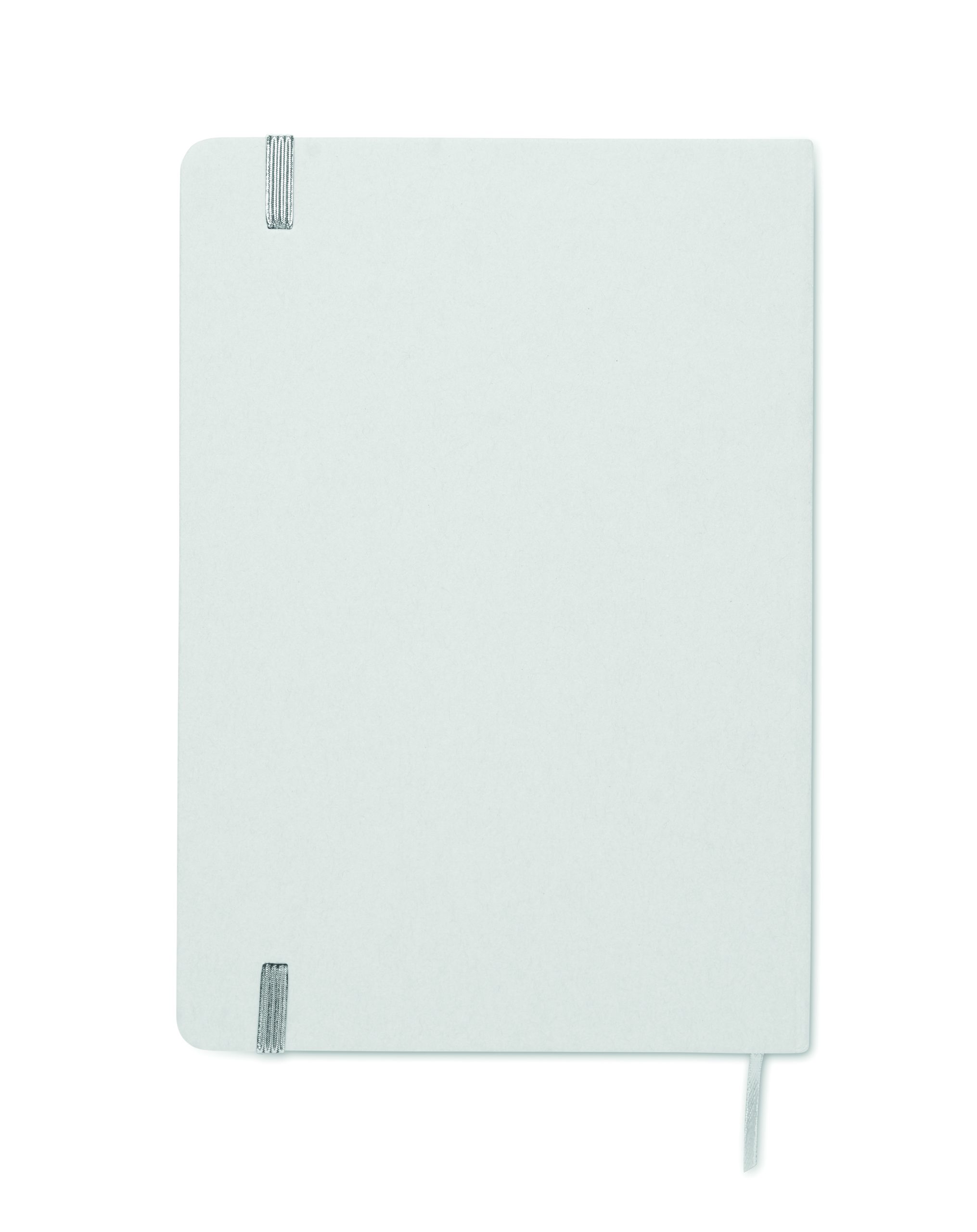 Notatnik A5 z twardą okładką wykonany w 70% z kartonu po mleku i w 30% z papieru z recyklingu. Białą okładka w kartonowej oprawie . 160 stron w linie (80 kartek). Gumka zamykająca, wstążkowa zakładka dopasowana do uwidocznionego koloru. Po grawerowaniu laserowym kolor jest widoczny.