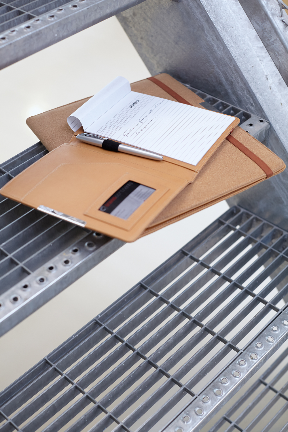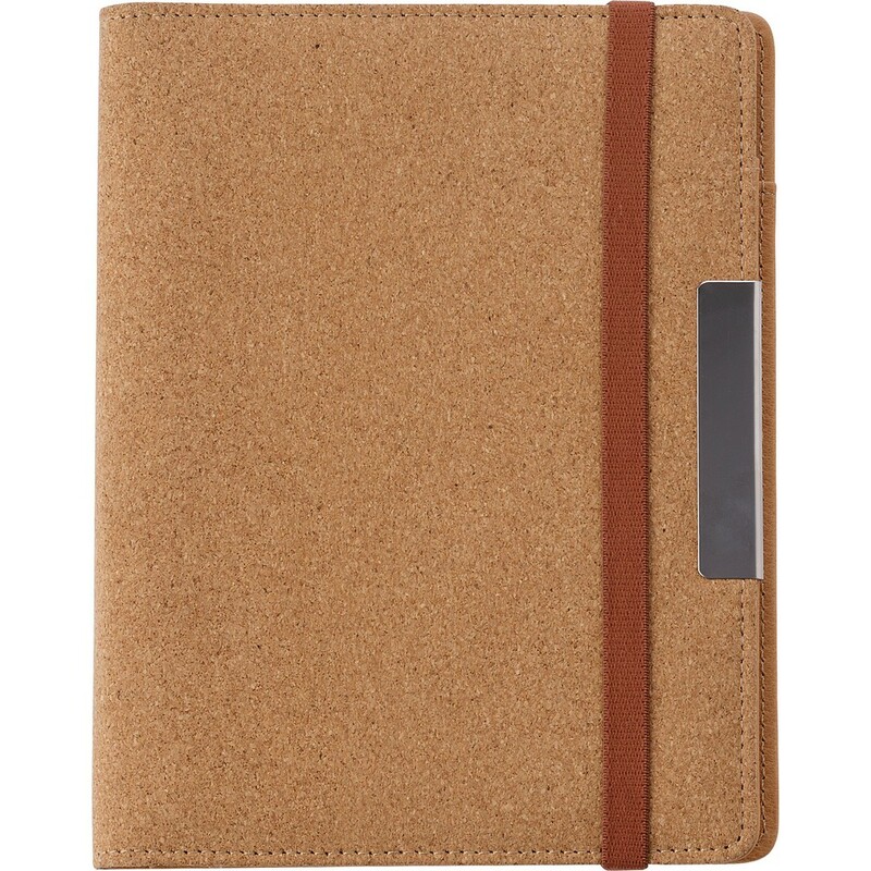 Korkowa teczka konferencyjna ok. A5 z notatnikiem (25 kartek w linie, jednostronnie), kieszenie wewnętrzne i elastyczna opaska do zamykania, miejsce na przybory do pisania (nie dołączone)