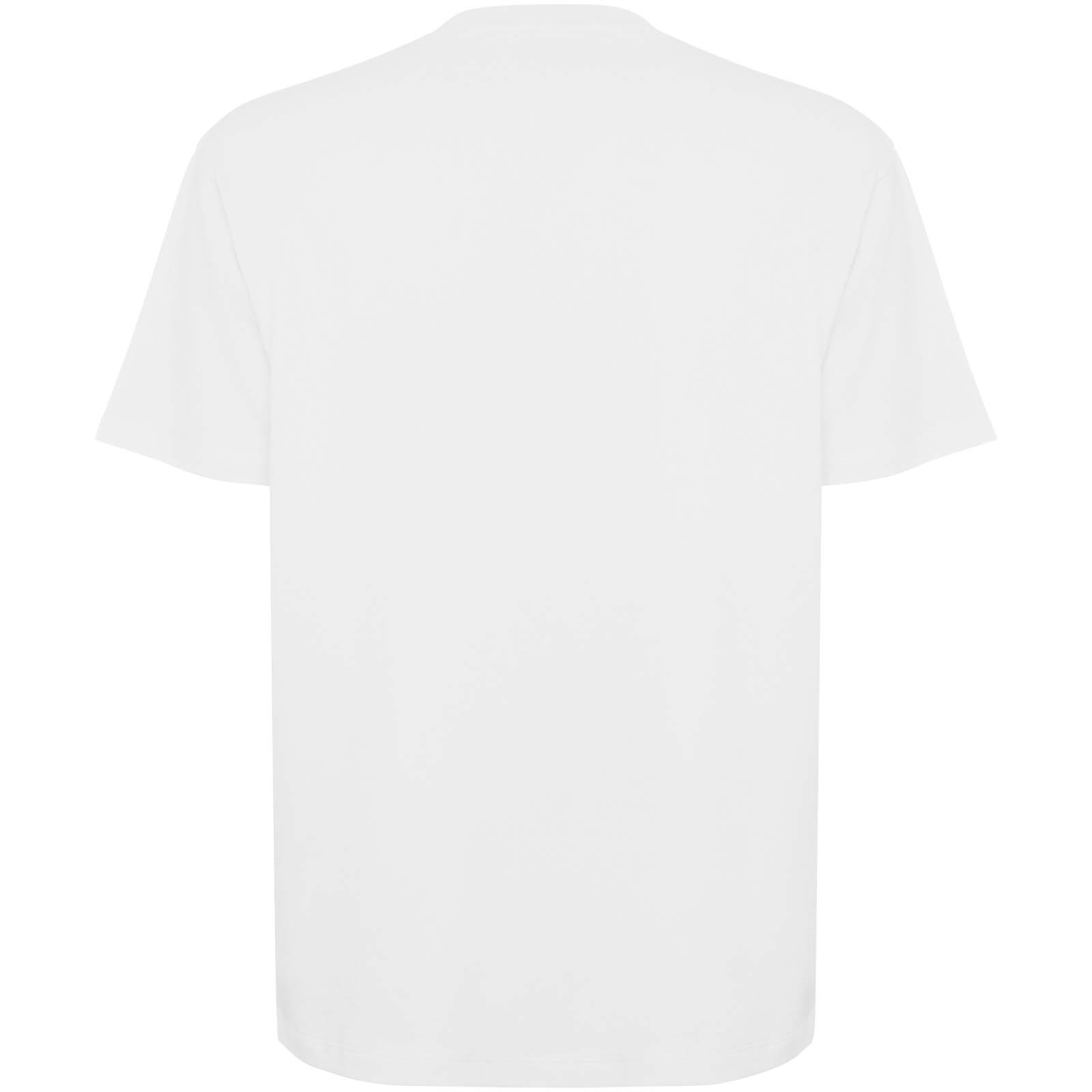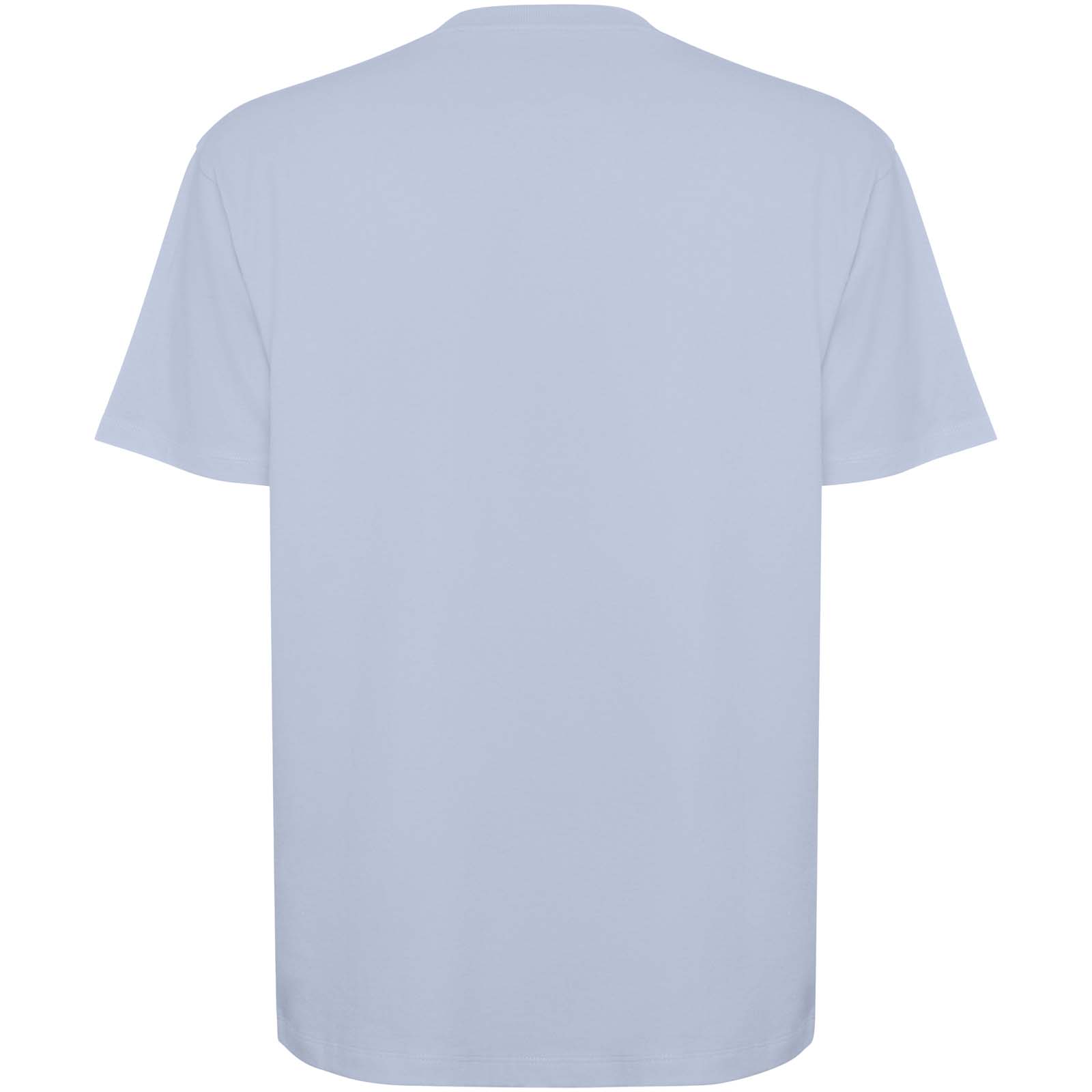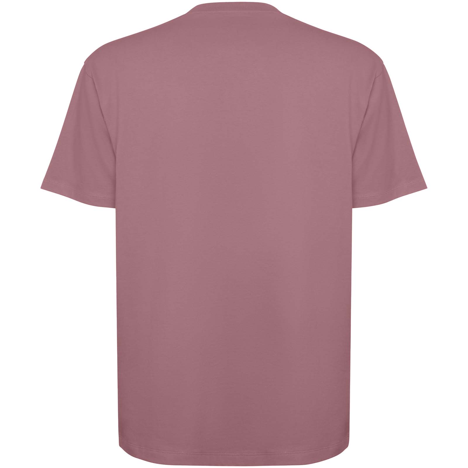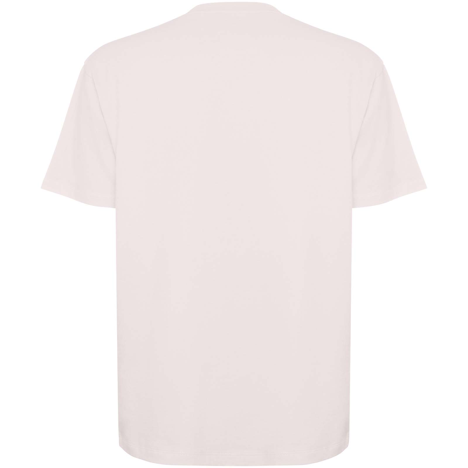 Ovesizowa koszulka z krótkim rękawem. Okrągły kołnierzyk wykończony ściągaczem 2×1 z dopasowanymi obszyciami szwów. Szwy boczne. Szerokie podwójne szwy na rękawach i u dołu. Usuwalna etykieta.