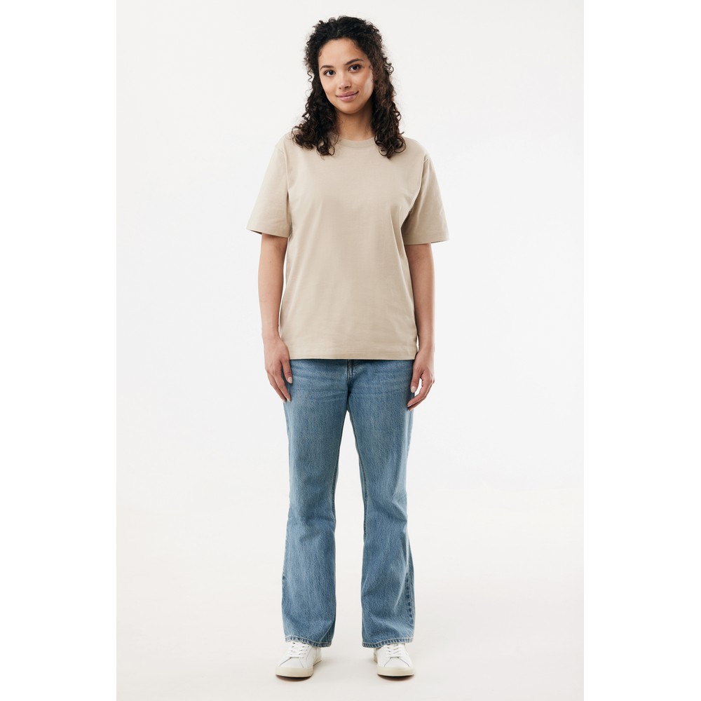 Koszulka, unisex, nowoczesny krój, okrągły dekolt, krótkie rękawy, wykonana w 50% z bawełny z recyklingu i w 50% z bawełny organicznej o gramaturze 220 g/m2, bez dodatku poliestru, posiada wbudowany znacznik AWARE™, który potwierdza wykorzystanie materiałów z recyklingu, posiada kod QR na metce, który prowadzi do cyfrowego paszportu produktu, 2% wpływów z każdego sprzedanego produktu jest przekazywane na rzecz Water.org