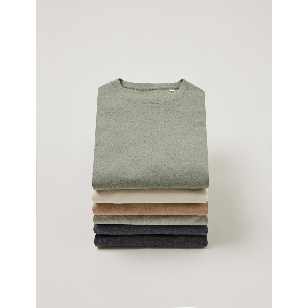 Koszulka, unisex, regularny krój, okrągły dekolt, splot Single Jersey, krótkie rękawy, niebarwiona bawełna, wykonana w 50% z bawełny z recyklingu i w 50% z bawełny organicznej o gramaturze 180 g/m2, bez dodatku poliestru, posiada wbudowany znacznik AWARE™, który potwierdza wykorzystanie materiałów z recyklingu, posiada kod QR na metce, który prowadzi do cyfrowego paszportu produktu, 2% wpływów z każdego sprzedanego produktu z kolekcji Impact jest przekazywane na rzecz Water.org, ślad węglowy produktu: 3,34 kg CO2