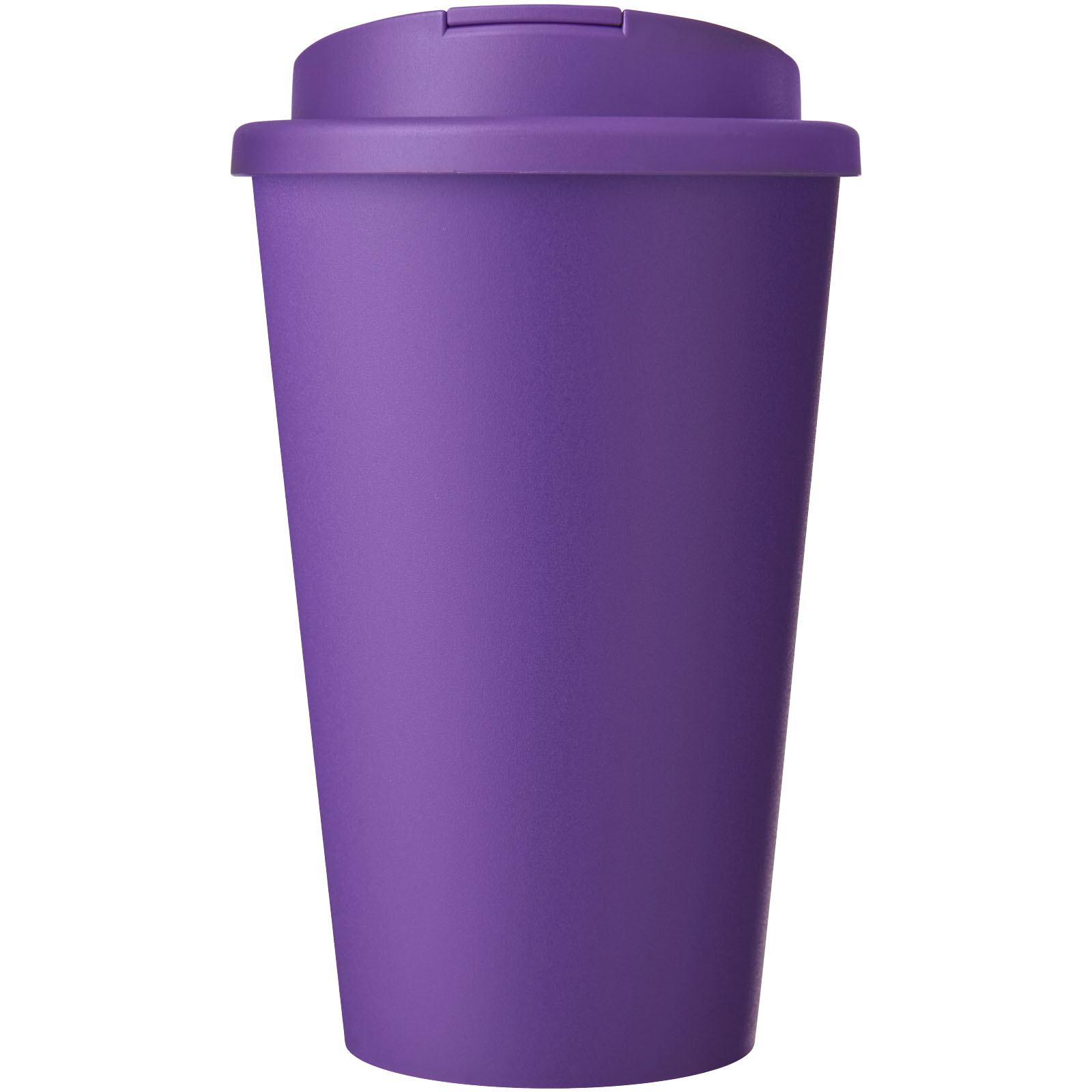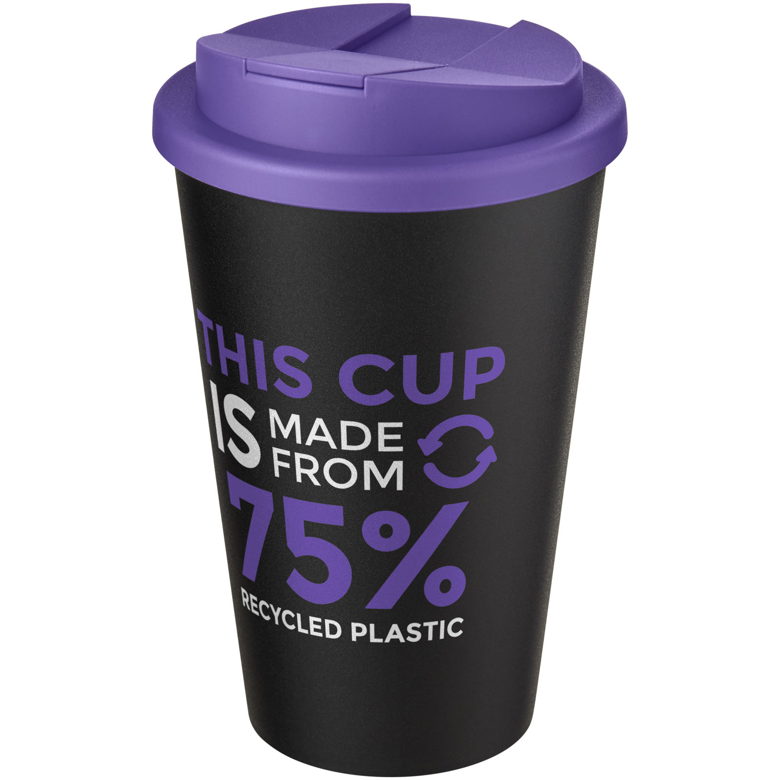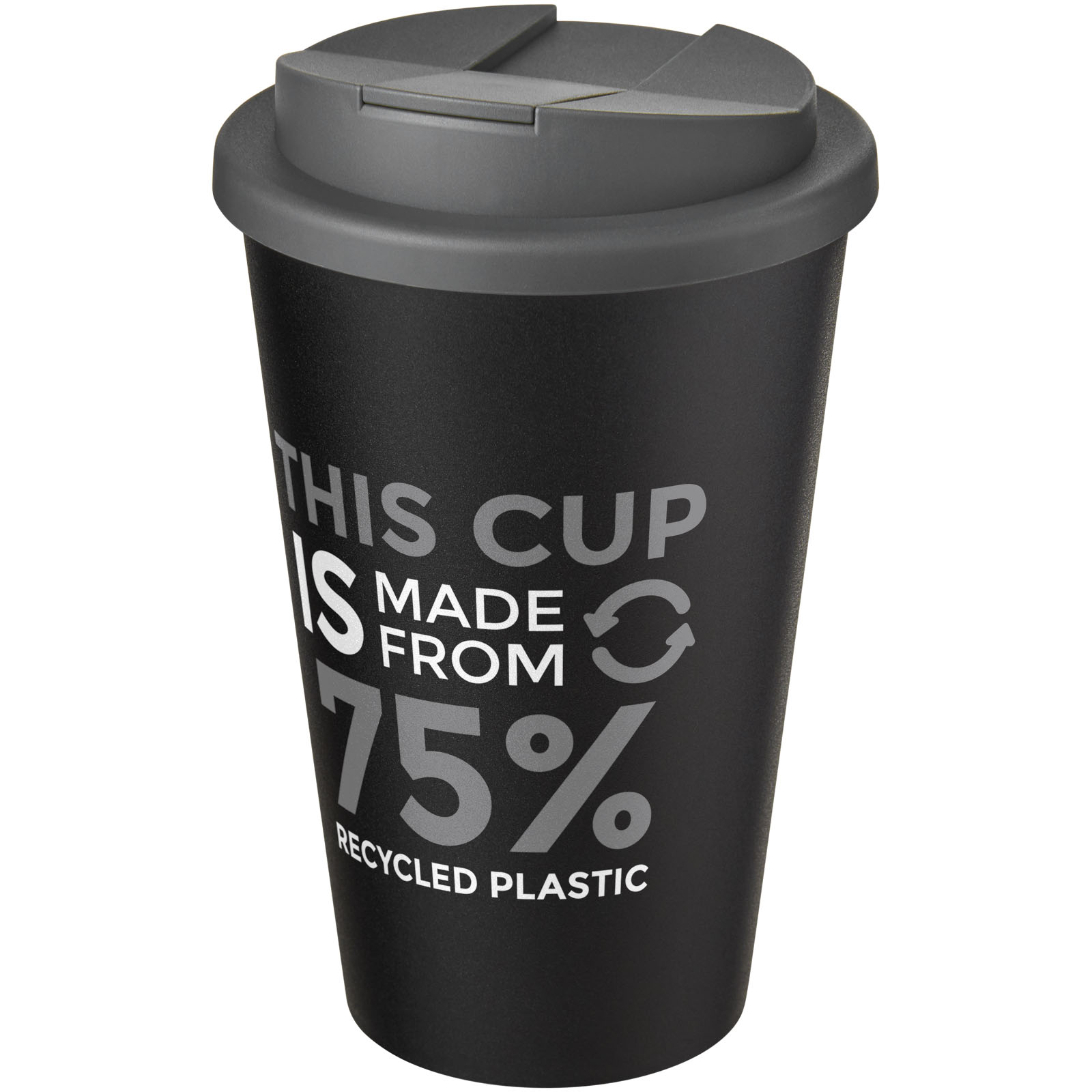 Dwuwarstwowy, izolowany kubek ze szczelną zakręcaną pokrywą odporną na zalanie. Pokrywa zamykana jest na zatrzask, aby lepiej zapobiegać rozlaniom i wykonana została bez użycia silikonu, dzięki czemu kubek w pełni nadaje się do recyklingu. Kubek wykonany jest w 100% z polipropylenu, a pokrywka z polipropylenu klasy spożywczej. Zgodny z EN12875-1; nadaje się do mycia w zmywarce oraz podgrzewania w kuchence mikrofalowej. Pojemność 350 ml. Dostarczany w torbie, którą można kompostować w domu. Wyprodukowano w Wielkiej Brytanii. Produkt wolny od BPA.