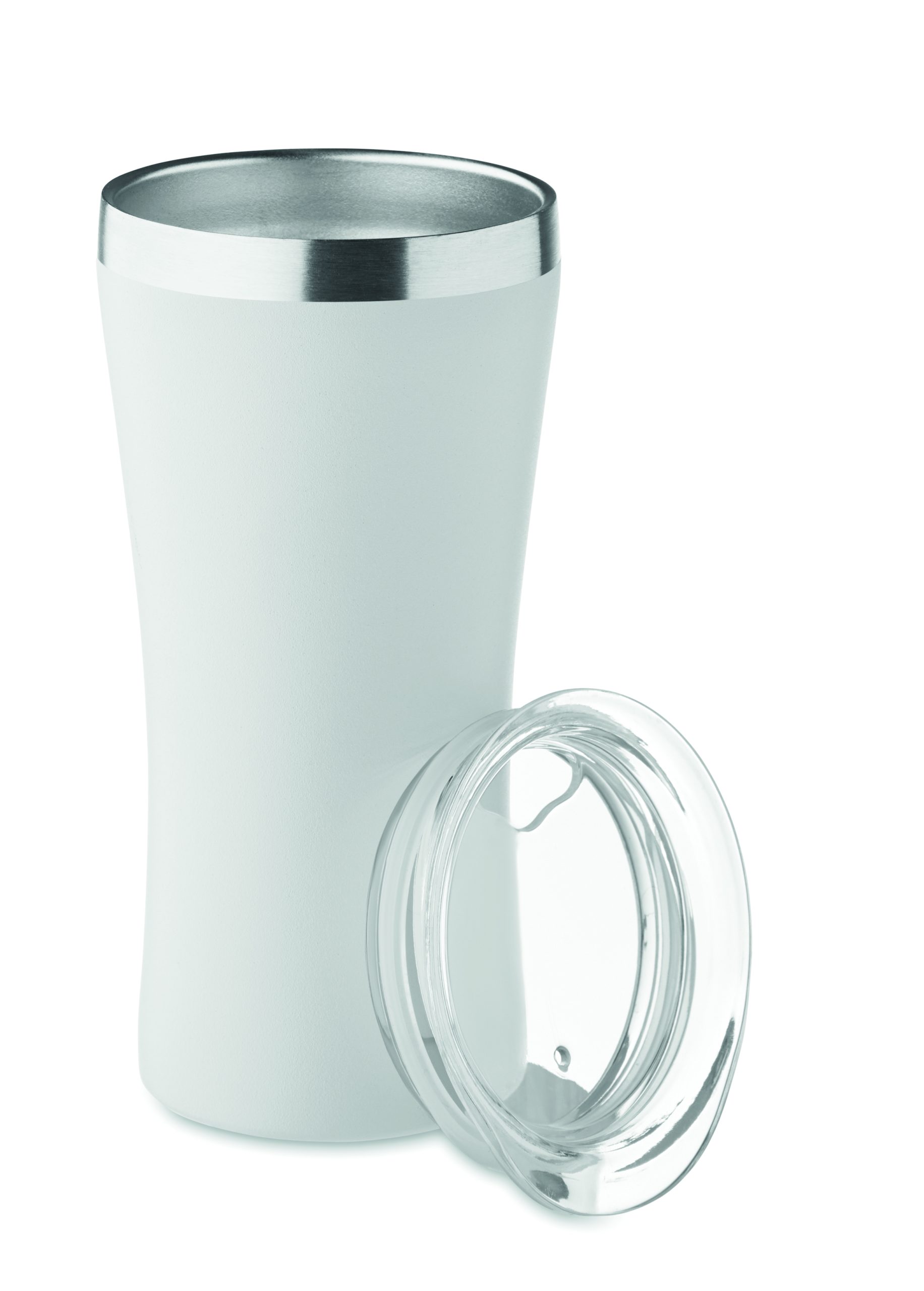 Mały kubek o podwójnych ściankach izolowanych próżniowo, wykonany ze stali nierdzewnej z recyklingu (90% stali nierdzewnej z recyklingu i 10% stali nierdzewnej), z zakrętką z otworem do picia z przezroczystego PP. Pojemność: 160 ml.