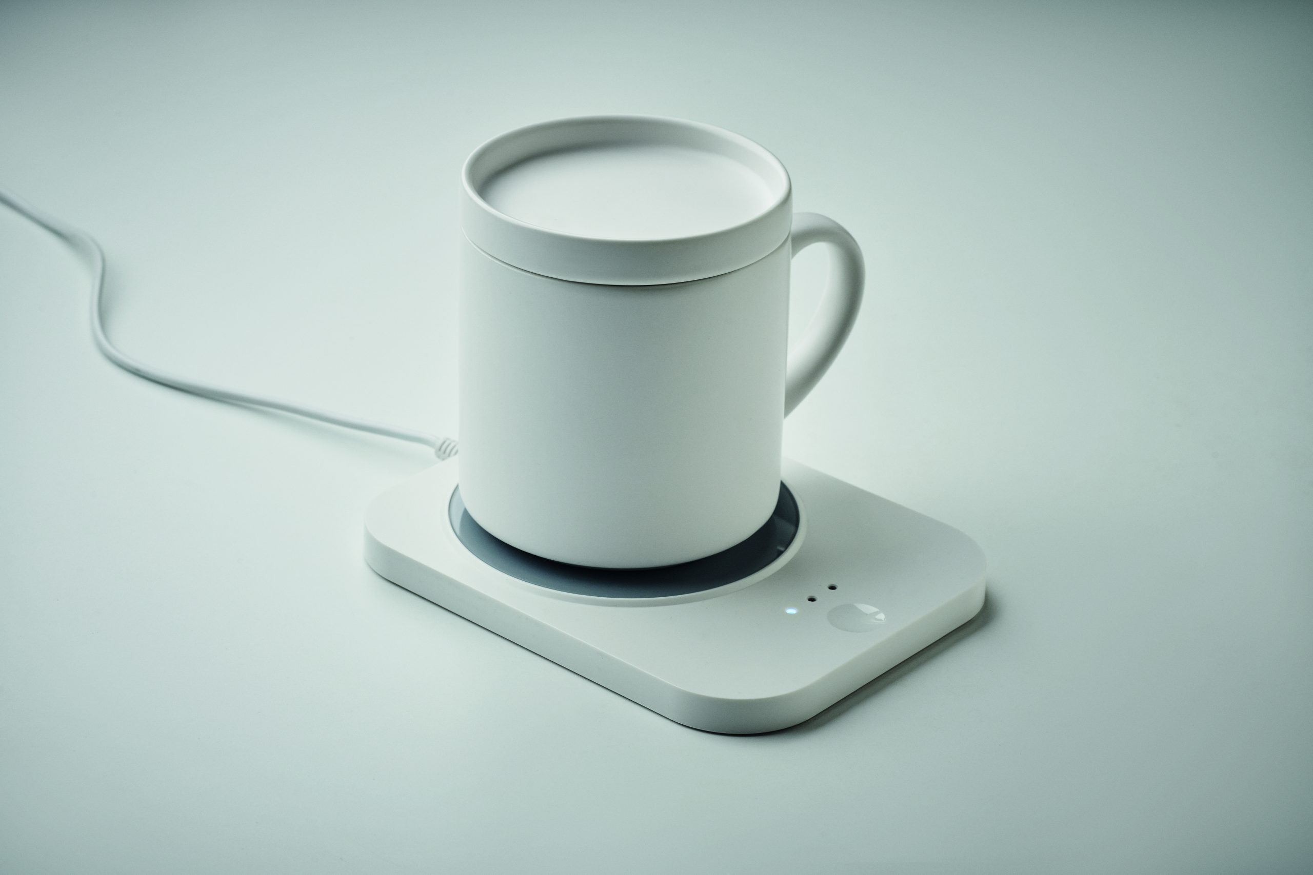 Podgrzewacz do kubków z bezprzewodową ładowarką i kubkiem 2 w 1 o mocy 15 W z ABS. Utrzymuje temperaturę napojów do maksymalnie 50ºC. 3 ustawienia temperatury z ekranem dotykowym. Kabel połączeniowy USB. Wyjście: DC 9V/1.67A (15W)