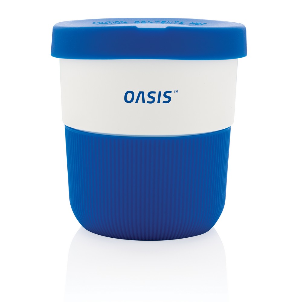 Kubek podróżny 250 ml, wykonany z PLA, silikonowe wieczko i uchwyt, pasuje do większości ekspresów do kawy, nie zawiera melaminy, ślad węglowy produktu: 0,63 kg CO2