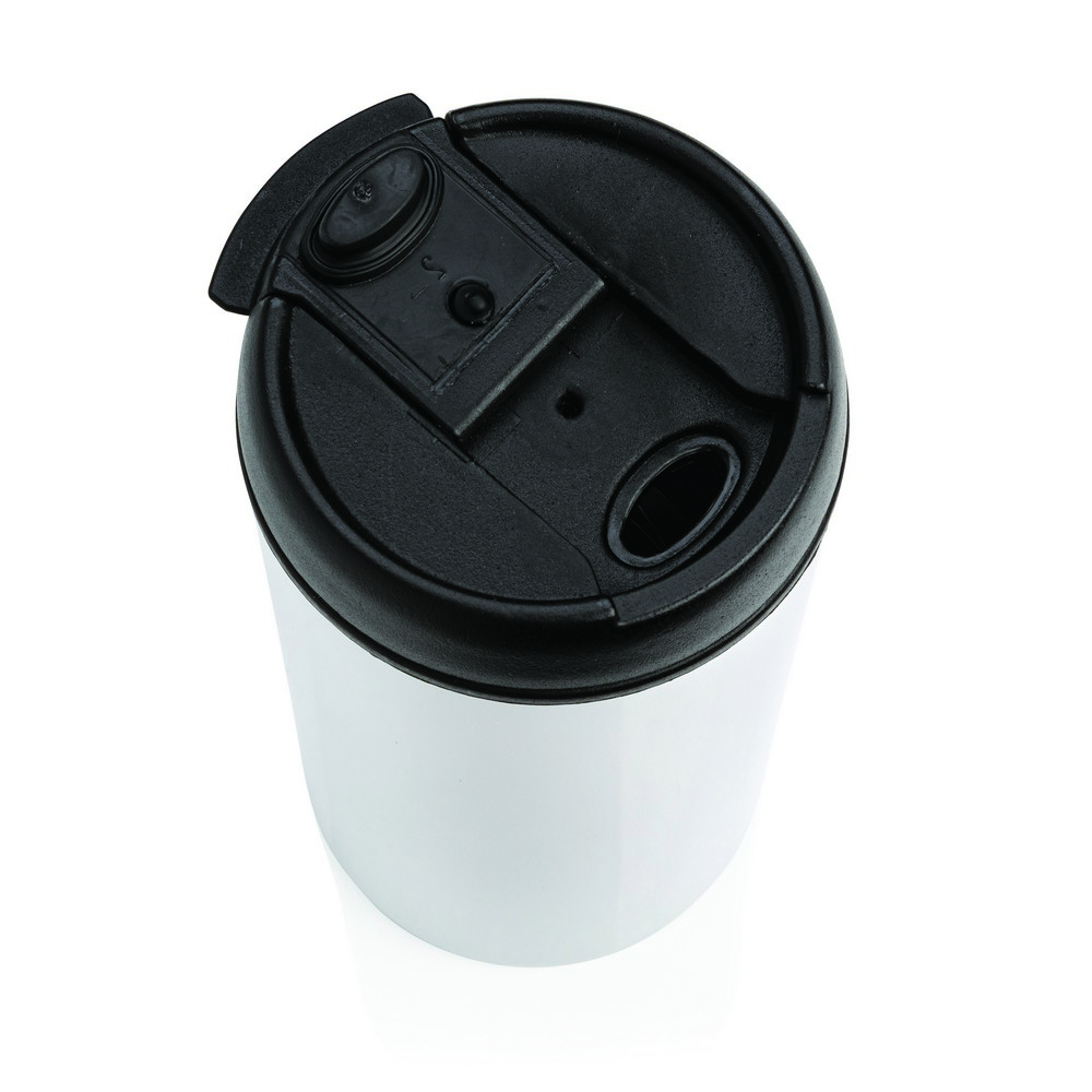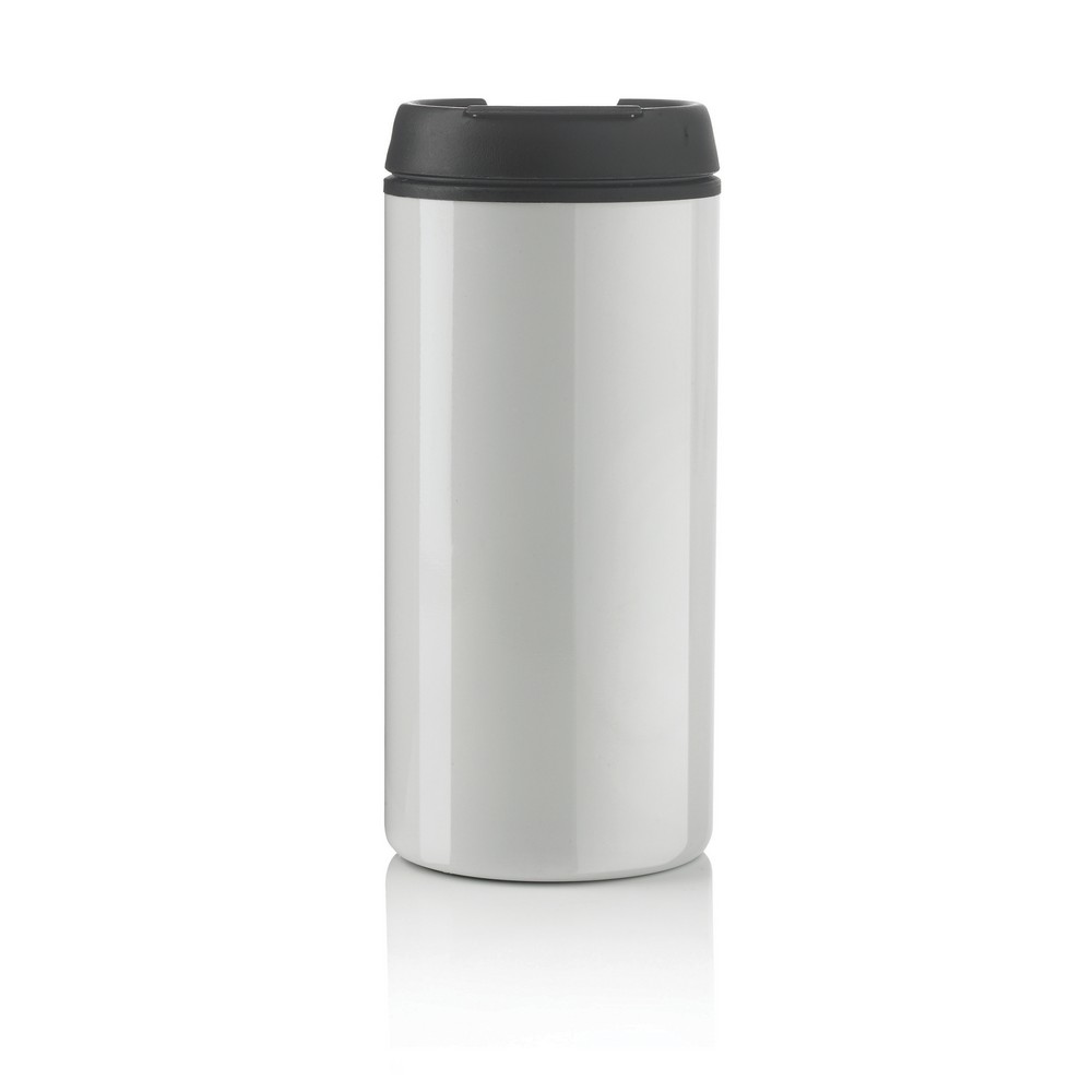 Kubek podróżny 300 ml, wykonany z materiałów pochodzących z recyklingu, całkowita zawartość materiałów z recyklingu obliczona na podstawie wagi całkowitej przedmiotu: 90%, w ozdobnym pudełku z papieru kraftowego z certyfikatem FSC®, wzór zastrzeżony®, utrzymuje temperaturę napojów gorących do 4 godzin