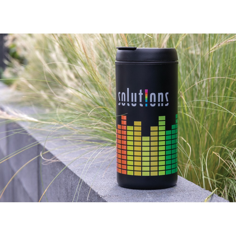 Kubek podróżny 300 ml, wykonany z materiałów pochodzących z recyklingu, całkowita zawartość materiałów z recyklingu obliczona na podstawie wagi całkowitej przedmiotu: 90%, w ozdobnym pudełku z papieru kraftowego z certyfikatem FSC®, wzór zastrzeżony®, utrzymuje temperaturę napojów gorących do 4 godzin