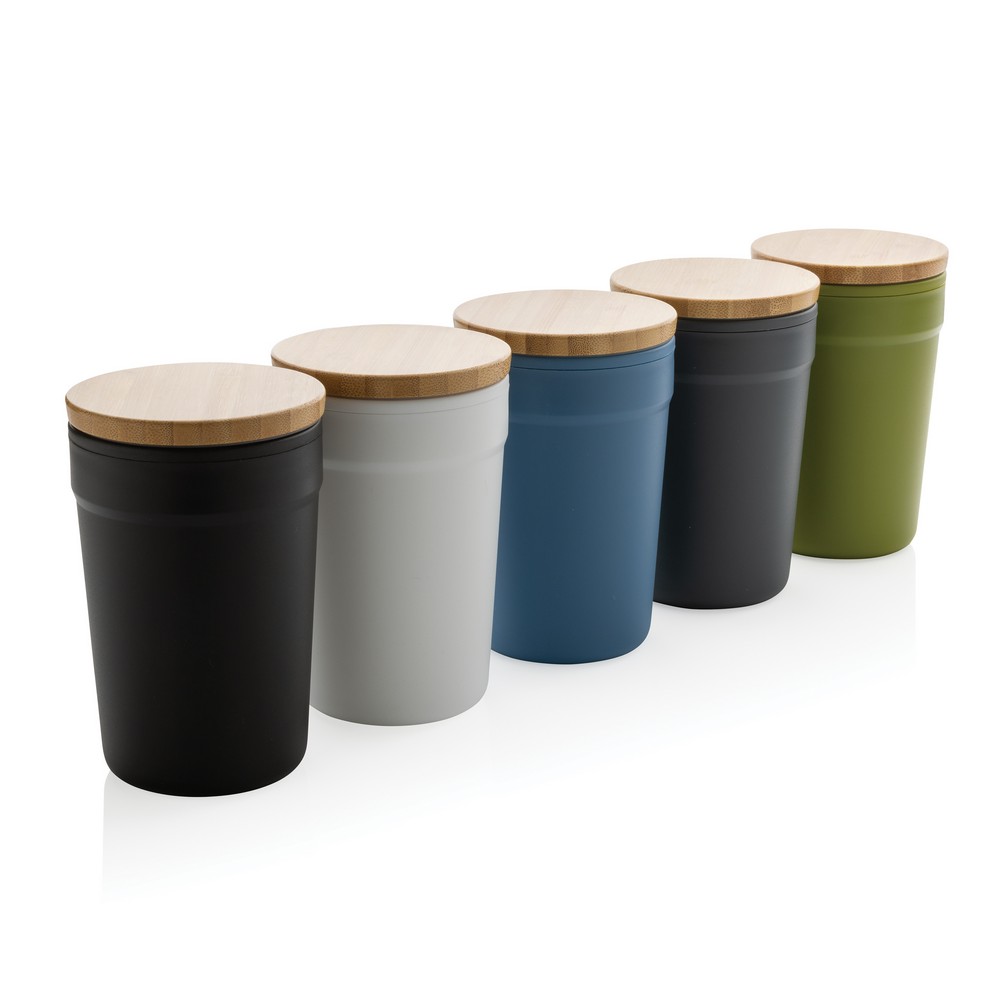 Kubek podróżny 300 ml, bambusowe wieczko, wykonany z PP z recyklingu z certyfikatem GRS, całkowita zawartość materiałów z recyklingu obliczona na podstawie wagi całkowitej przedmiotu: 52%, w ozdobnym pudełku z papieru kraftowego