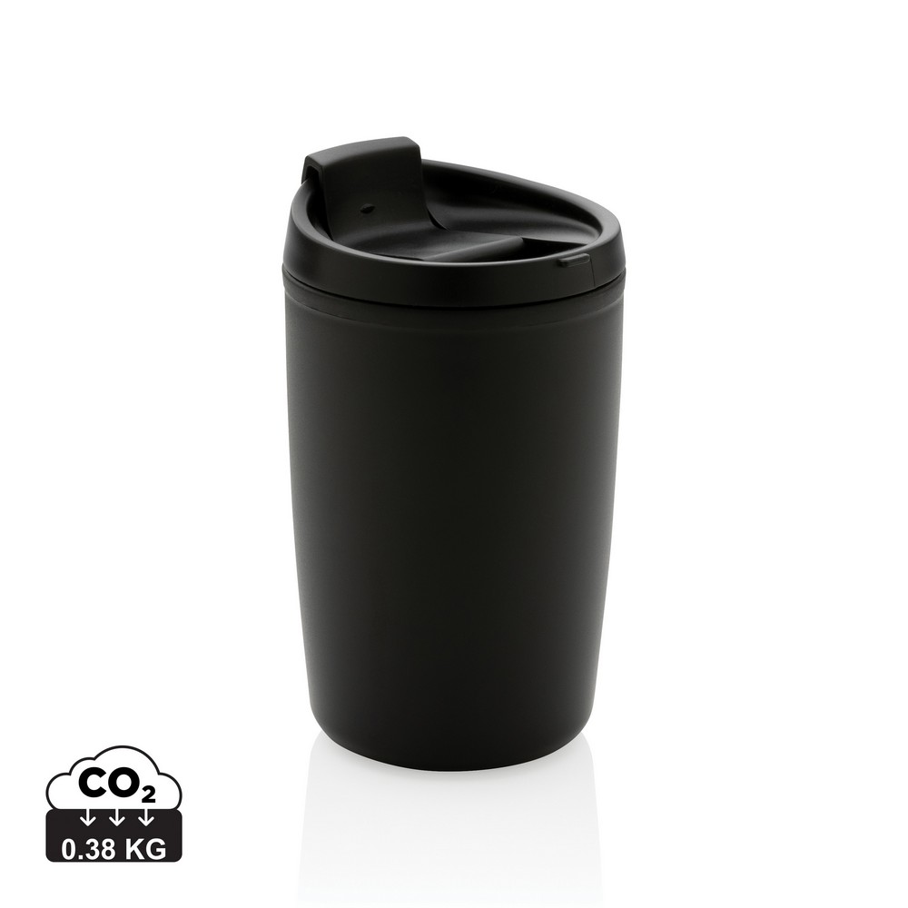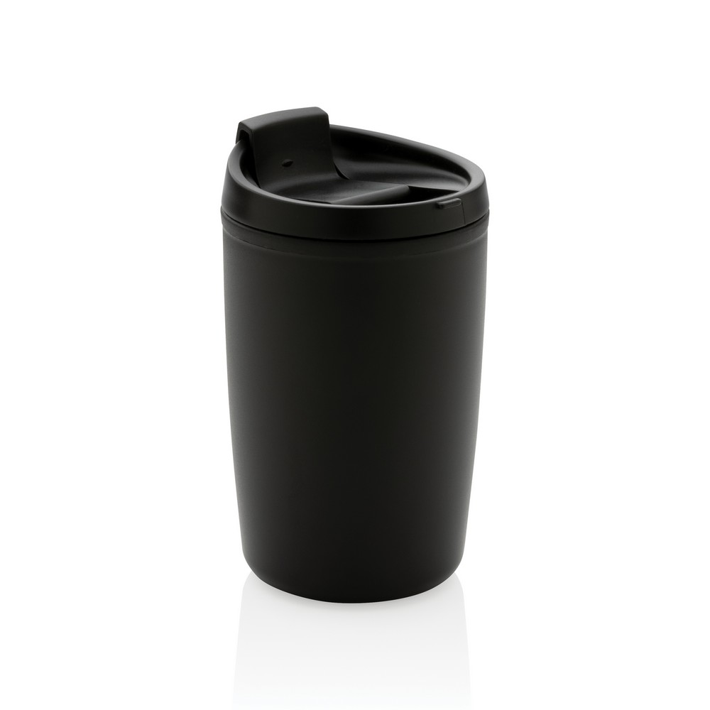 Kubek podróżny 300 ml, nie wymaga obsługi oburącz, wykonany z PP z recyklingu z certyfikatem GRS (Global Recycled Standard) który gwarantuje, że wykorzystane materiały pochodzą z recyklingu, całkowita zawartość materiału z recyklingu obliczona w oparciu o wagę całkowitą przedmiotu: 96%, można myć w zmywarce i używać w kuchence mikrofalowej, w pudełku z papieru kraftowego