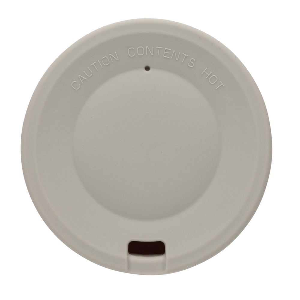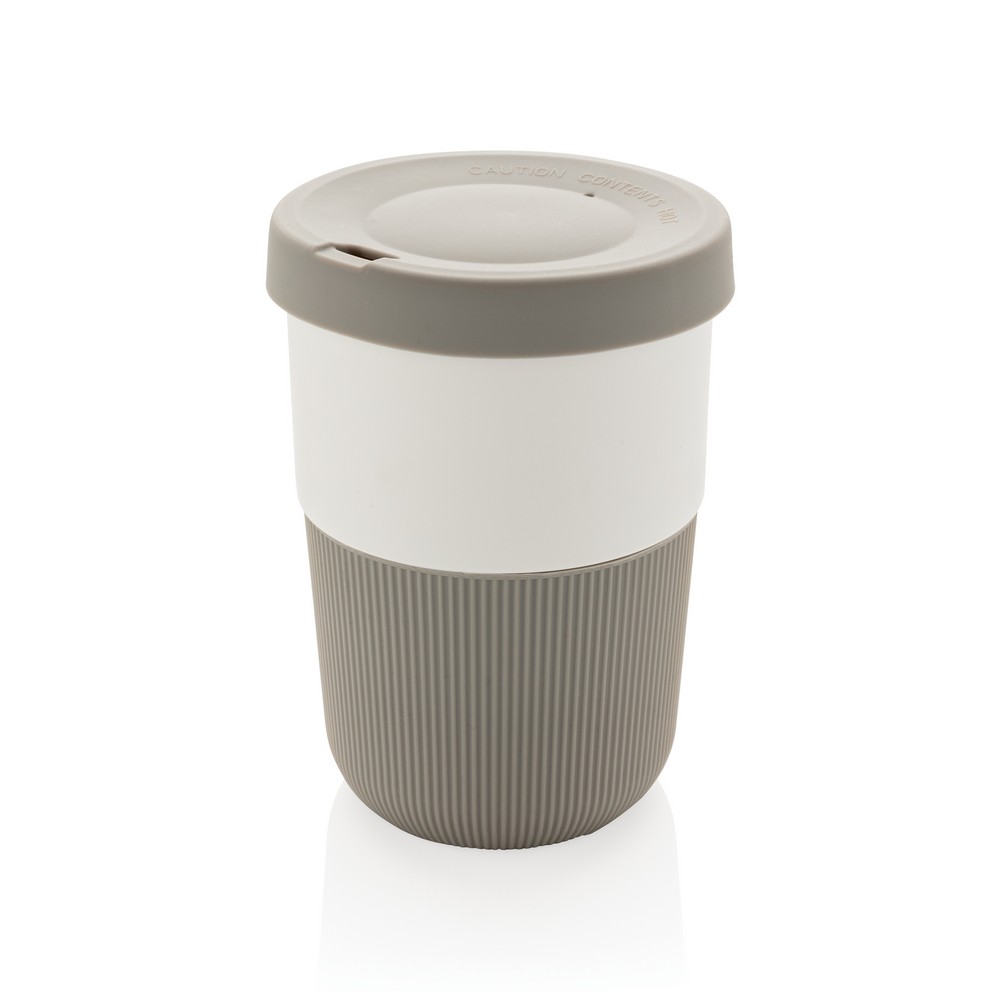 Kubek podróżny 380 ml, wykonany z PLA, silikonowe wieczko i uchwyt, nie zawiera melaminy, ślad węglowy produktu: 0,89 kg CO2