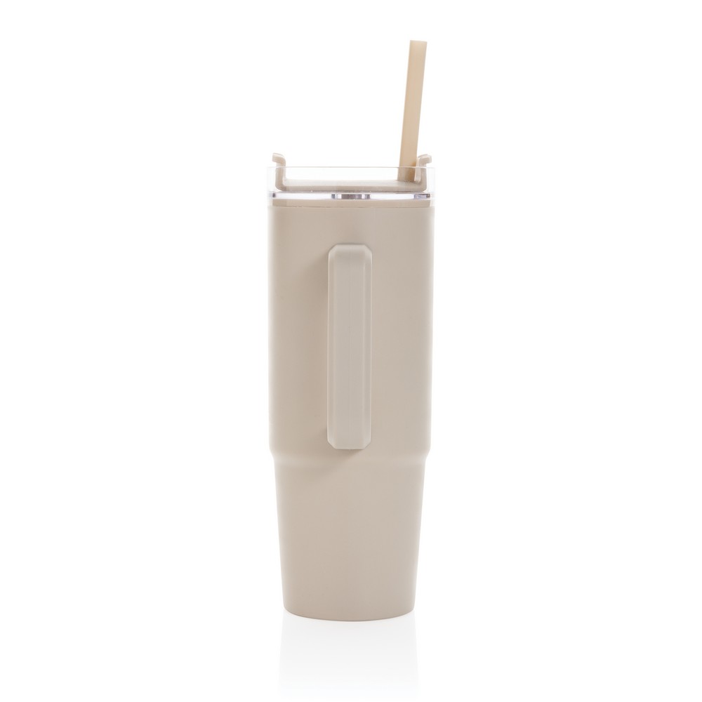 Kubek podróżny 750 ml, ergonomiczny uchwyt, obrotowe wieczko trzema pozycjami (dziubek do picia, otwór na słomkę, zamknięte), wykonany z materiałów z recyklingu, całkowita zawartość materiałów obliczona na podstawie wagi całkowitej przedmiotu: 80%, wyłącznie mycie ręczne, w pudełku z papieru kraftowego z certyfikatem FSC®