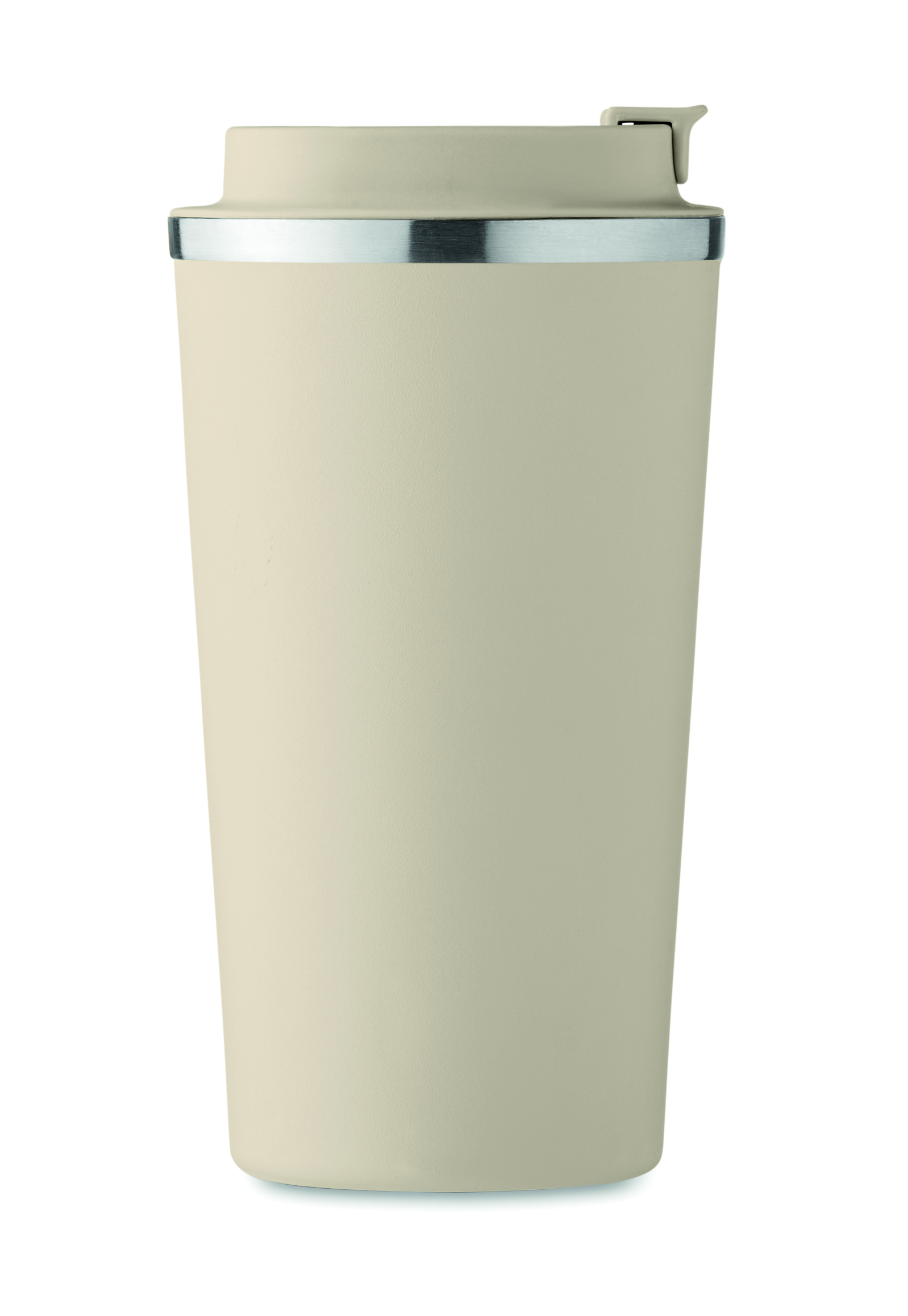 Kubek z podwójnymi ściankami z recyklingowanej stali nierdzewnej (90% z recyklingowanej stali nierdzewnej i 10% ze stali nierdzewnej) i pokrywką z PP. Pojemność: 510 ml. Nie przecieka.