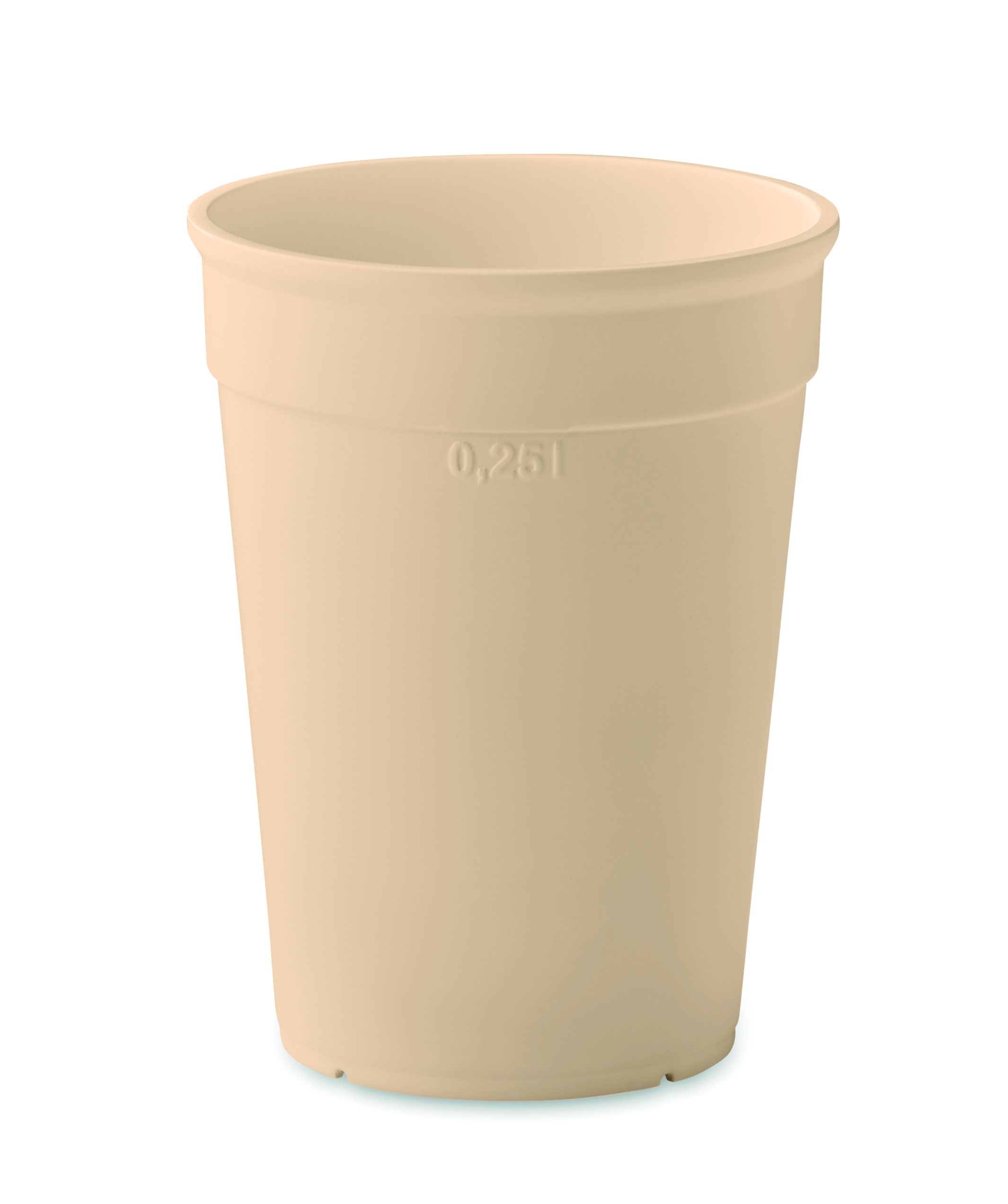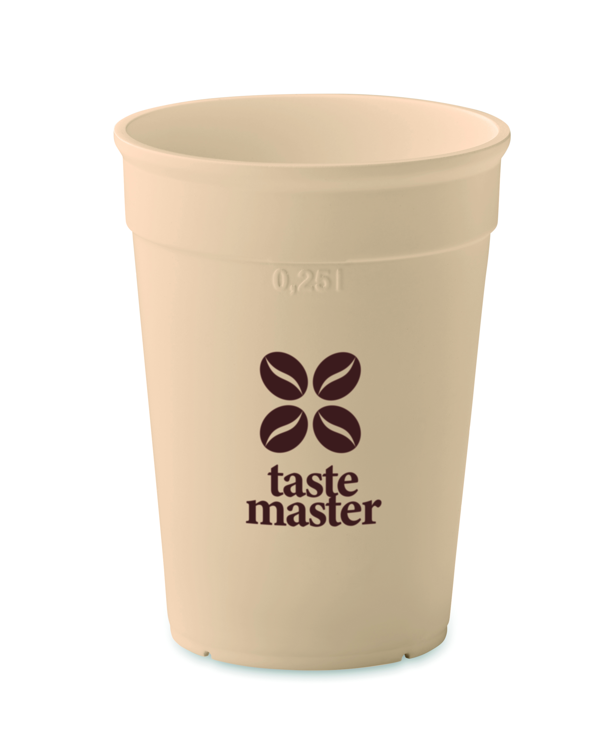Wielokrotnego użytku jednościankowy kubek na kawę z PP pochodzącego. Pojemność: 250 ml. Ponieważ jest to kubek z pojedynczą ścianką, może dochodzić do wymiany ciepła.