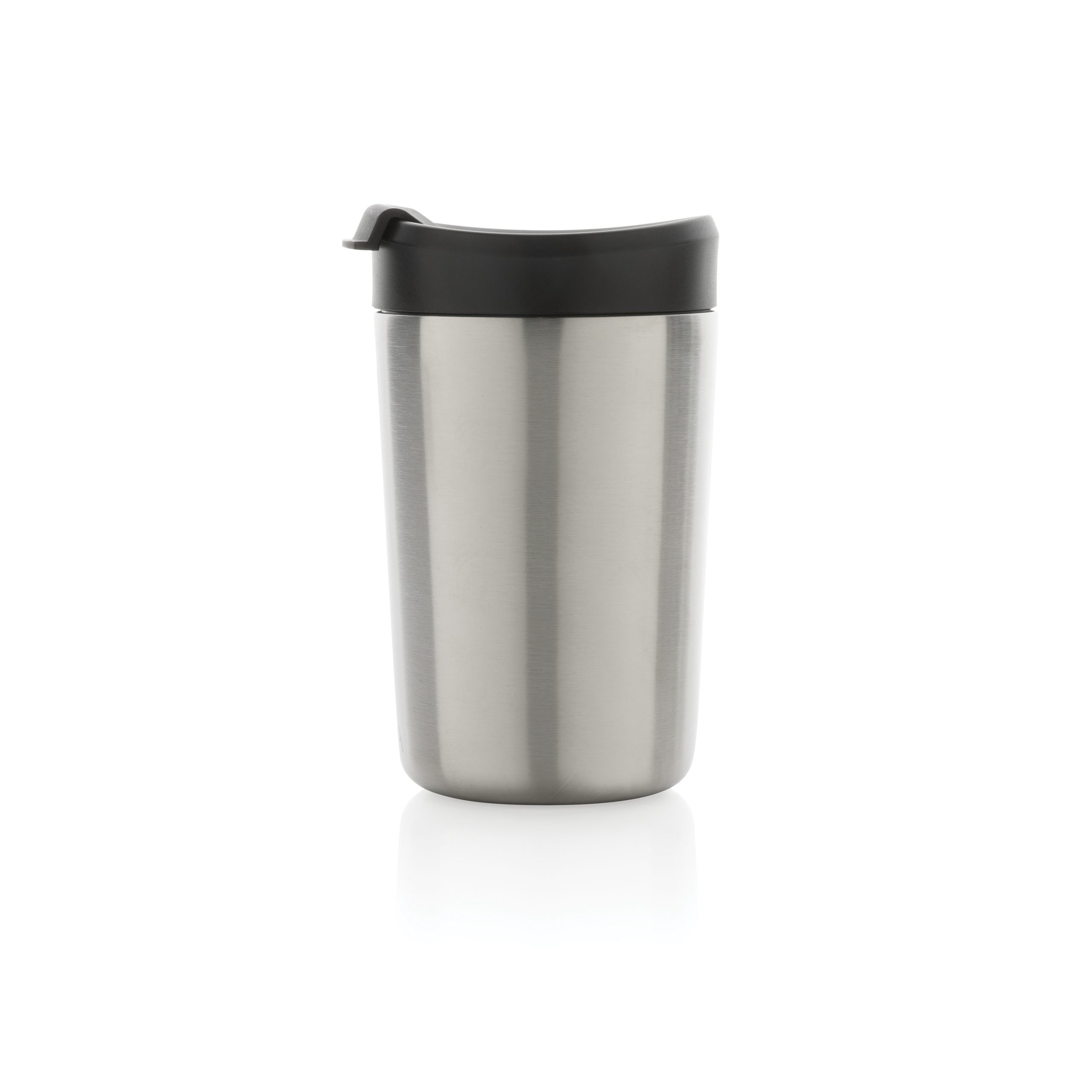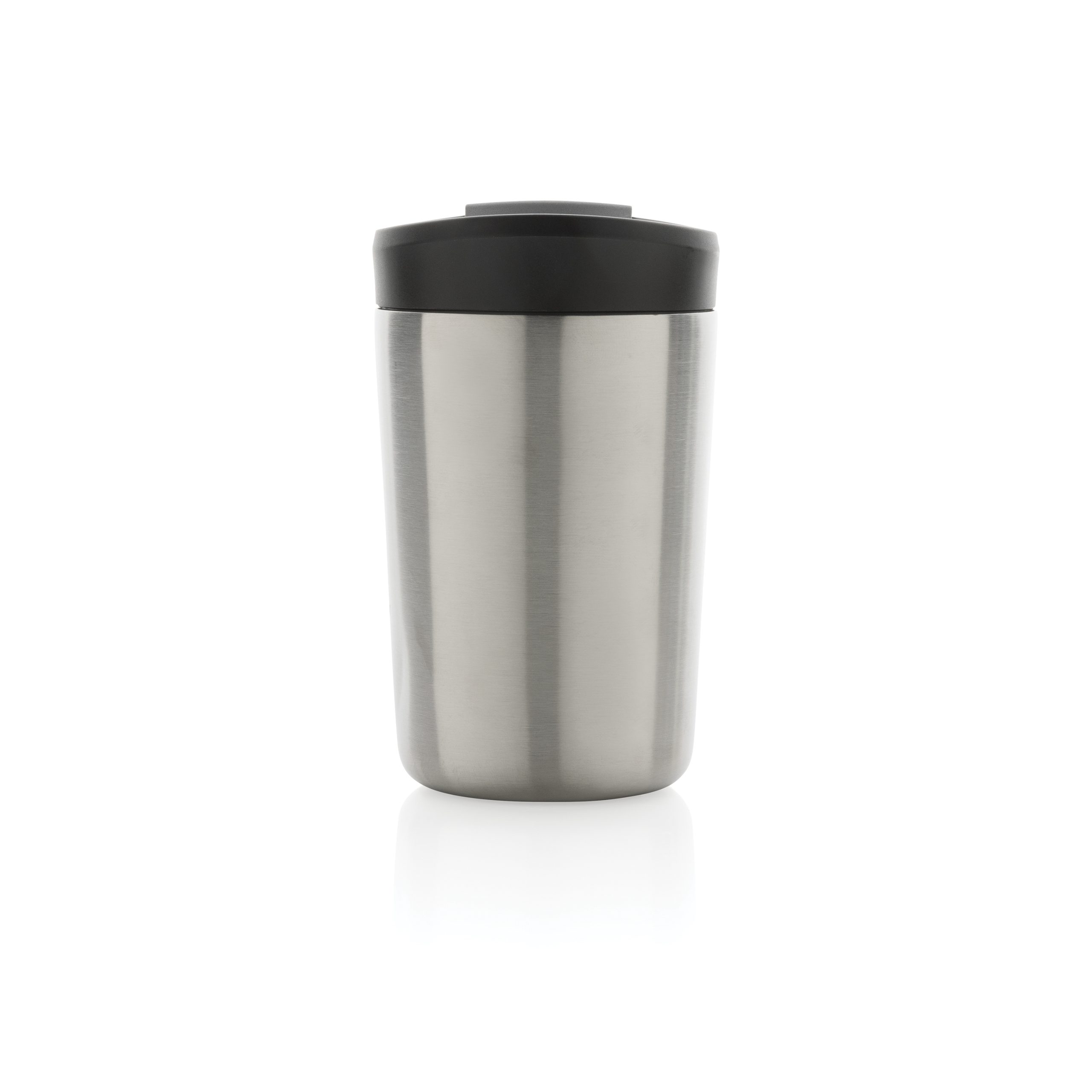 Kubek termiczny 300 ml, podwójne ścianki ze stali nierdzewnej z próżnią pomiędzy, wykonany ze stali nierdzewnej z recyklingu z certyfikatem RCS, całkowita zawartość materiałów z recyklingu obliczona na podstawie wagi całkowitej przedmiotu: 71%, w pudełku z papieru kraftowego z certyfikatem FSC®, pudełko można wykorzystać jako stojak na telefon lub doniczkę