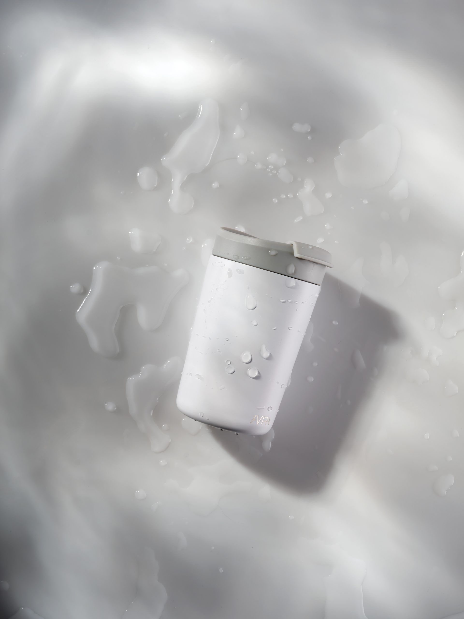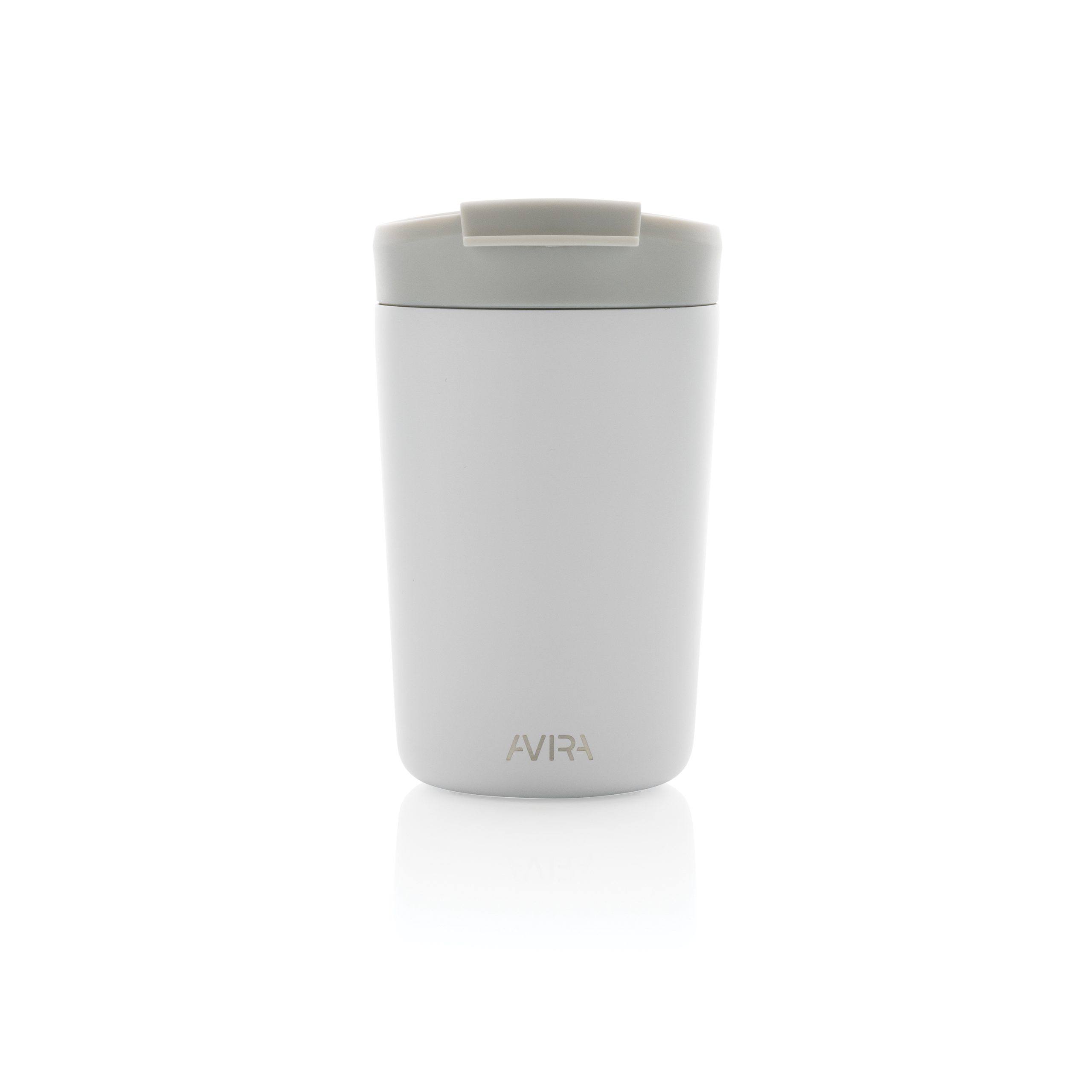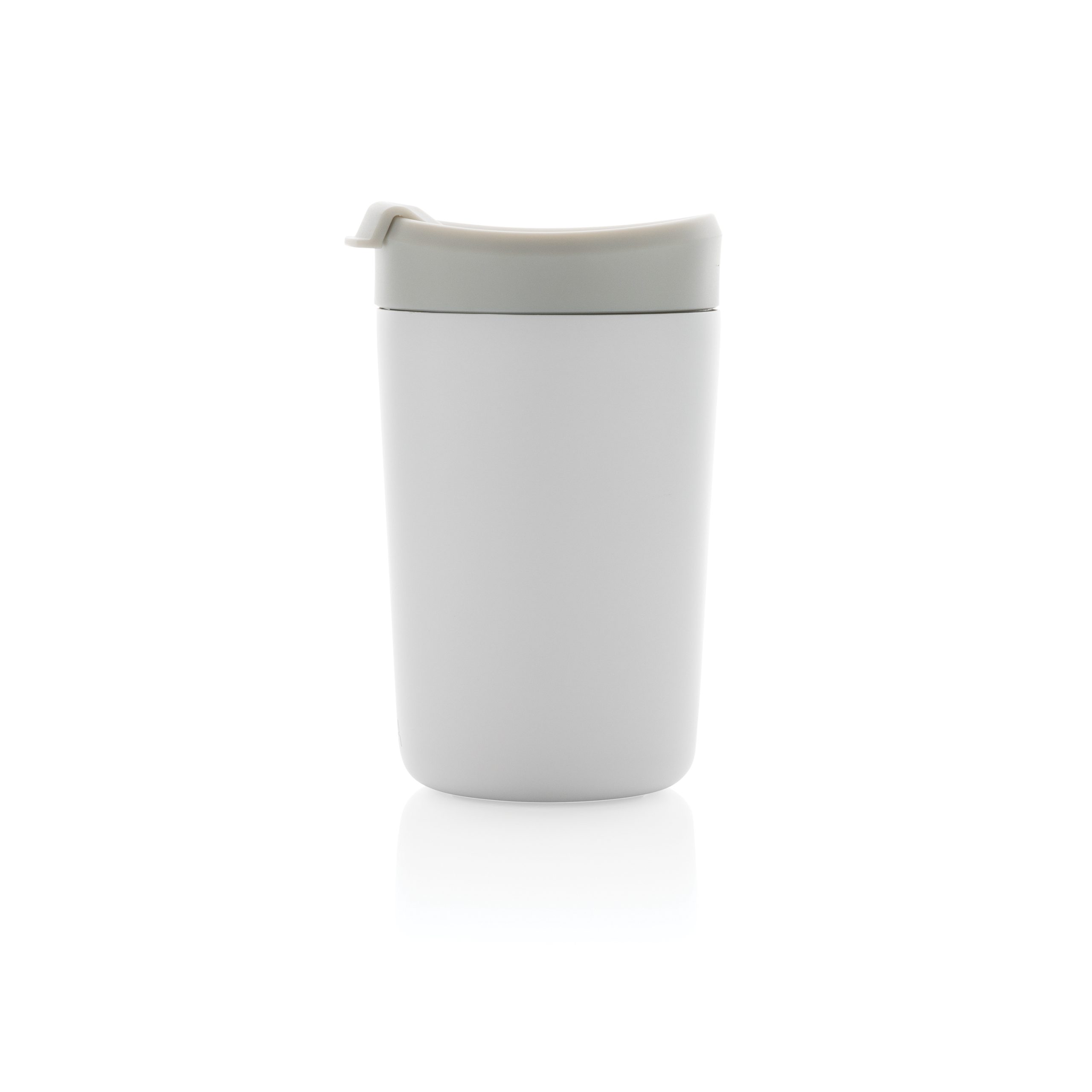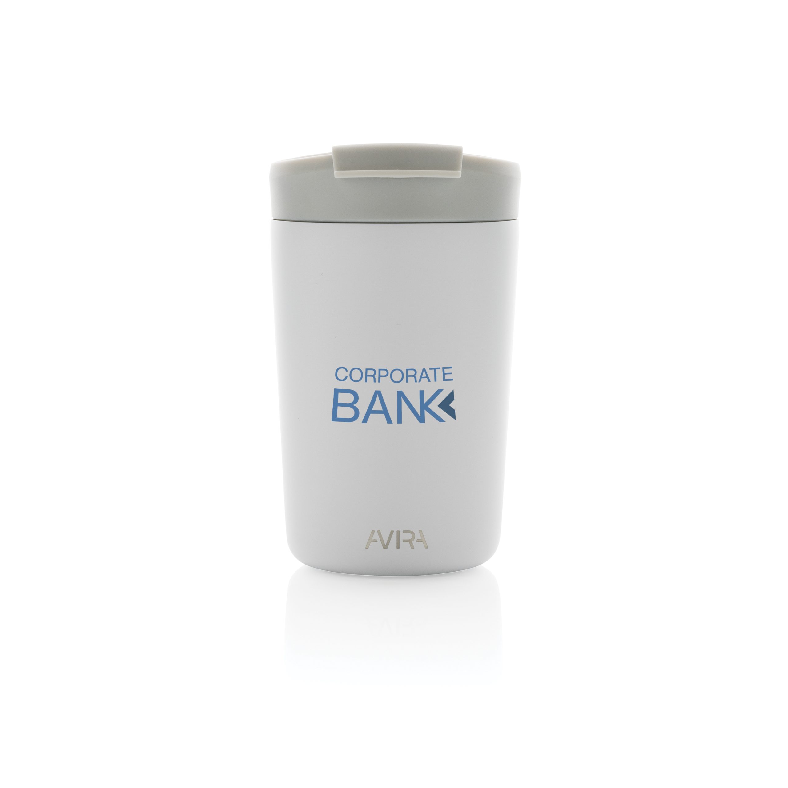 Kubek termiczny 300 ml, podwójne ścianki ze stali nierdzewnej z próżnią pomiędzy, wykonany ze stali nierdzewnej z recyklingu z certyfikatem RCS, całkowita zawartość materiałów z recyklingu obliczona na podstawie wagi całkowitej przedmiotu: 71%, w pudełku z papieru kraftowego z certyfikatem FSC®, pudełko można wykorzystać jako stojak na telefon lub doniczkę