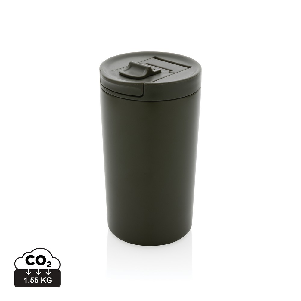 Kubek termiczny 300 ml, podwójne ścianki z próżnią pomiędzy, wykonany z materiałów pochodzących z recyklingu z certyfikatem RCS, całkowita zawartość materiałów z recyklingu obliczona na podstawie wagi całkowitej przedmiotu: 80%, w pudełku z papieru kraftowego z certyfikatem FSC®, utrzymuje temperaturę napojów gorących do 10 godzin oraz zimnych do 15 godzin
