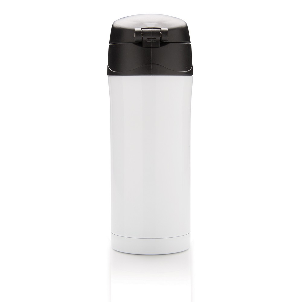 Kubek termiczny 300 ml, podwójne ścianki ze stali nierdzewnej z próżnią pomiędzy, obsługa jedną ręką, wykonany z materiałów pochodzących z recyklingu z certyfikatem RCS, całkowita zawartość materiałów z recyklingu obliczona na podstawie wagi całkowitej przedmiotu: 71%, w pudełku z papieru kraftowego z certyfikatem FSC®, utrzymuje temperaturę napojów gorących do 20 godzin oraz zimnych do 15 godzin