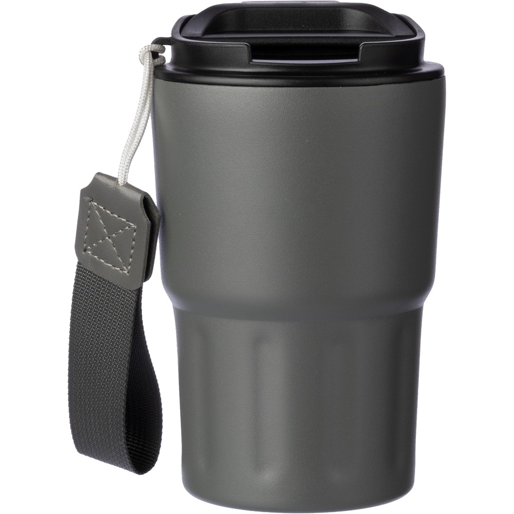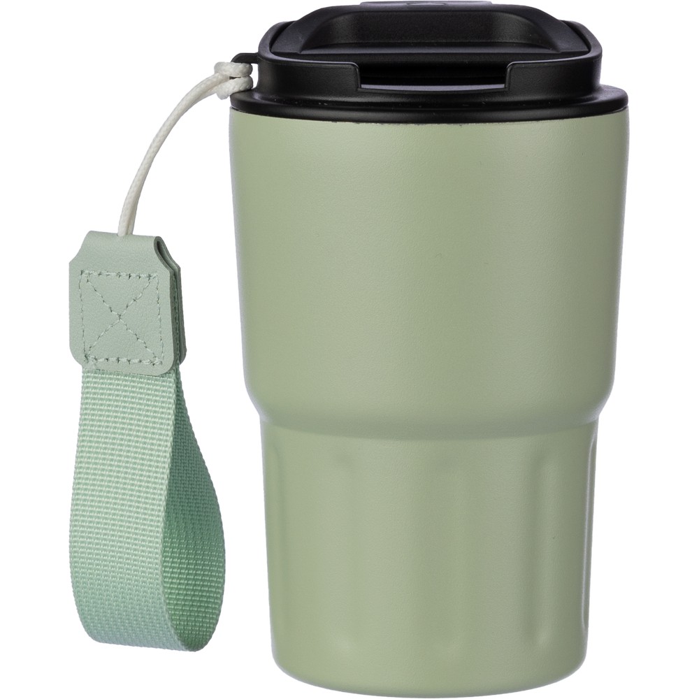 Kubek termiczny 320 ml, posiada podwójne ścianki ze stali nierdzewnej z próżnią między ściankami, co spowalnia oddawanie temperatury na zewnątrz, zachowując funkcje termosu, pasek ułatwiający noszenie lub przypięcie, plastikowe wieczko z otwarciem umożliwiającym łatwą obsługę jedną ręką, dobrze trzyma temperaturę ciepłych i zimnych napojów, utrzymuje temperaturę napojów gorących do 10 godzin +leakproof