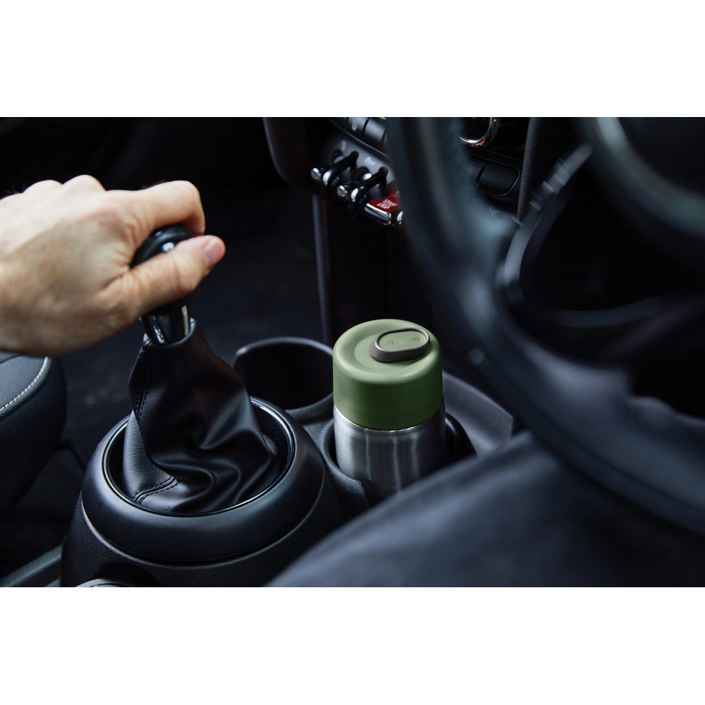 Kubek termiczny 340 ml, szczelne wieczko, wykonany ze stali nierdzewnej, podwójne ścianki z próżnią pomiędzy, utrzymuje temperaturę napojów ciepłych do 5 godzin i zimnych do 15 godzin, wyłącznie mycie ręczne