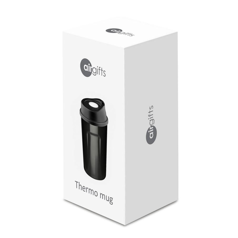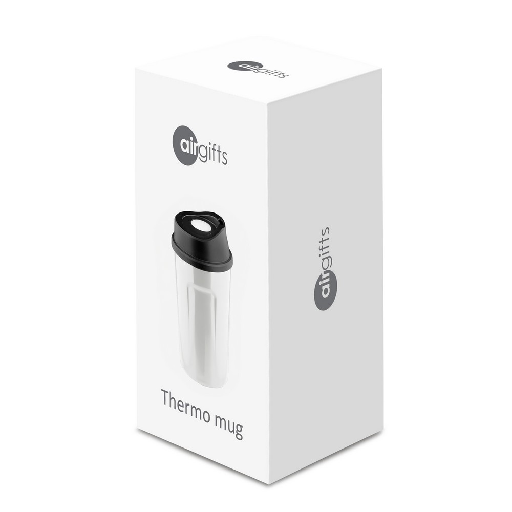 Kubek termiczny 400 ml Air Gifts, posiada podwójne ścianki ze stali nierdzewnej z miedzianą izolacją próżniową, co spowalnia oddawanie temperatury na zewnątrz, zachowując funkcje termosu, plastikowe wieczko z przyciskiem otwarcia/zamknięcia ustnika umożliwiającym obsługę jedną ręką, błyszczące wykończenie, utrzymuje temperaturę napojów gorących do 15 godzin +leakproof