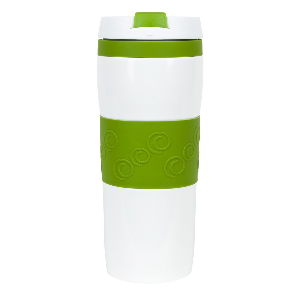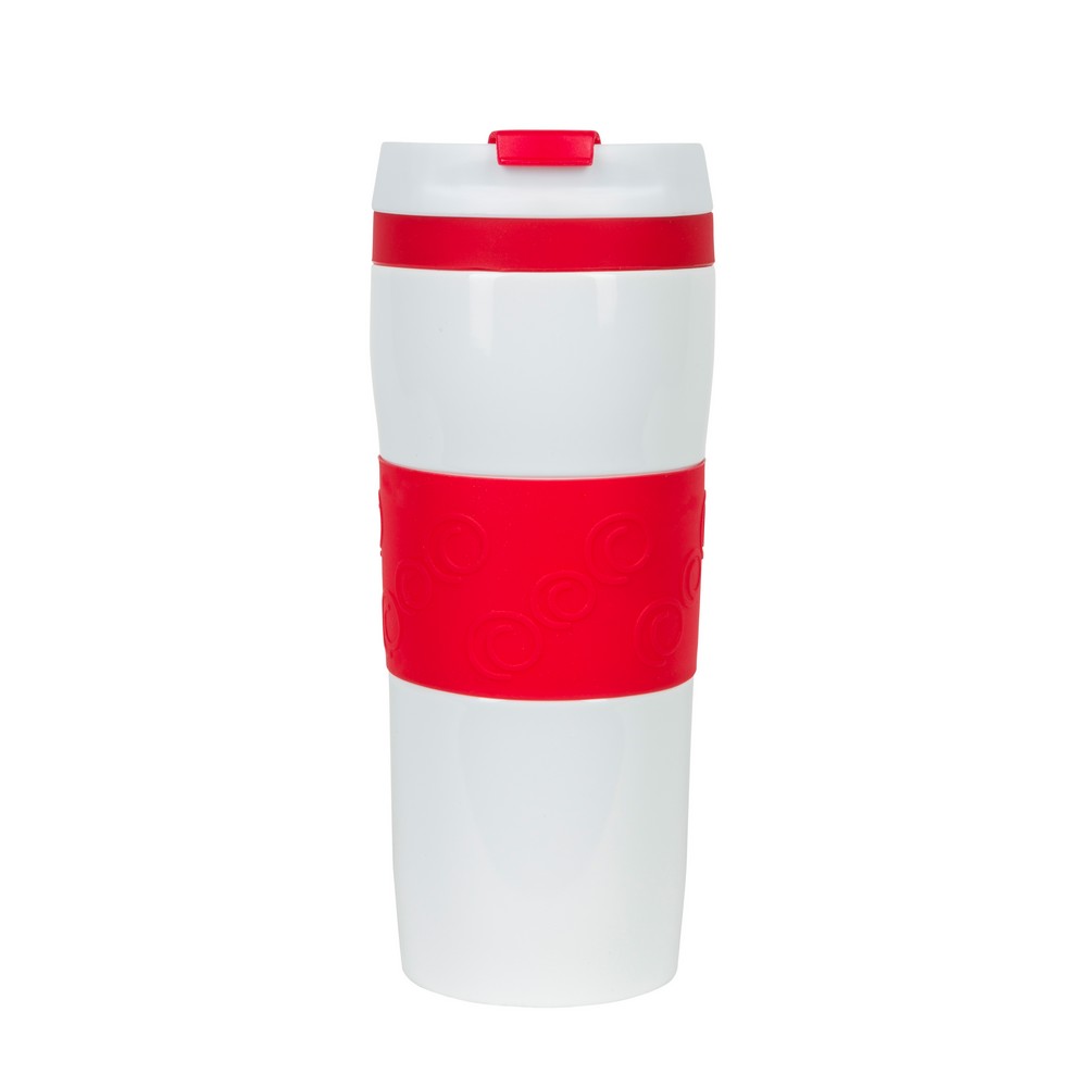 Kubek termiczny 400 ml Air Gifts, posiada podwójne ścianki ze stali nierdzewnej z miedzianą izolacją próżniową, co spowalnia oddawanie temperatury na zewnątrz, zachowując funkcje termosu, plastikowe wieczko z zamknięciem umożliwiającym obsługę jedną ręką, kolorowy silikonowy uchwyt zwiększający wygodę użytkowania, błyszczące wykończenie, utrzymuje temperaturę napojów gorących do 10 godzin +leakproof