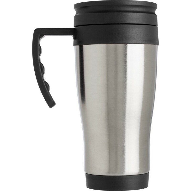 Kubek termiczny 420 ml, podwójne ścianki, plastikowa rączka, wieczko i wnętrze, utrzymuje temperaturę napojów gorących do 10 godzin