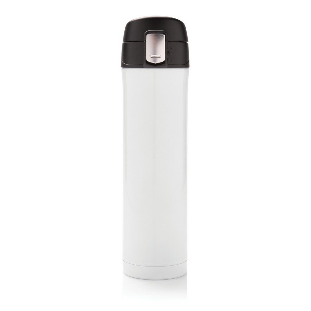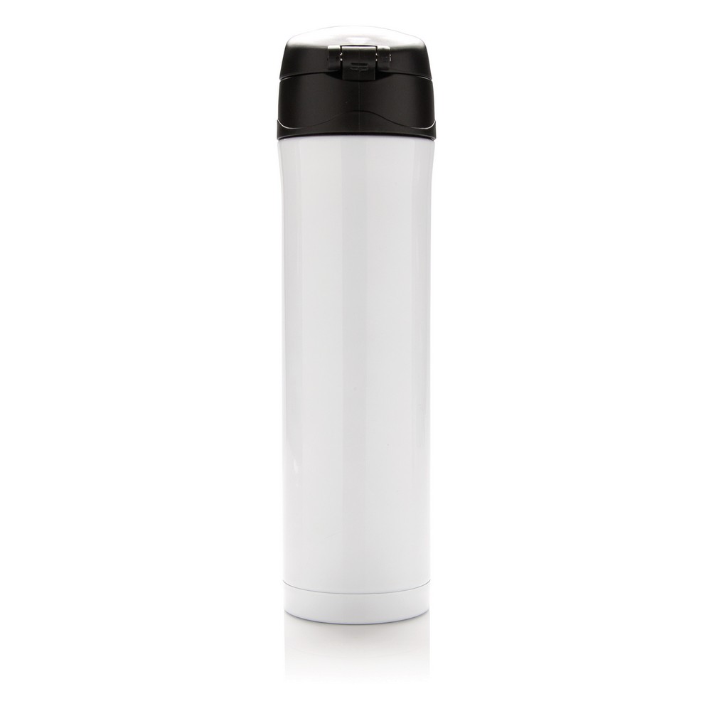 Kubek termiczny 450 ml, podwójne ścianki z próżnią pomiędzy, wykonany z materiałów pochodzących z recyklingu z certyfikatem RCS, całkowita zawartość materiałów z recyklingu obliczona na podstawie wagi całkowitej przedmiotu: 76%, pasuje do większości uchwytów samochodowych, w pudełku z papieru kraftowego, utrzymuje temperaturę napojów gorących do 20 godzin oraz zimnych do 15 godzin