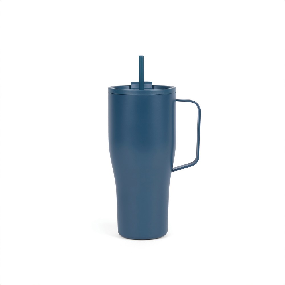 Kubek termiczny 880 ml, uchwyt, podwójne ścianki z próżnią pomiędzy, utrzymuje temperaturę napojów ciepłych do 3 godzin oraz zimnych do 16 godzin, wykonana ze stali nierdzewnej z recyklingu z certyfikatem RCS, całkowita zawartość materiałów z recyklingu obliczona w oparciu o wagę całkowitą przedmiotu: 65%, wyłącznie mycie ręczne