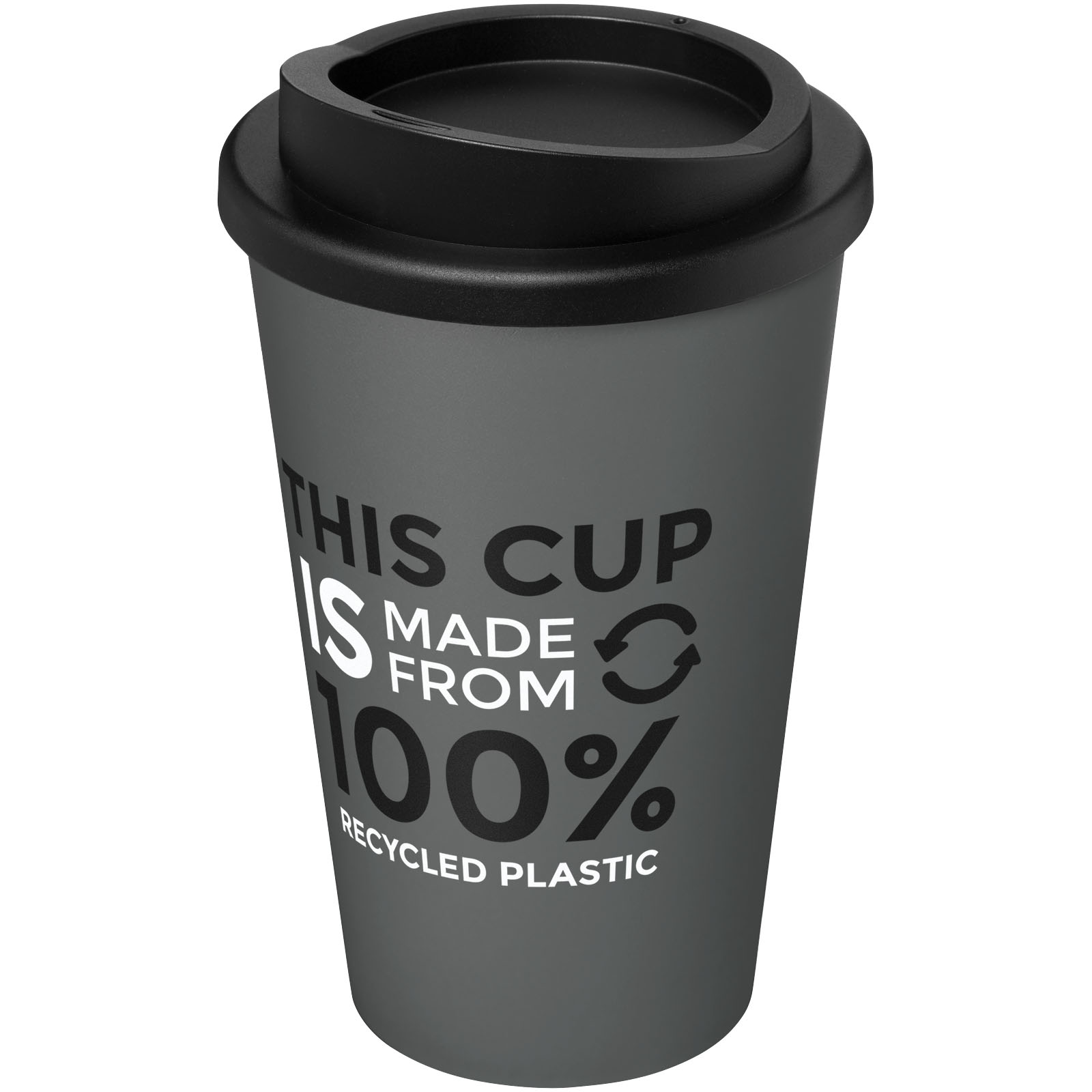 Dwuwarstwowy, izolowany kubek z zakręcaną pokrywą. Pojemność 350 ml. Wykonany w 100% z materiałów pochodzących z recyklingu. Odcień czerni może się różnić ze względu na specyfikę użytych materiałów pochodzących z recyklingu. Wyprodukowano w Wielkiej Brytanii. Produkt wolny od BPA. Można myć w zmywarce.