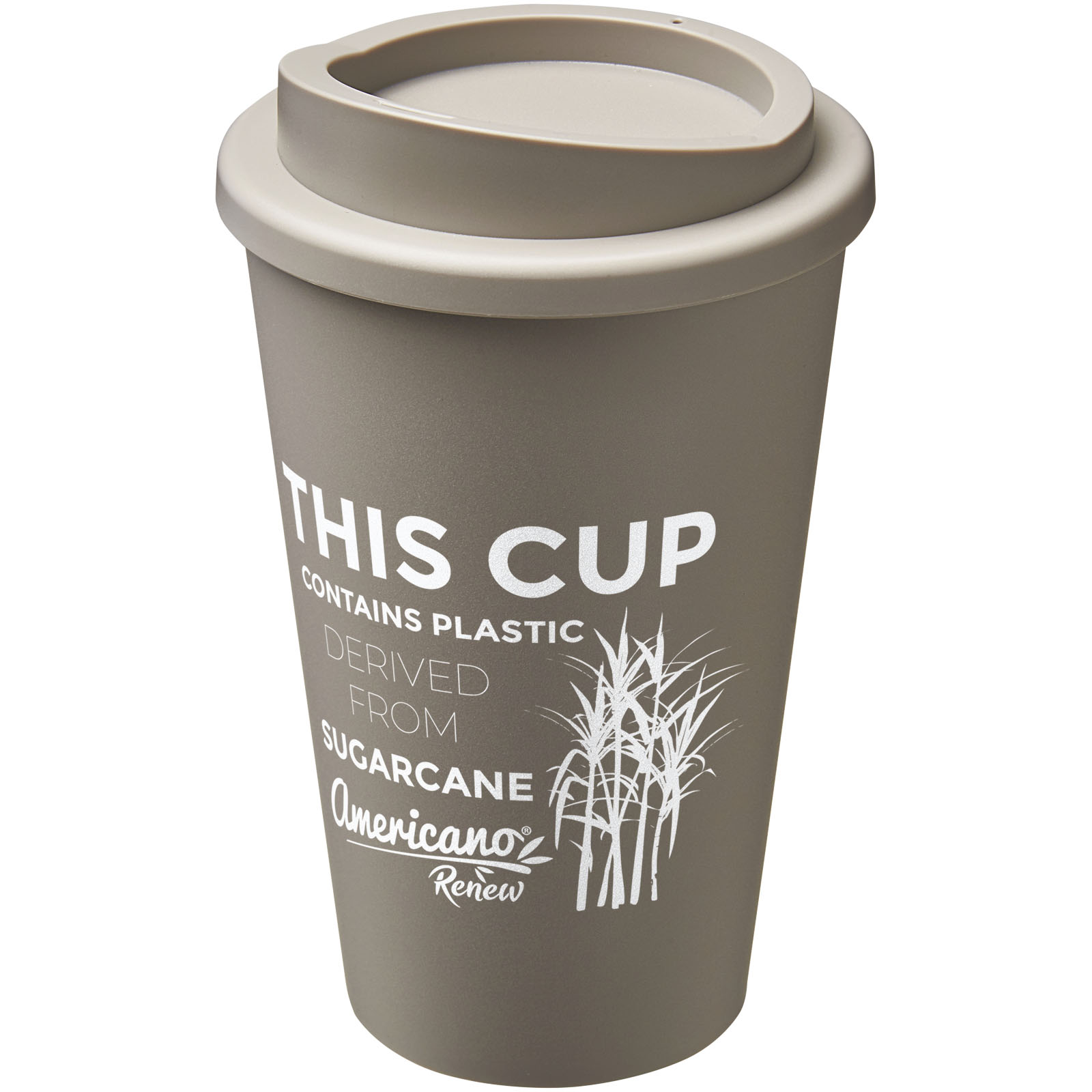 Dwuwarstwowy, izolowany kubek z zakręcaną pokrywą o pojemności 350 ml. Zawiera 25% plastiku pochodzącego z trzciny cukrowej. To odnawialne źródło pochłania dwutlenek węgla podczas wzrostu i jest produktem ubocznym przemysłu cukrowniczego. Zastosowanie trzciny cukrowej oznacza, że do produkcji każdego kubka zużywa się mniej ropy naftowej. Kubek w 100% nadaje się do recyklingu i jest zapakowany w domową torbę nadającą się do kompostowania. Wyprodukowano w Wielkiej Brytanii. Produkt wolny od BPA.