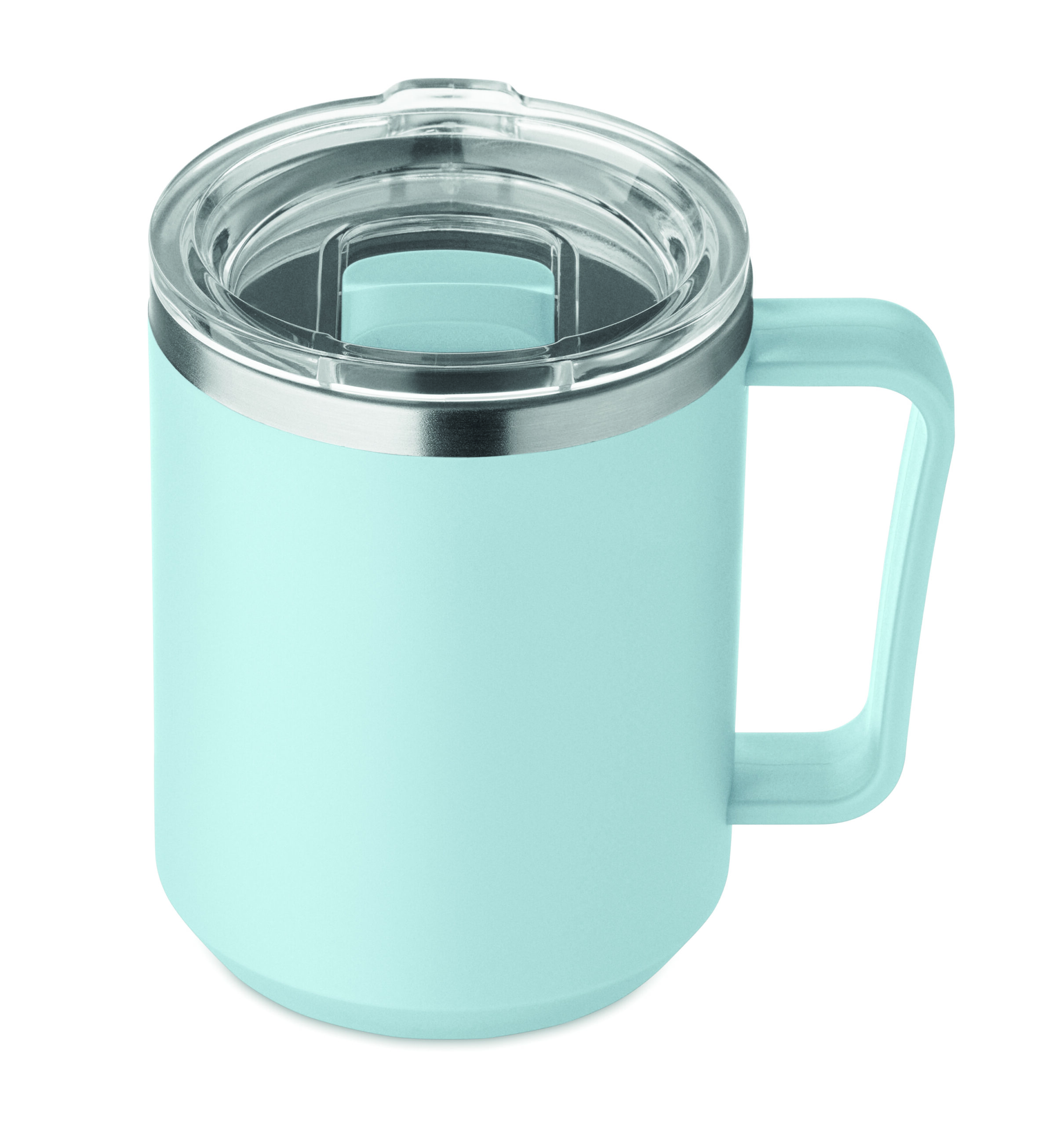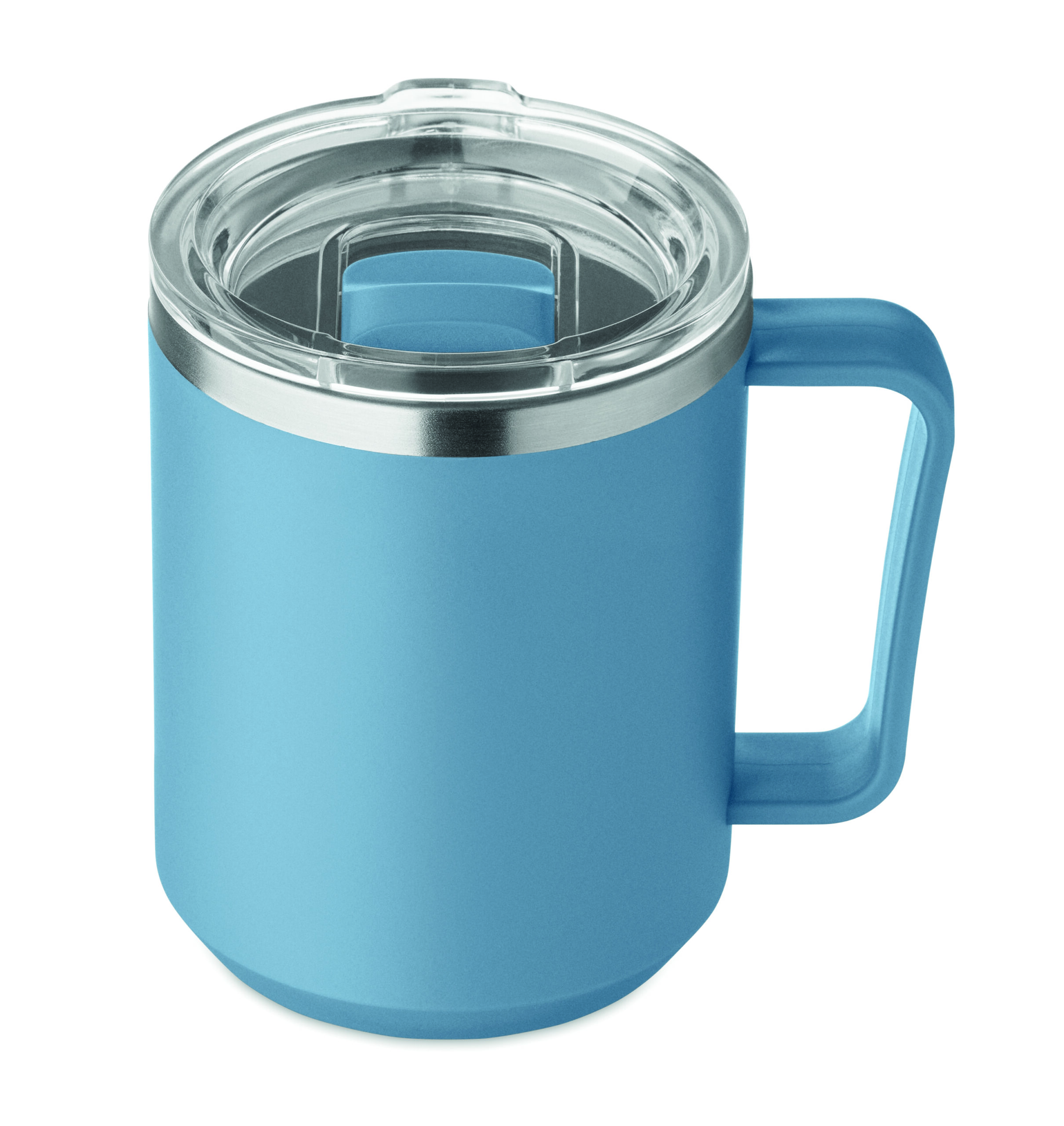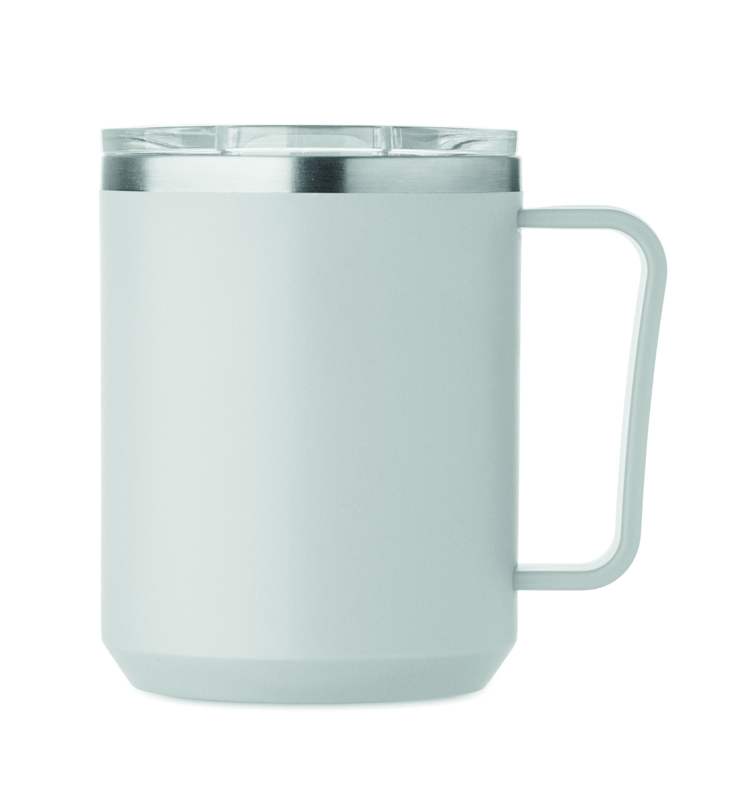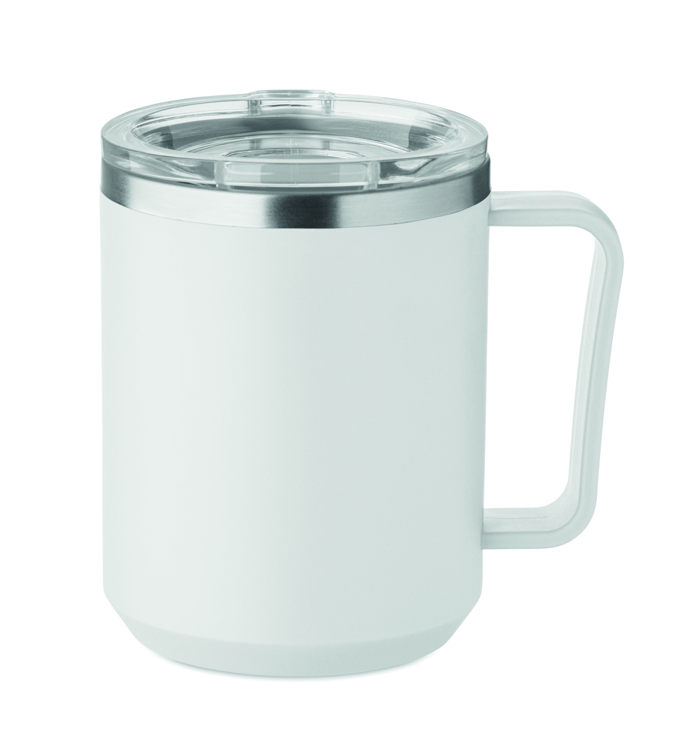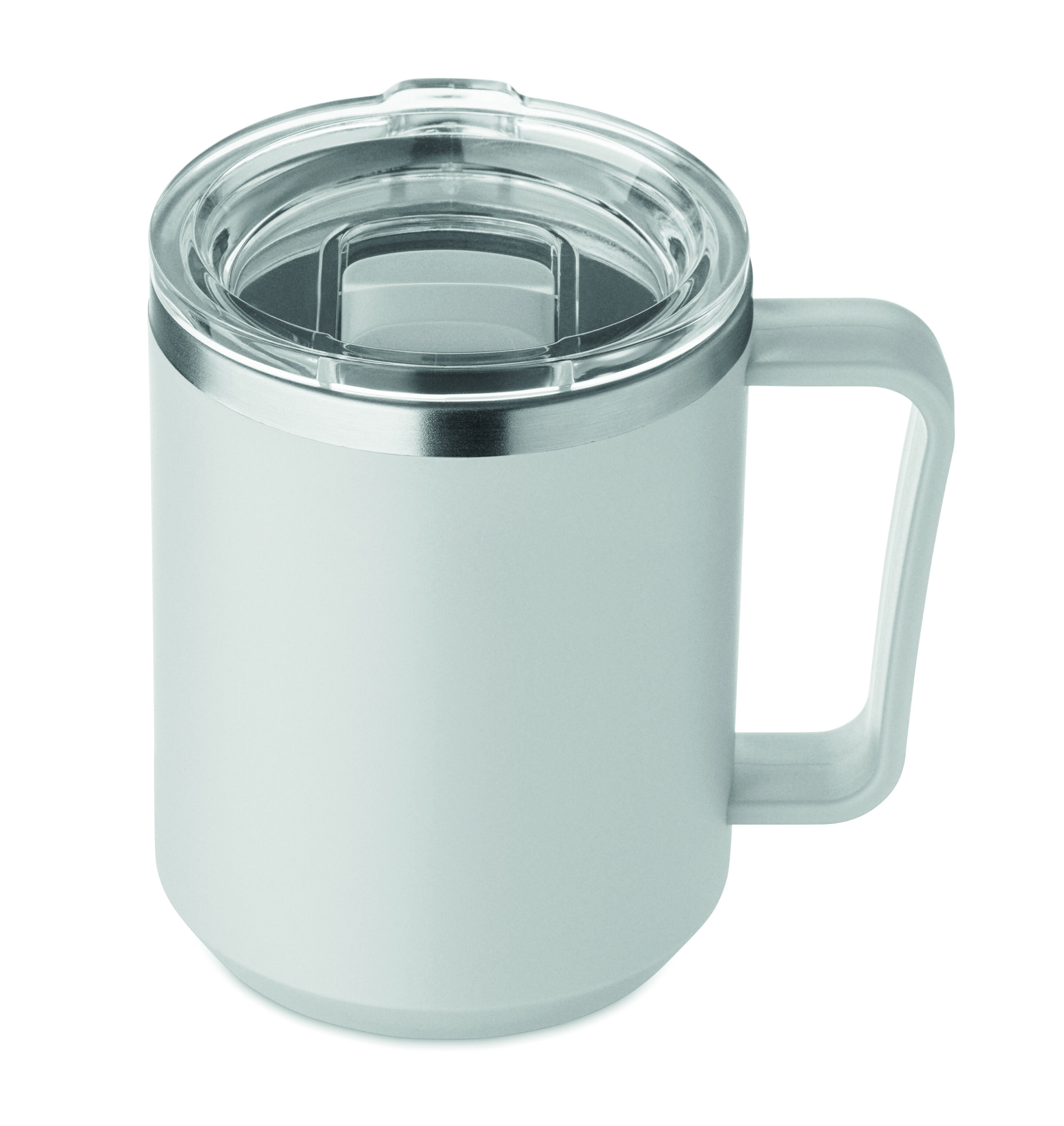 Kubek o podwójnych ściankach. Wnętrze 90% stal nierdzewna z recyklingu i 10% stal nierdzewna oraz zewnętrzna ścianka z PP z recyklingu. Ma przezroczystą pokrywkę przesuwną AS. Pojemność 400 ml.