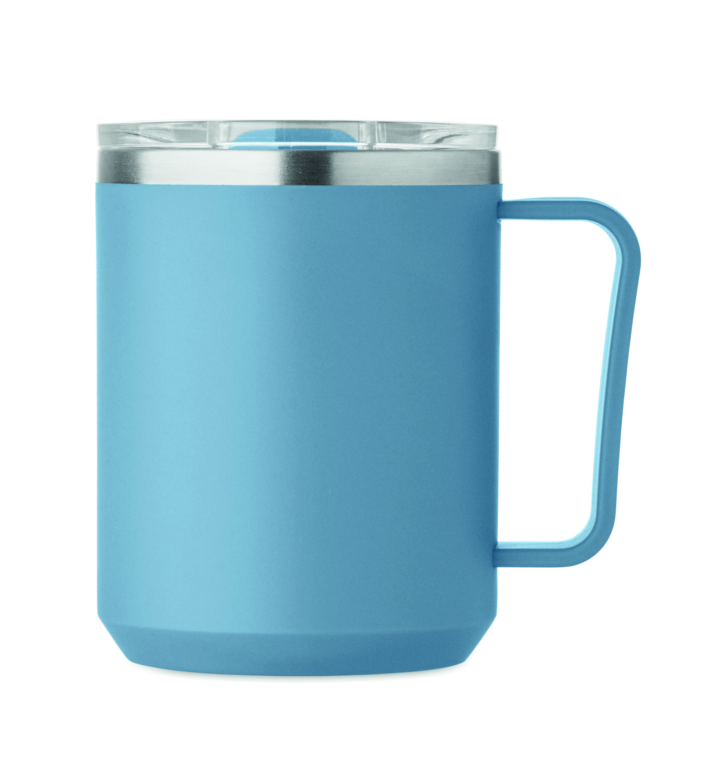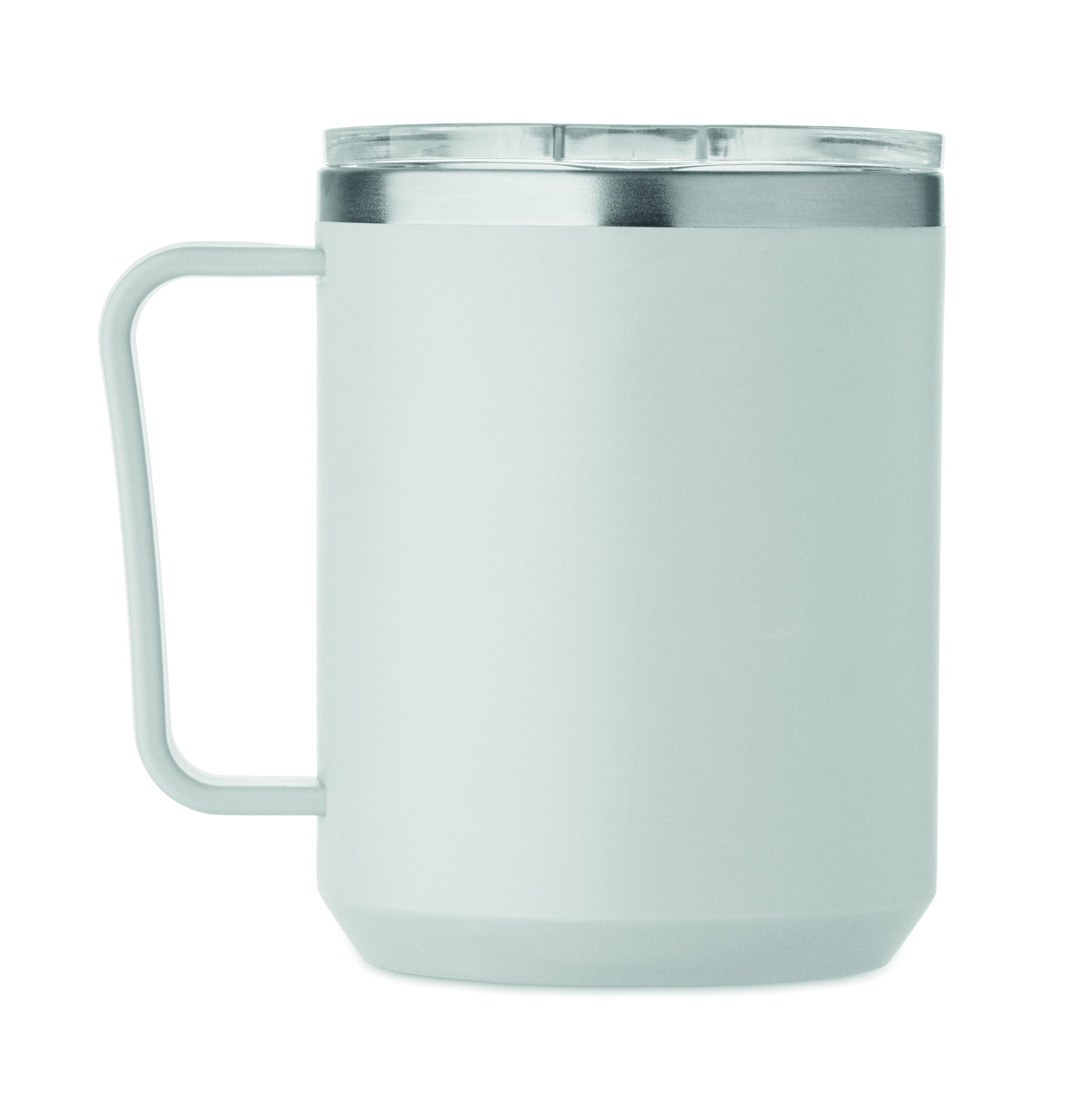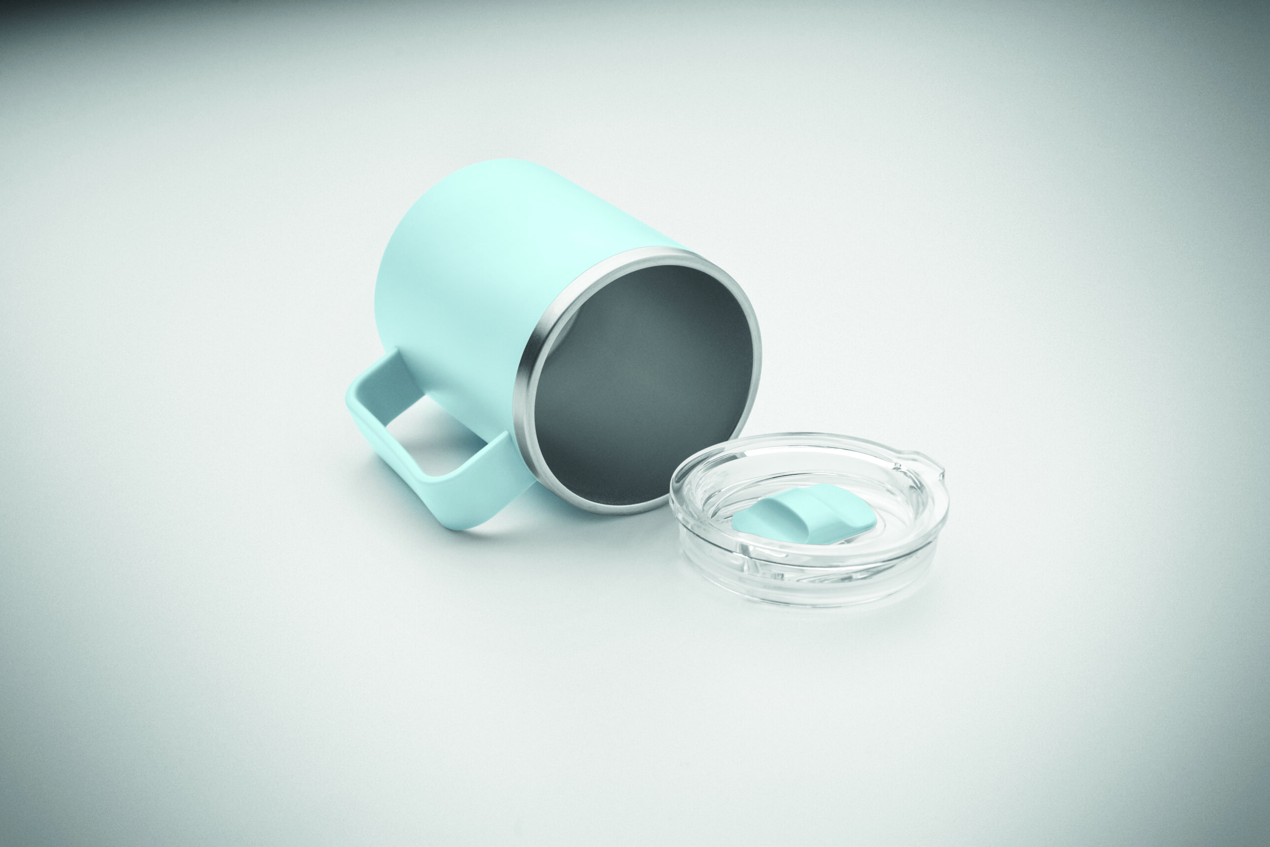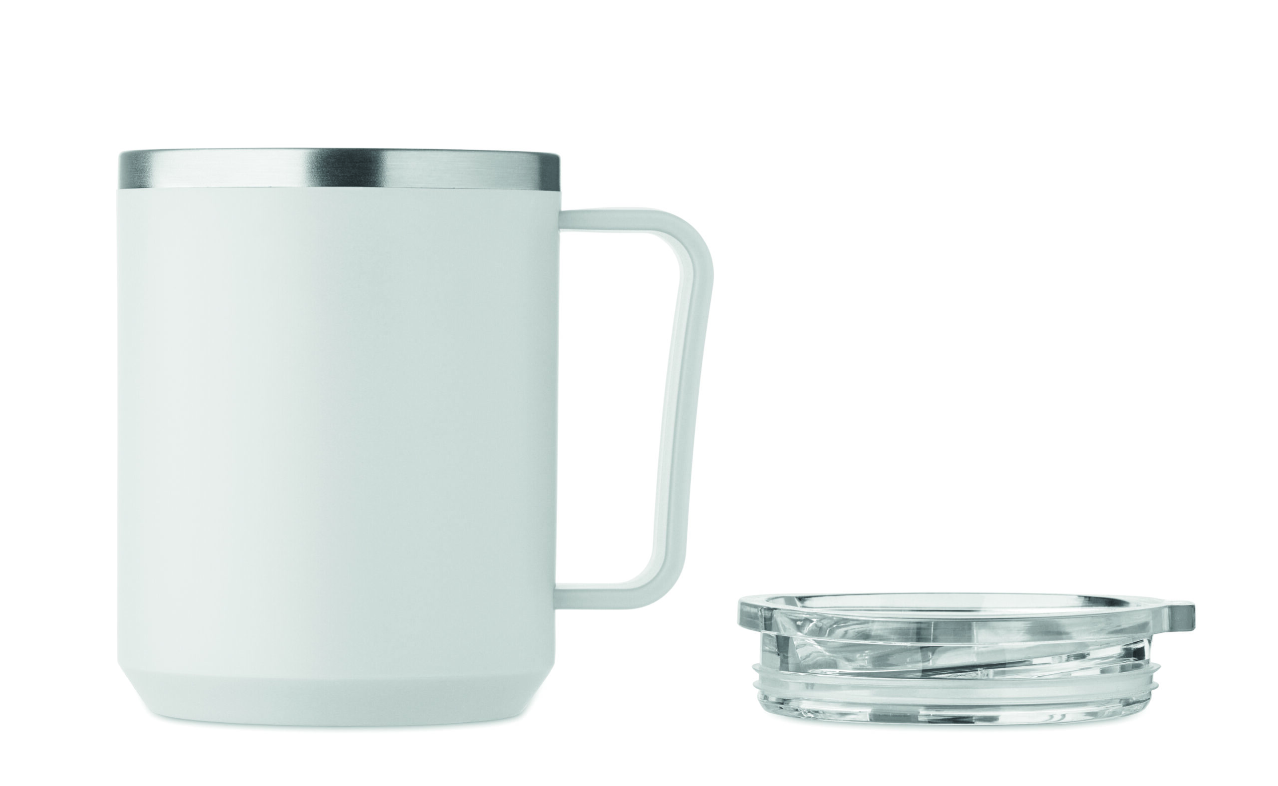 Kubek o podwójnych ściankach. Wnętrze 90% stal nierdzewna z recyklingu i 10% stal nierdzewna oraz zewnętrzna ścianka z PP z recyklingu. Ma przezroczystą pokrywkę przesuwną AS. Pojemność 400 ml.