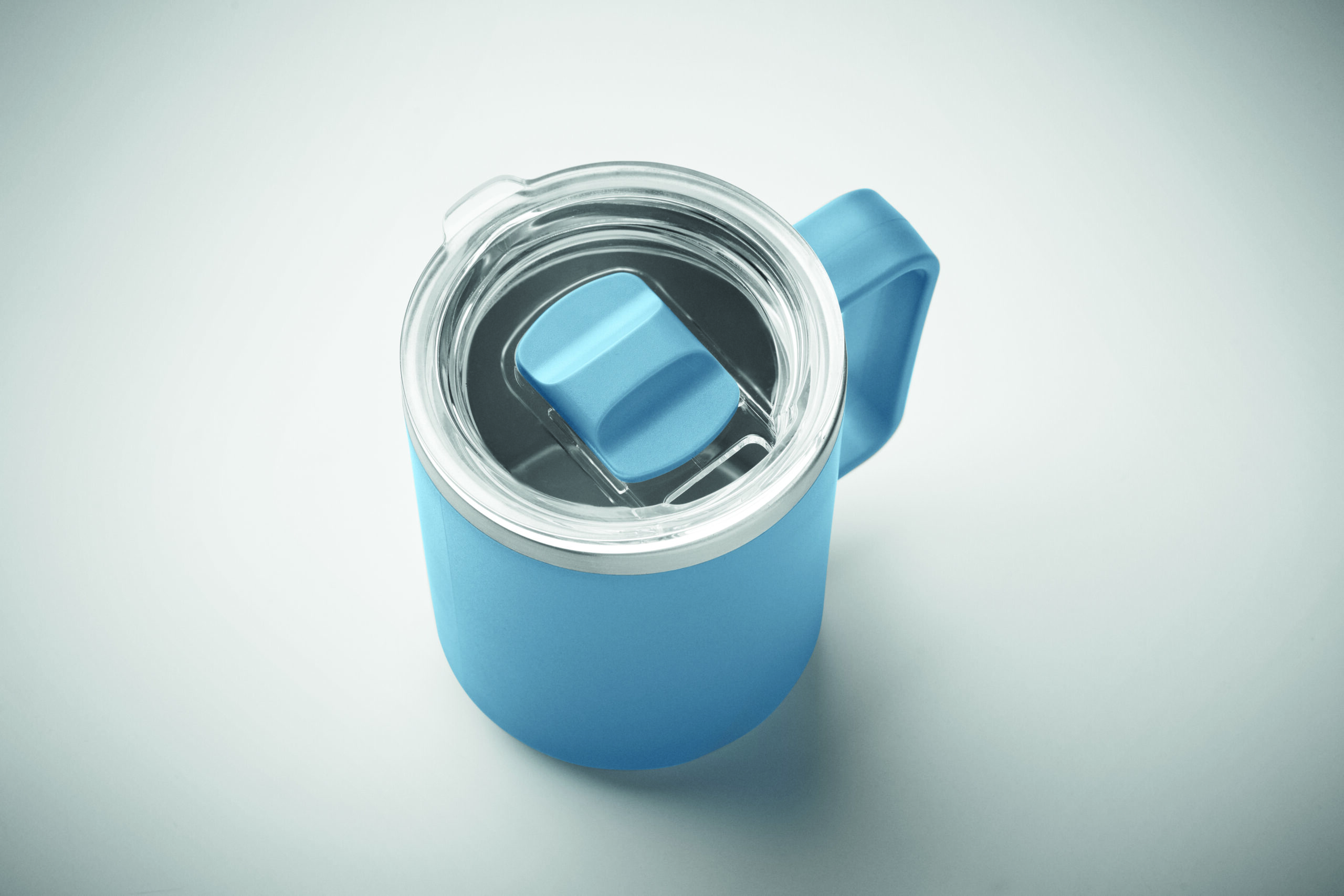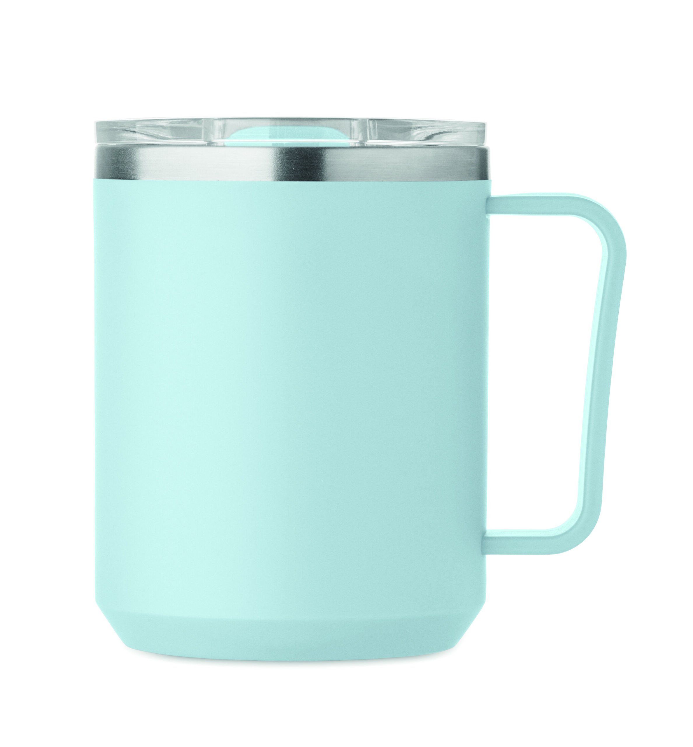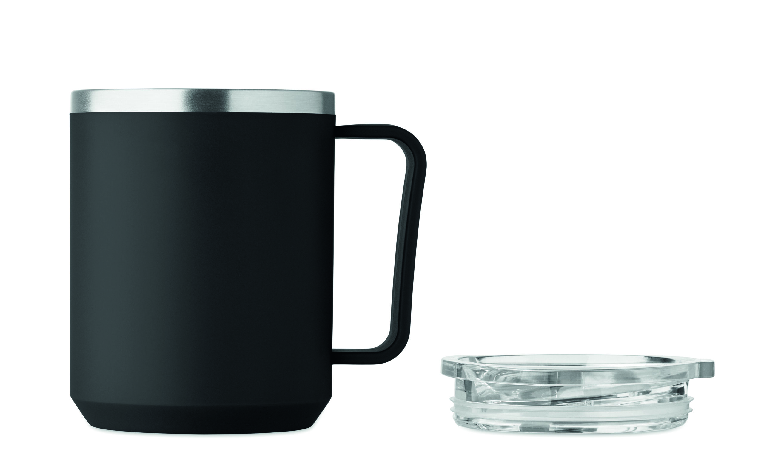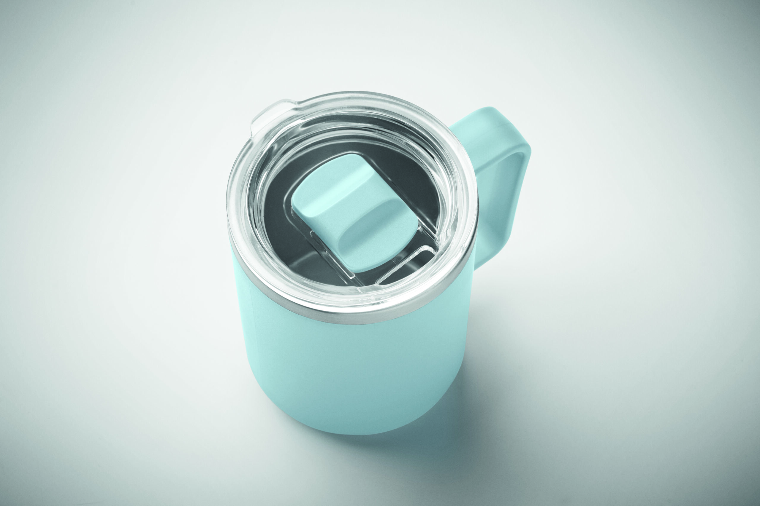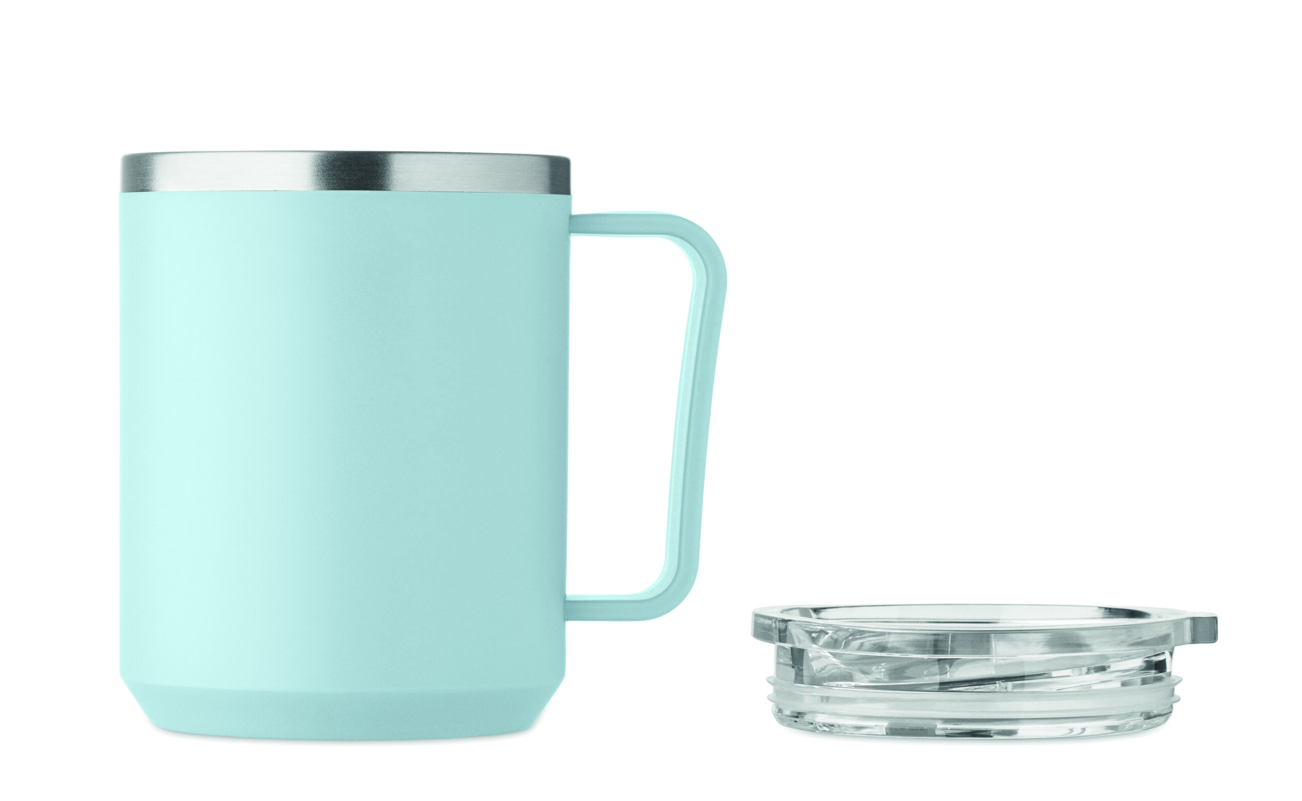 Kubek o podwójnych ściankach. Wnętrze 90% stal nierdzewna z recyklingu i 10% stal nierdzewna oraz zewnętrzna ścianka z PP z recyklingu. Ma przezroczystą pokrywkę przesuwną AS. Pojemność 400 ml.