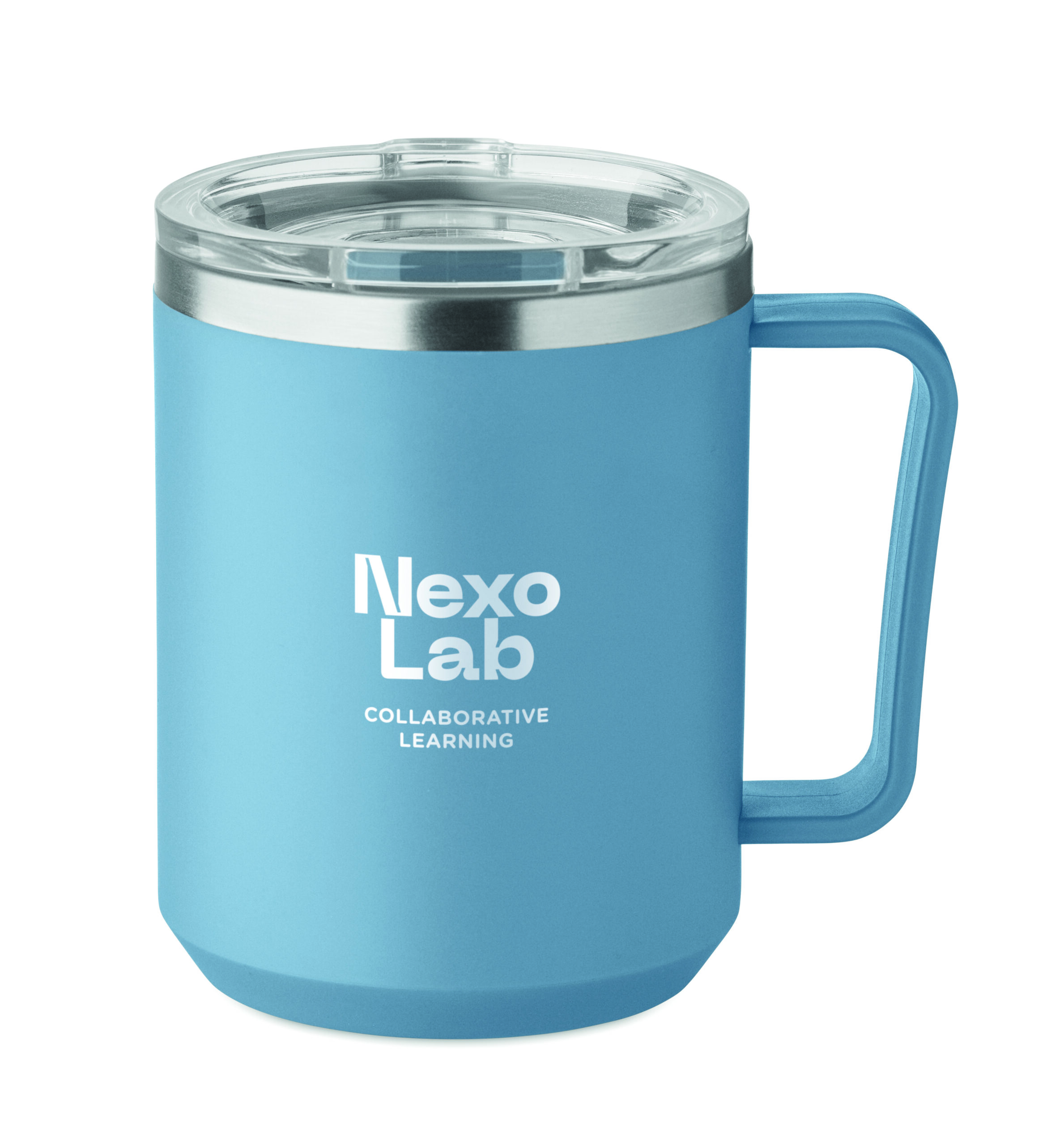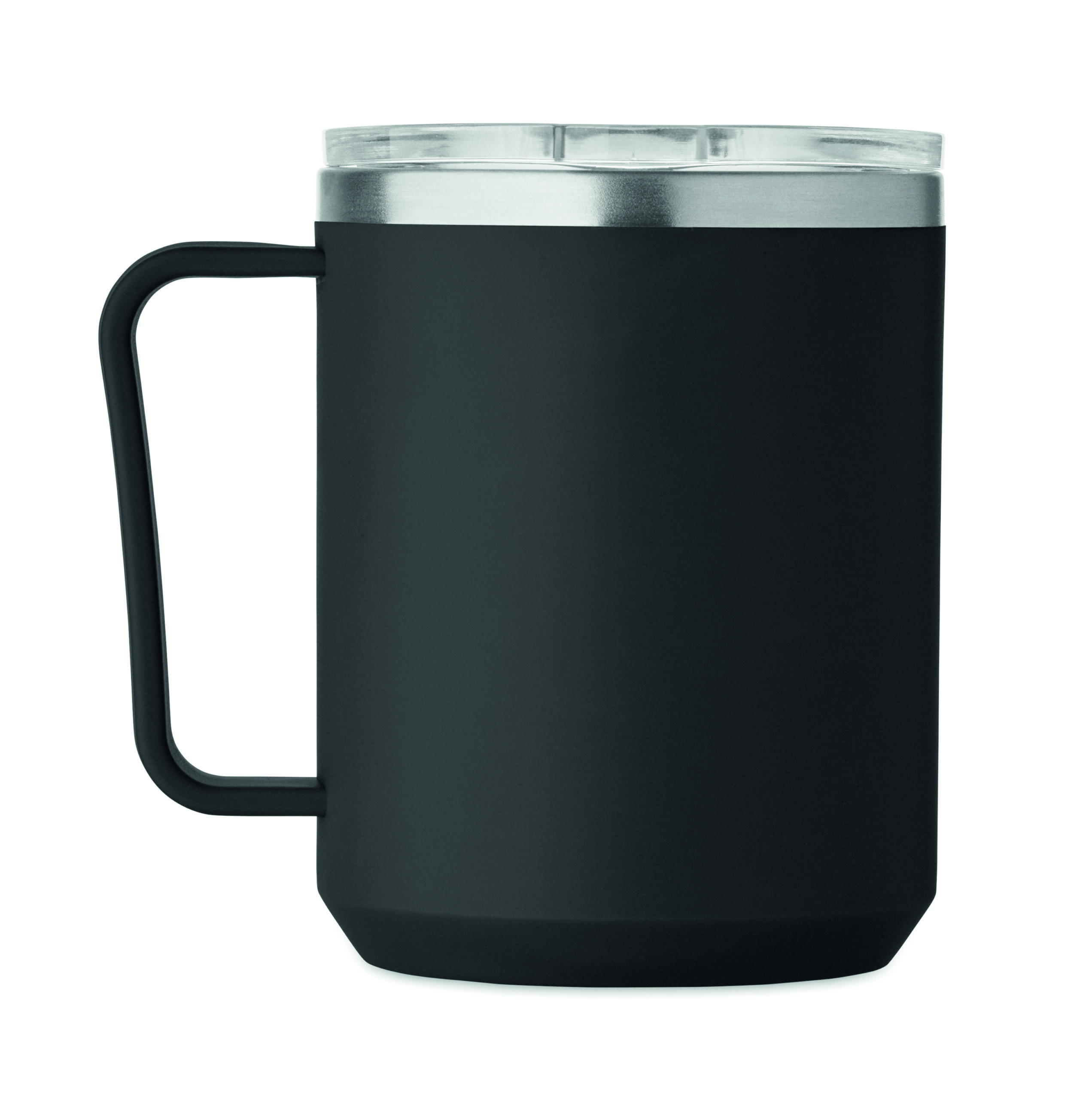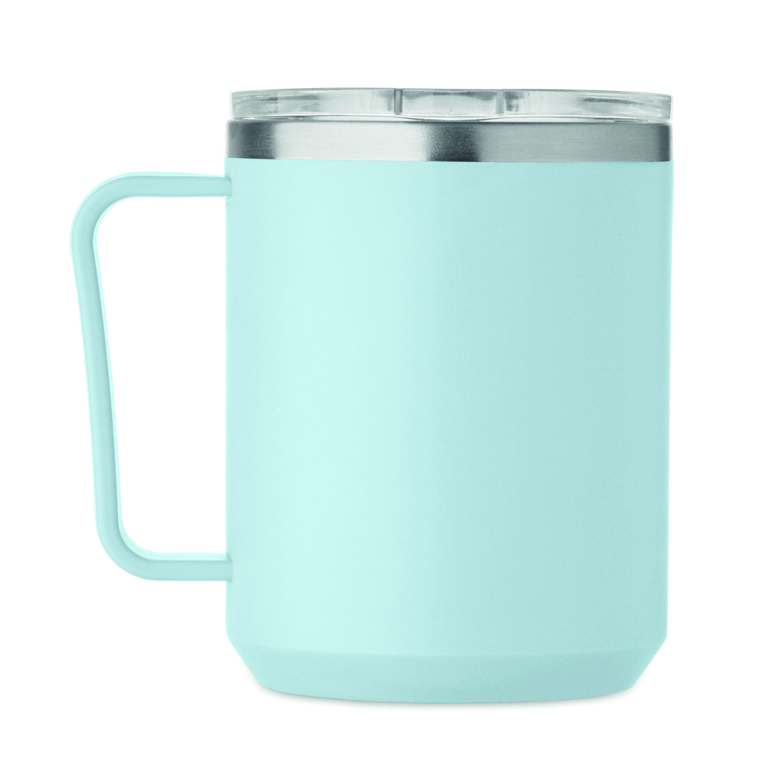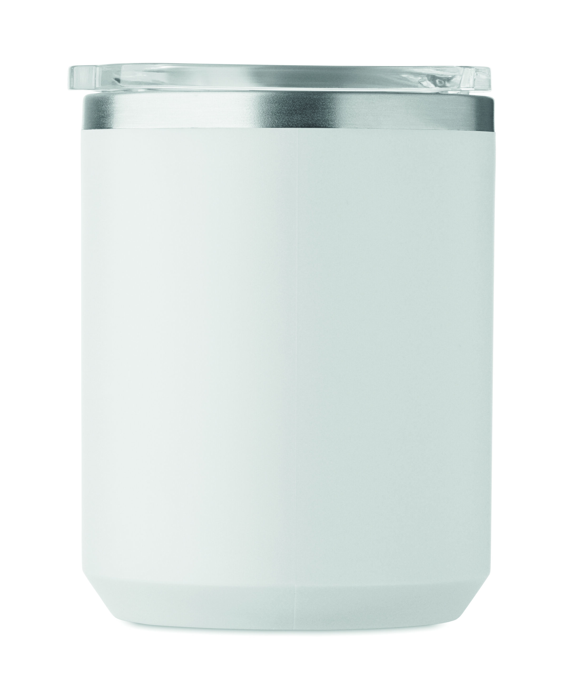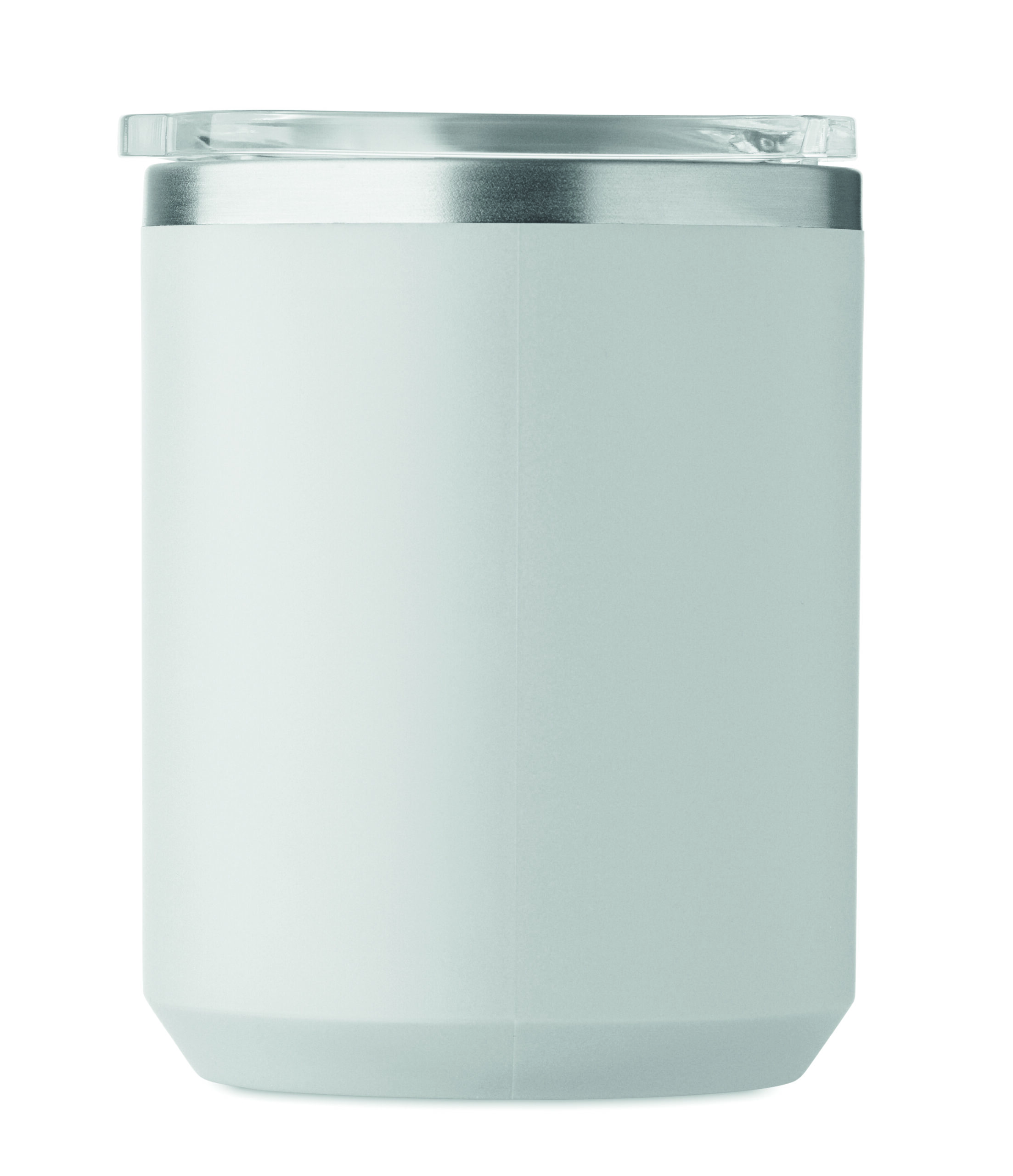 Kubek o podwójnych ściankach. Wnętrze 90% stal nierdzewna z recyklingu i 10% stal nierdzewna oraz zewnętrzna ścianka z PP z recyklingu. Ma przezroczystą pokrywkę przesuwną AS. Pojemność 400 ml.