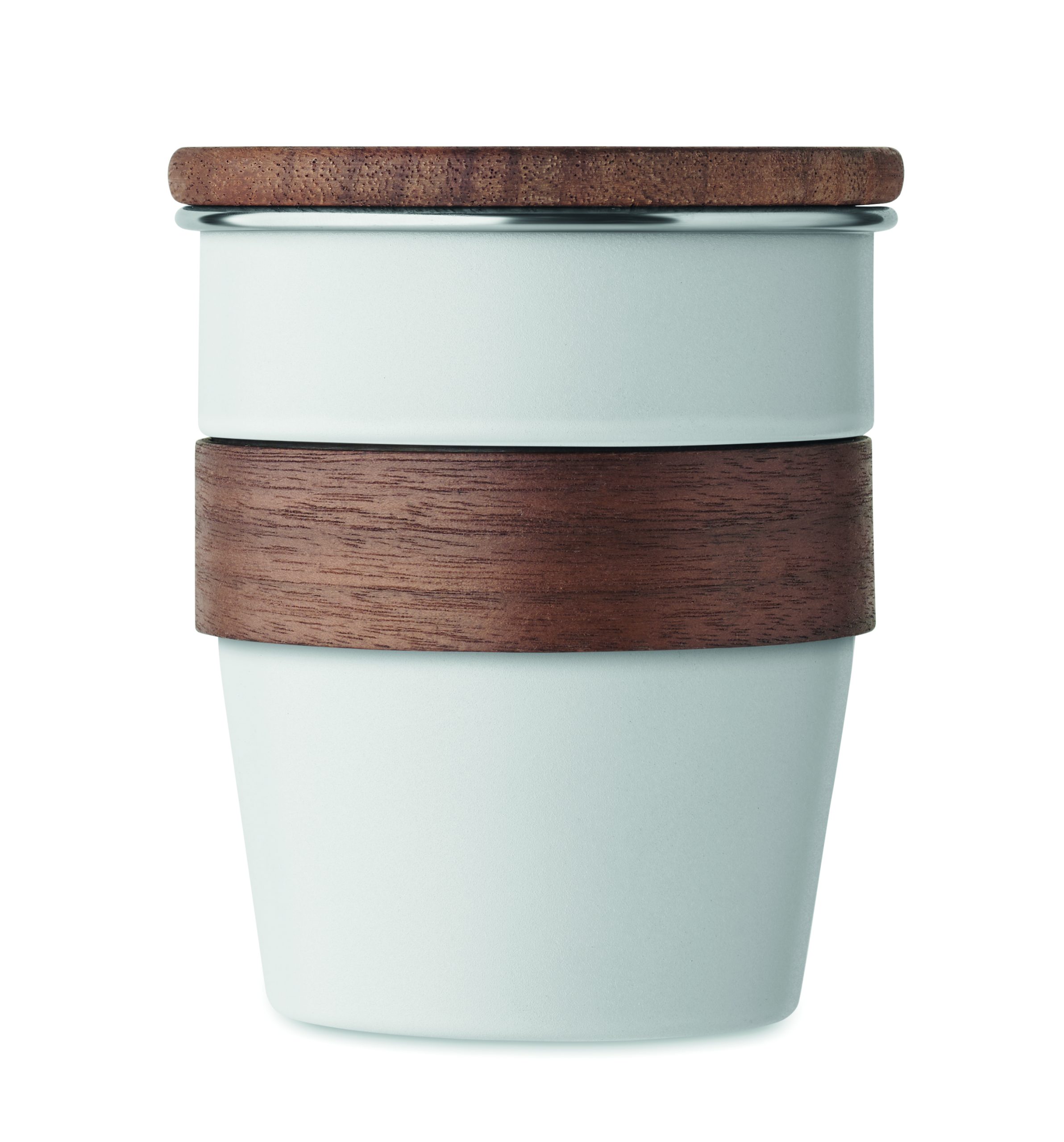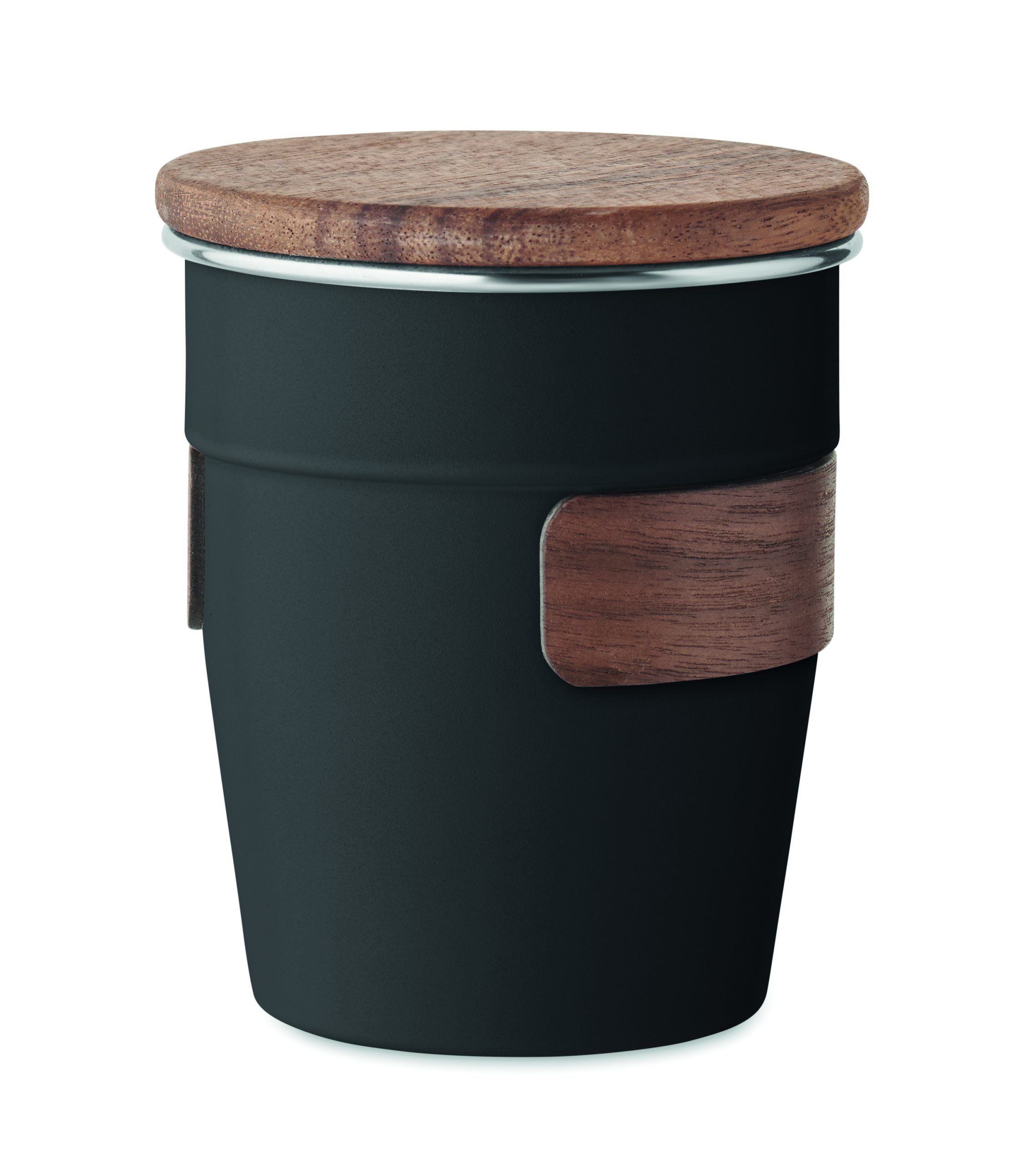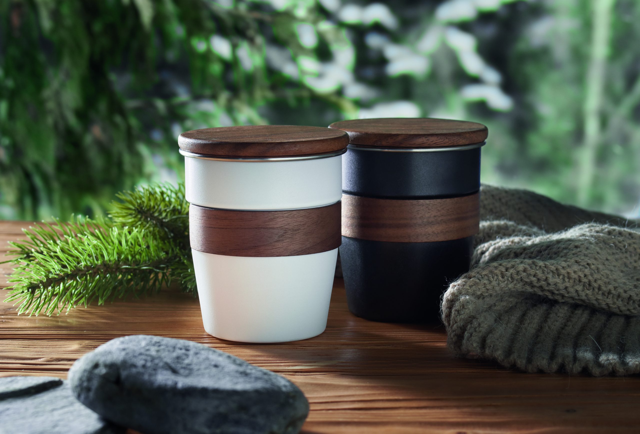 Jednościenny kubek z recyklingowanej stali nierdzewnej (90% stali nierdzewnej z recyklingu i 10% stali nierdzewnej) z uchwytem i pokrywką. Pojemność: 350 ml. Zdejmowany uchwyt do czyszczenia.