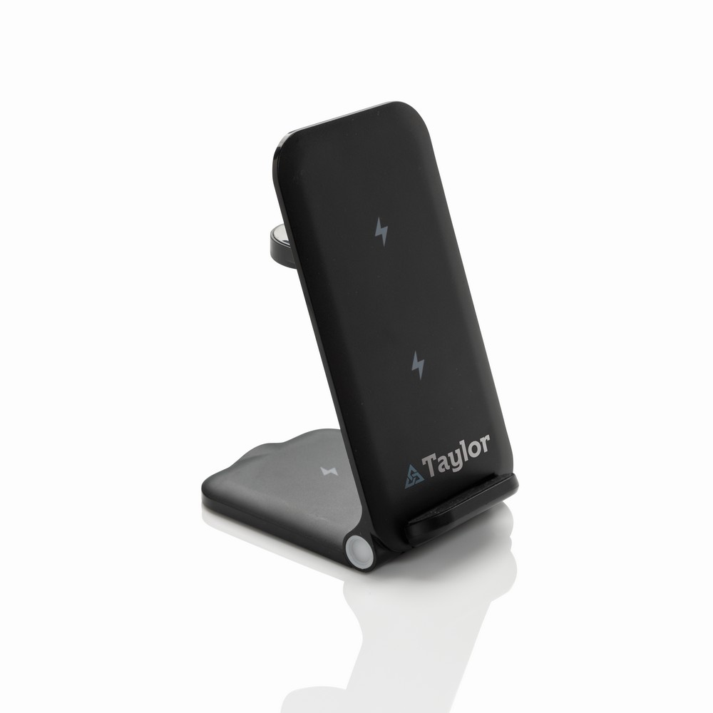 Ładowarka bezprzewodowa 3 w 1, 15W, podstawka pod ładowarkę bezprzewodową 3 w 1 wykonana z ABS pochodzącego z recyklingu RCS, certyfikat RCS zapewnia w pełni certyfikowany łańcuch dostaw materiałów pochodzących z recyklingu, wyposażona w ładowarkę bezprzewodową o mocy 15W i dodatkową ładowarkę bezprzewodową o mocy 5W odpowiednią do słuchawek dousznych lub innych małych urządzeń ładowanych bezprzewodowo, ładowarka bezprzewodowa o mocy 2,5W do smartwatchów (tylko zegarki Apple), składana, w zestawie 120 cm kabel TPE z recyklingu z certyfikatem RCS, zapakowany w opakowanie FSC® mix kraft, produkt i akcesoria w 100% wolne od PVC, wejście: 9V/3A dla optymalnego użytkowania, wyjście telefon 9V/1.1A, 9V/1.67 A/(15W), słuchawki douszne 5V/1A (5W), zegarek 5V/0,5A