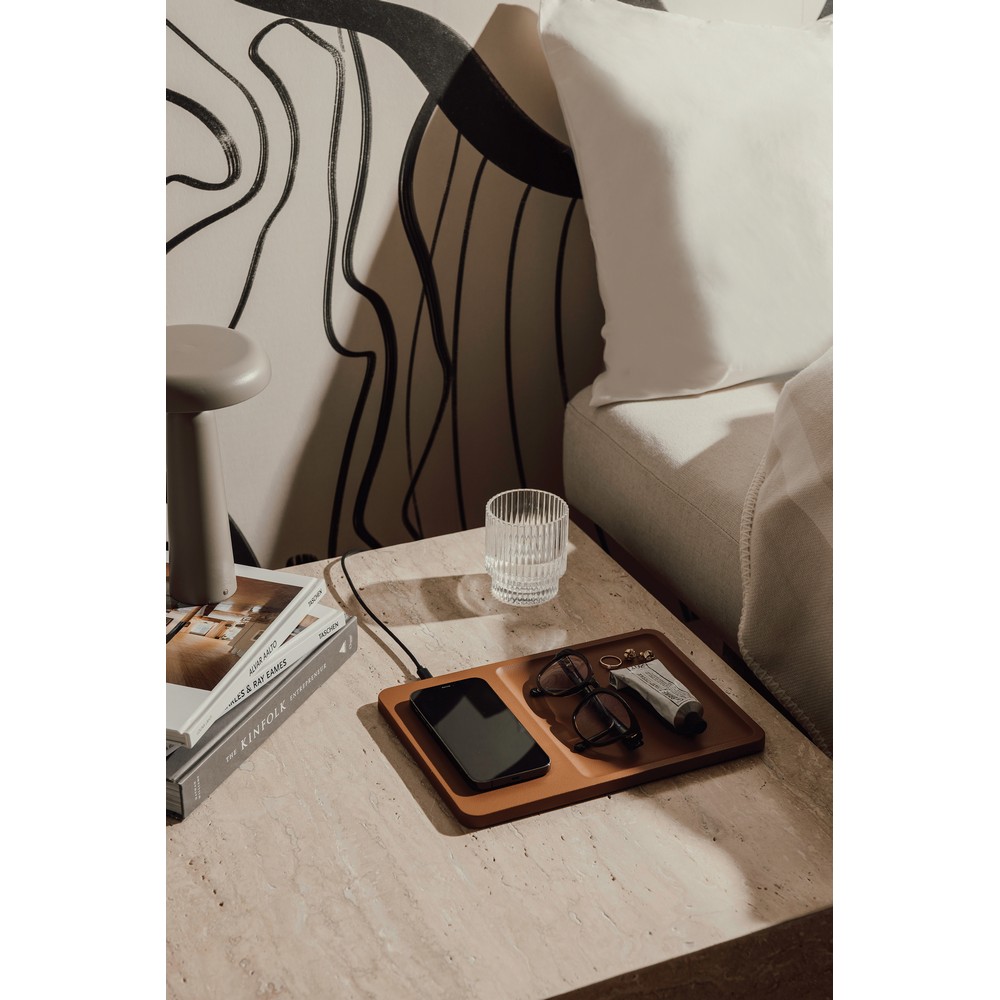 Ładowarka bezprzewodowa 15W, organizer na drobne akcesoria, wejście USB-C 9V/2A, działa z telefonami posiadającymi możliwość ładowania indukcyjnego, wykonana z materiałów z recyklingu, całkowita zawartość materiałów z recyklingu obliczona na podstawie wagi całkowitej przedmiotu: 51%