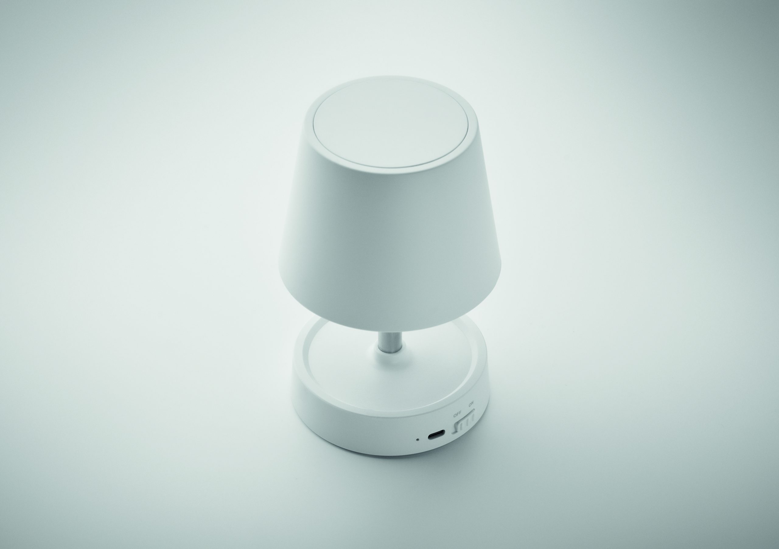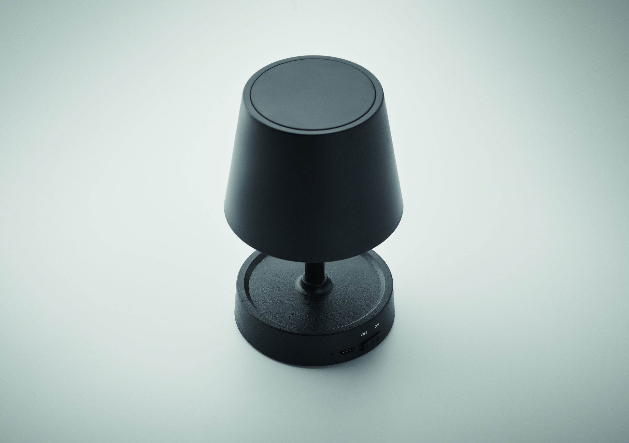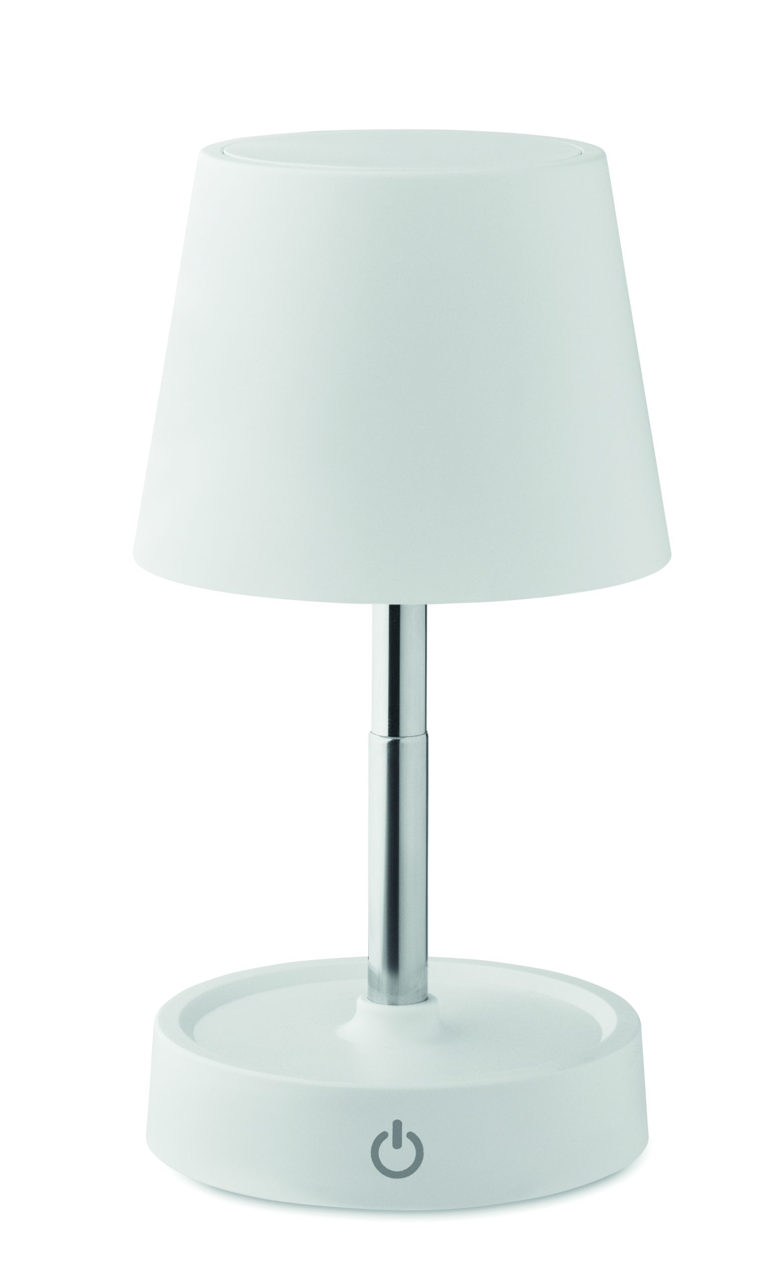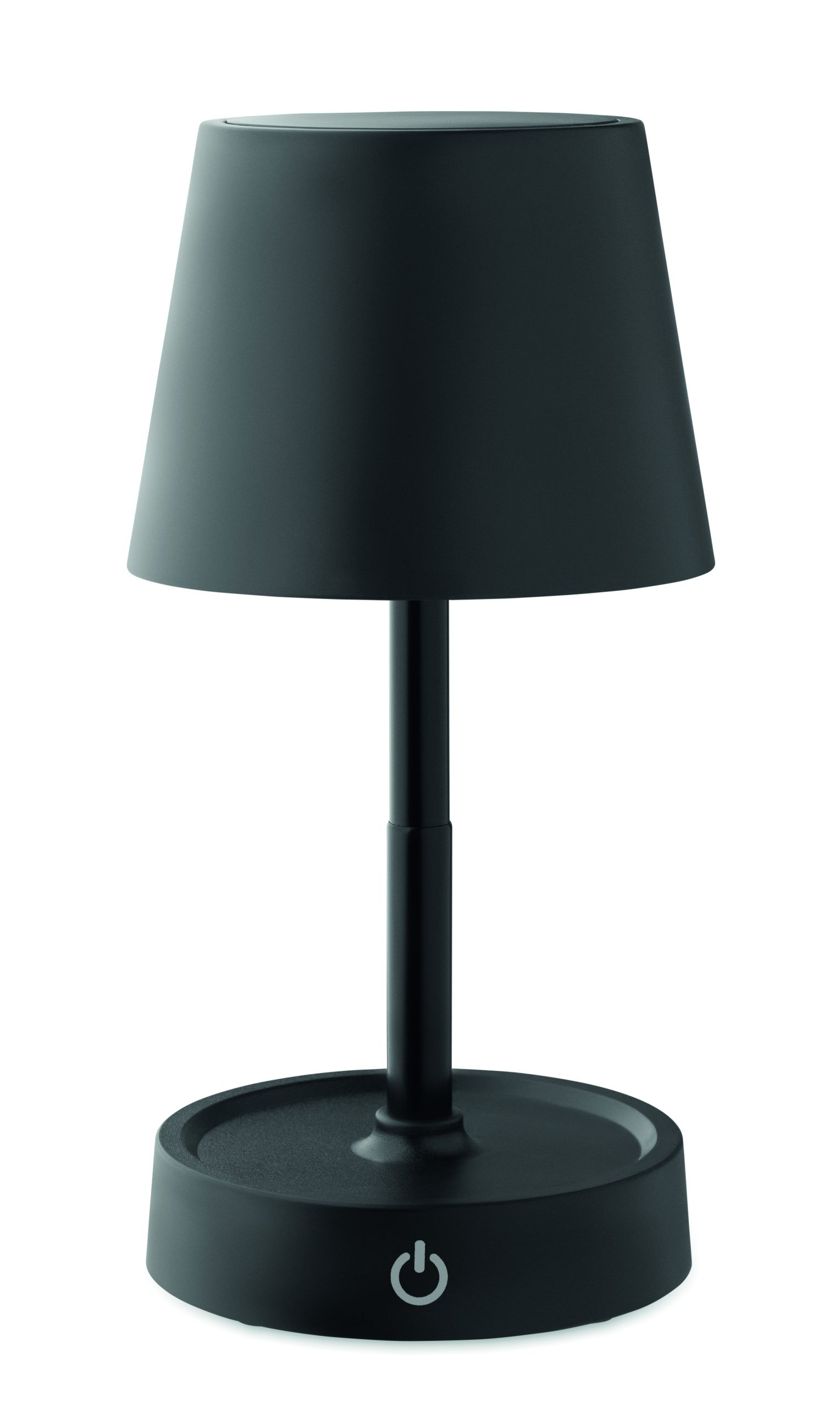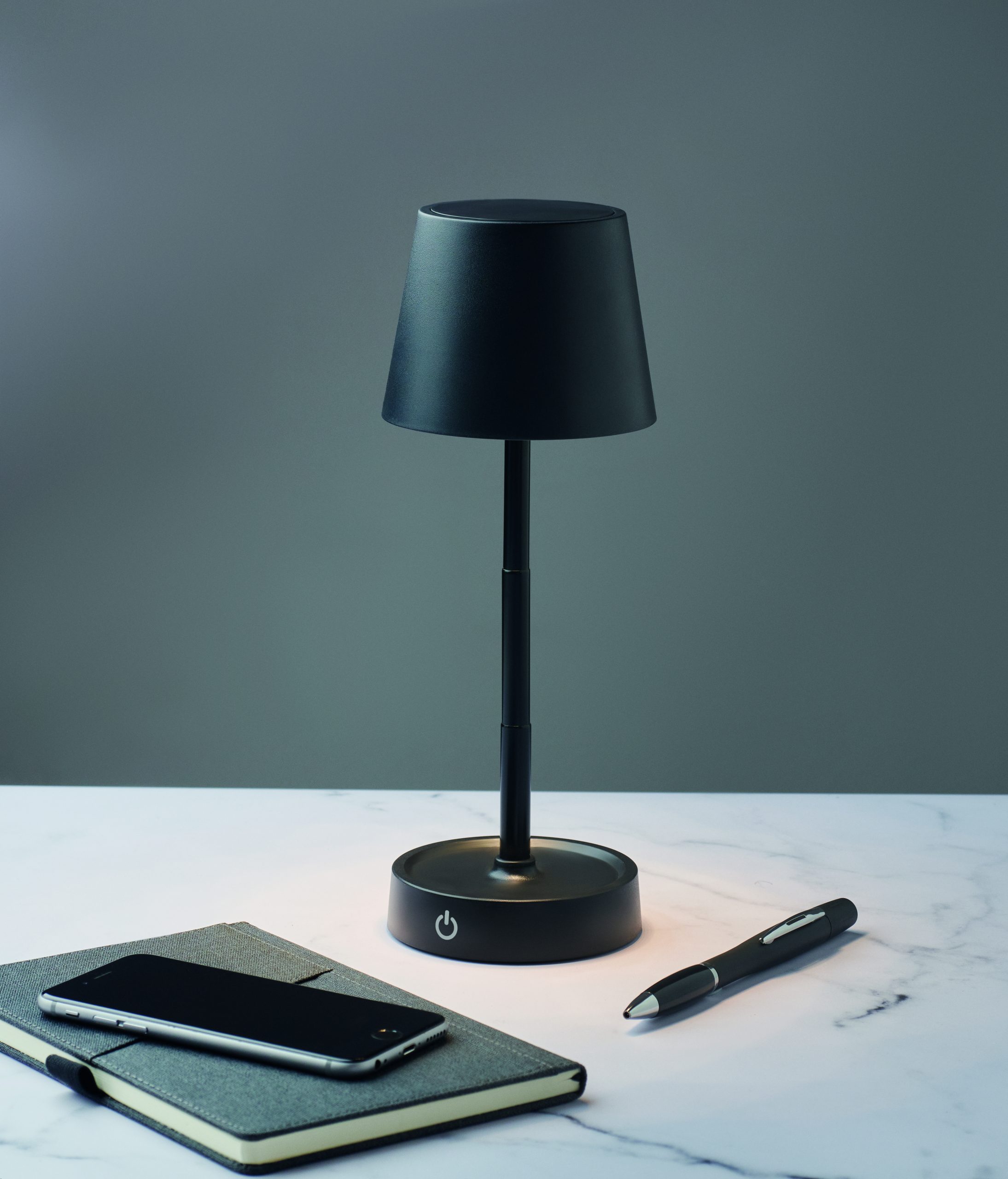 Wysuwana i ładowalna lampa stołowa USB z tworzywa ABS. Zawiera 12 diod LED z regulacją natężenia światła i bezstopniowym ściemnianiem. Wbudowany akumulator: 1200 mAh (6 godzin pracy po pełnym naładowaniu). W zestawie kabel USB typu A do ładowania typu C.