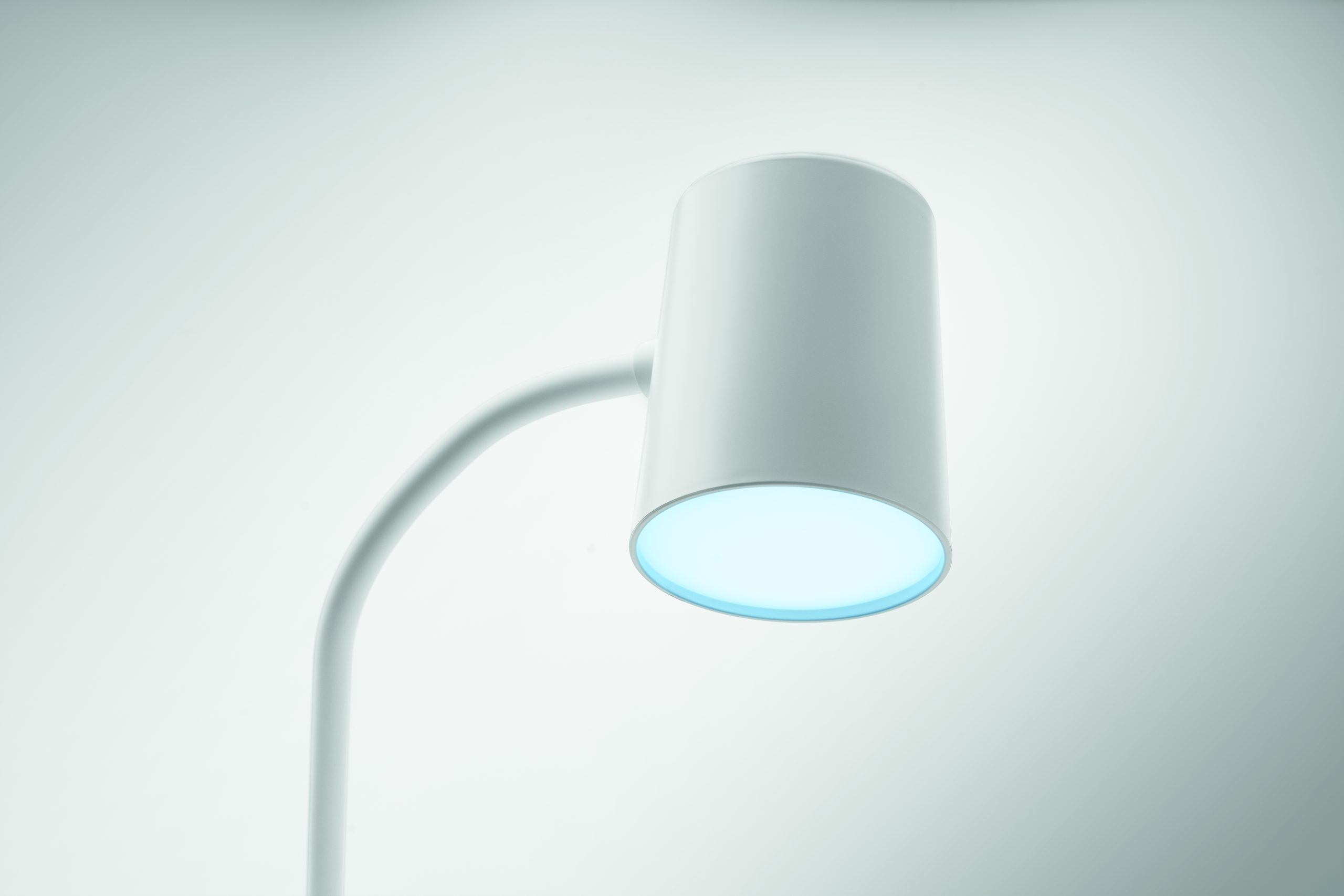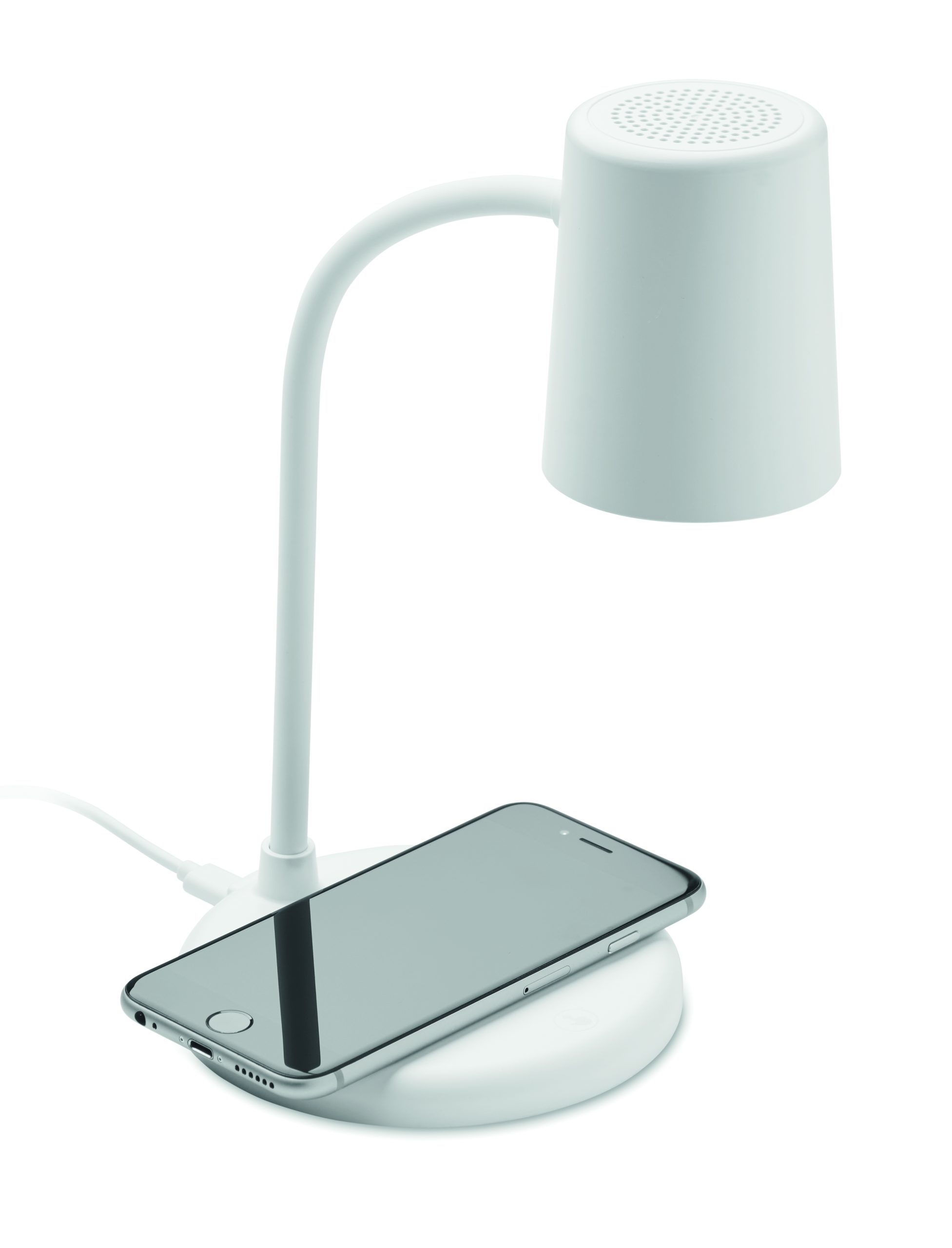 Lampa biurkowa z bezprzeowodową ładowarką o mocy 15 W z głośnikiem 5.1. Posiada regulację natężenia światła w 3 trybach: dziennym, zimnym i naturalnym. Dotykowy przycisk włączania/wyłączania. Wyjście: DC5V/1A (5W).