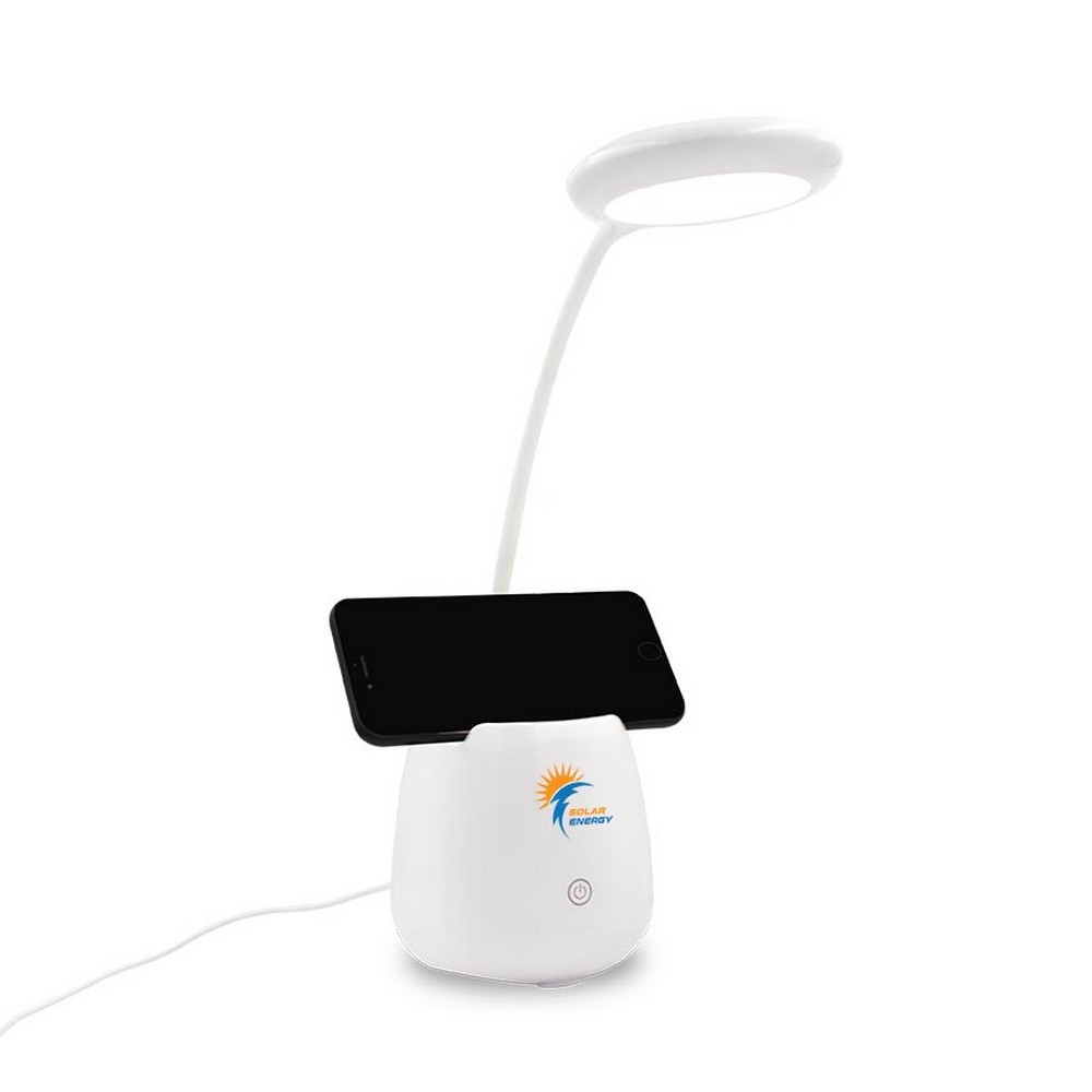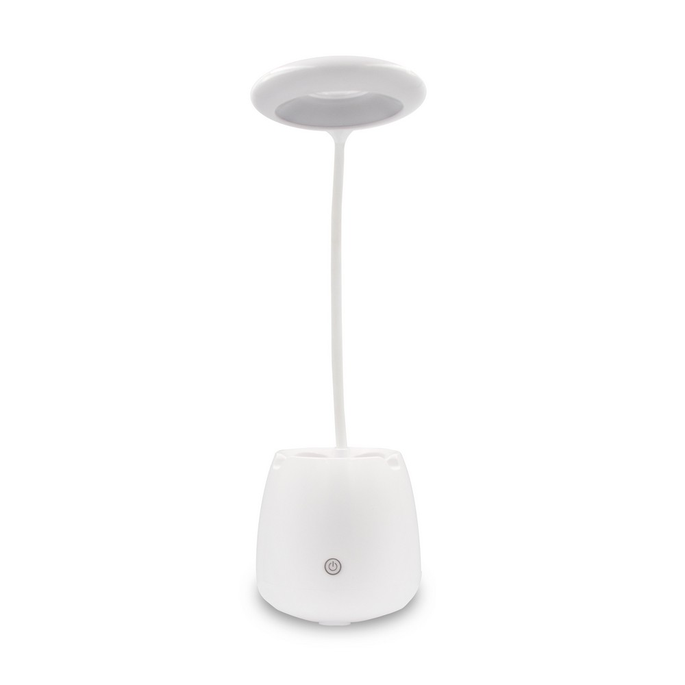 Elastyczna lampka na biurko, 3 tryby świecenia, bateria 1200 mAh, głośnik bezprzewodowy BT 5.0 3W, stojak na telefon, pojemnik na przybory do pisania, wejście AUX, przycisk dotykowy ON/OFF, kabel micro USB w komplecie