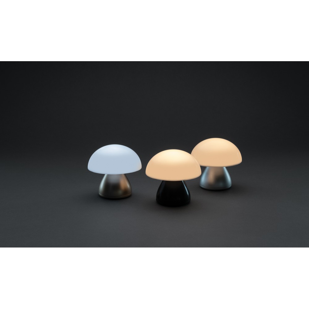 Lampka na biurko, 2 tryby świecenia, przycisk dotykowy w podstawie, wbudowany akumulator pozwala na świecenie do 5 godzin na jednym ładowaniu, ponowne ładowanie w 2 godziny, wejście USB typu C do ładowania, wykonana z ABS i aluminium z recyklingu z certyfikatem RCS, całkowita zawartość materiałów z recyklingu obliczona w oparciu o wagę całkowitą przedmiotu: 42%, w pudełku z papieru kraftowego z certyfikatem FSC® mix, ślad węglowy produktu: 1,21 kg CO2