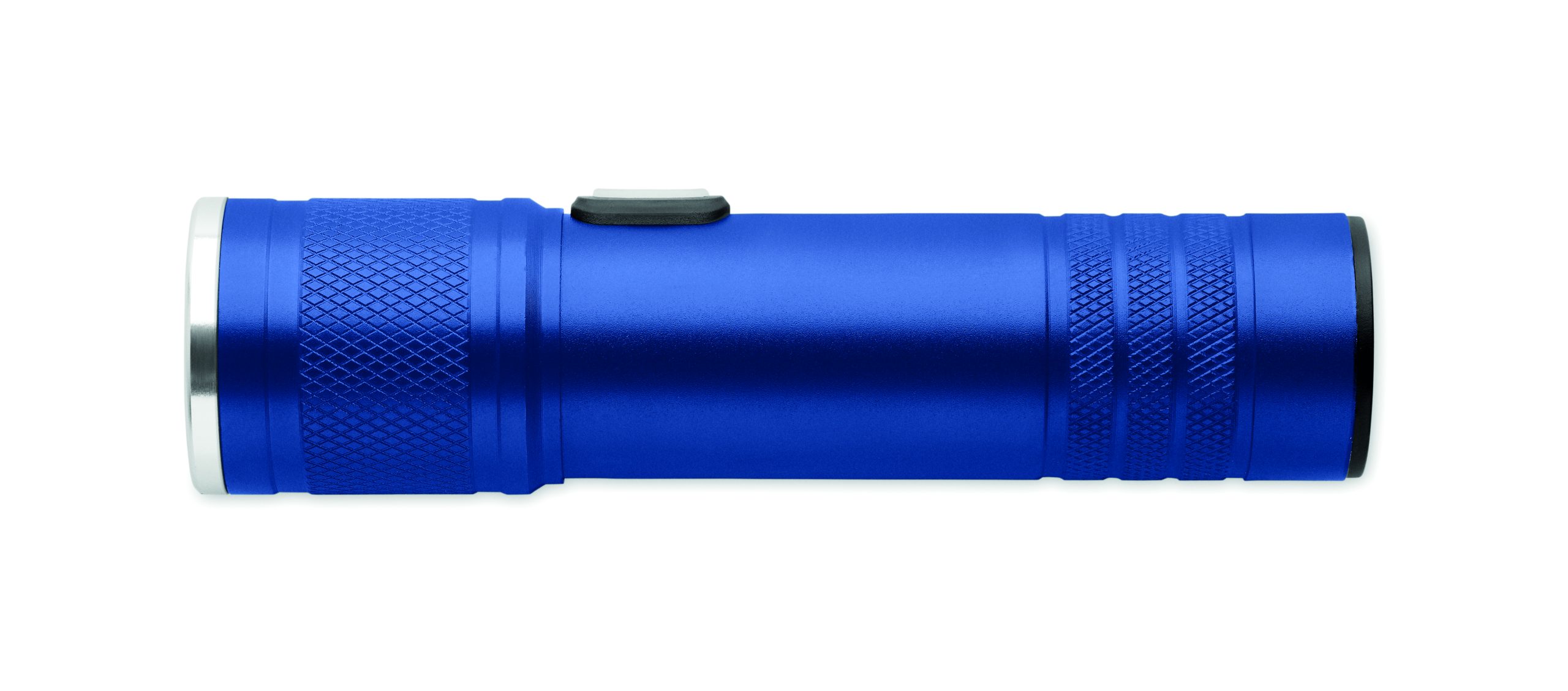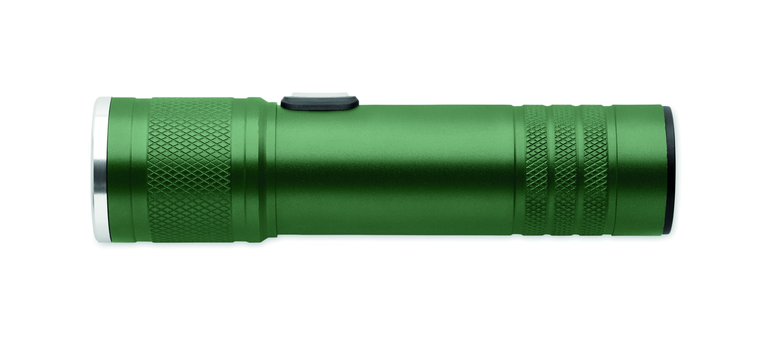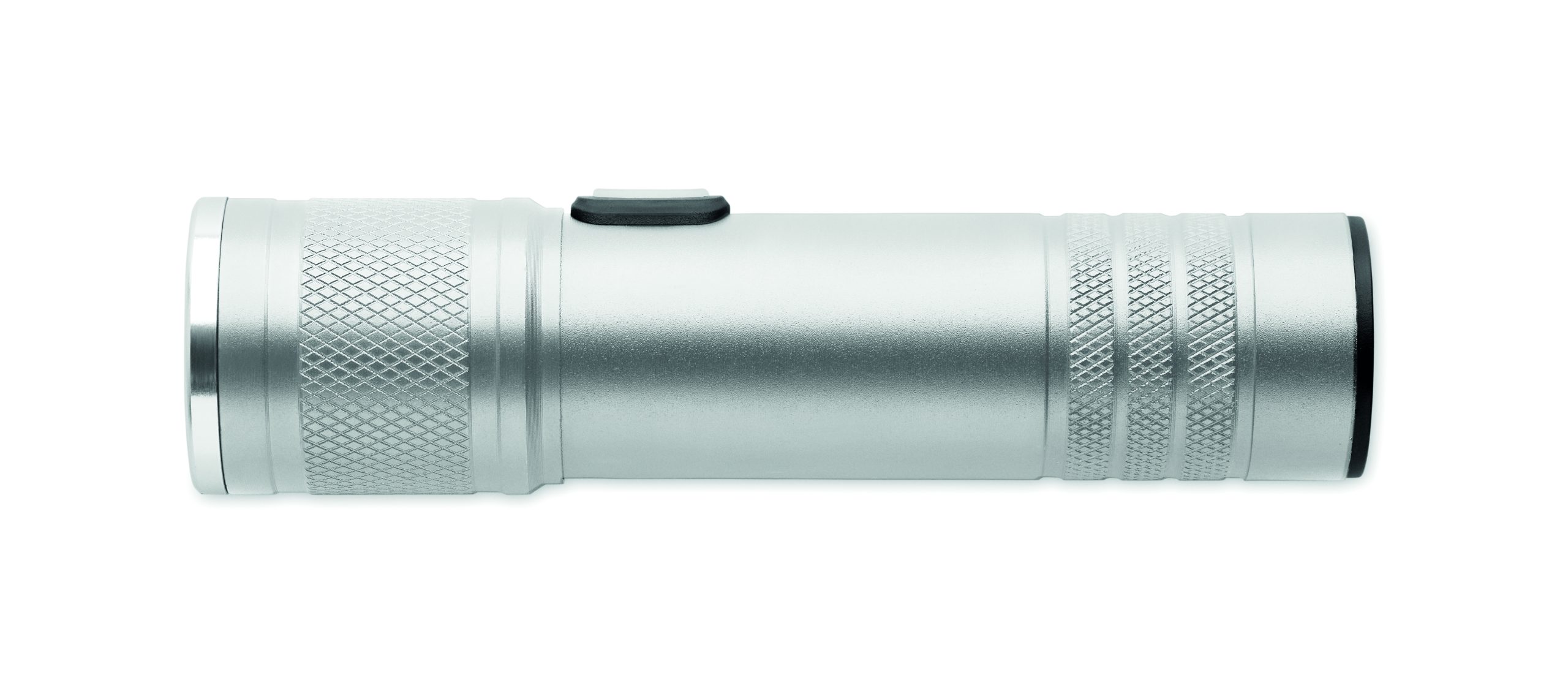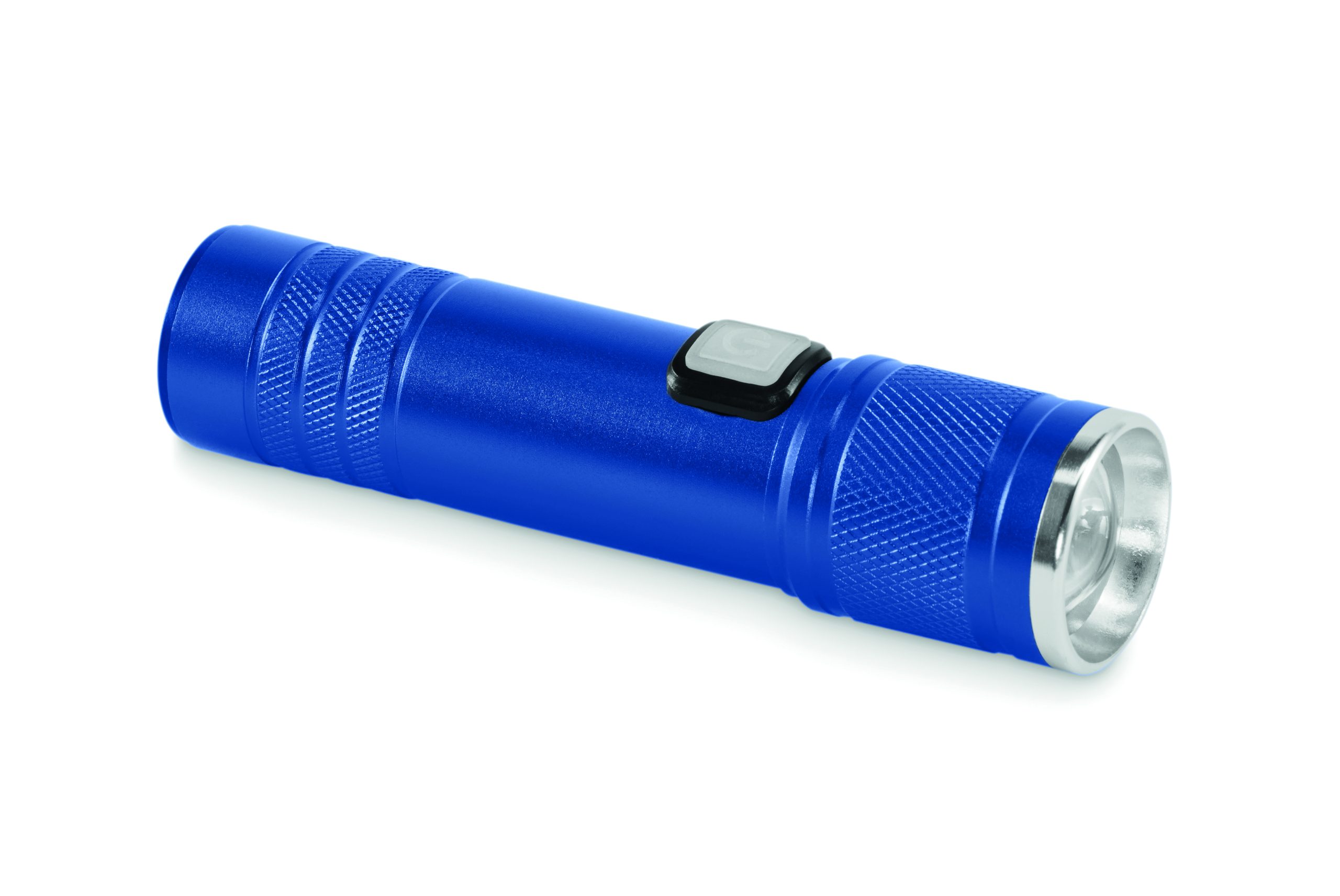 Latarka COB z możliwością ładowania, wykonana z aluminium pochodzącego z recyklingu. 100 lumenów z 3 ustawieniami światła i funkcją zoom. Wbudowany akumulator o pojemności 800 mAh. Kabel do ładowania w zestawie.