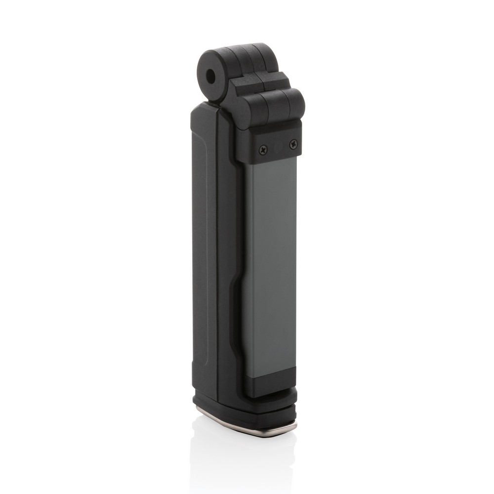 Latarka COB LED, jasność światła COB do 600 lumenów, LED do 200 lumenów, wykonana z materiałów z recyklingu, całkowita zawartość materiałów z recyklingu obliczona na podstawie wagi całkowitej przedmiotu: 25%, wbudowana bateria 2000 mAh, 6 trybów świecenia, wejście USB typu C, wyjście USB do ładowania urządzeń, czas świecenia na jednym ładowaniu do 3 godzin, ślad węglowy produktu: 0 kg CO2