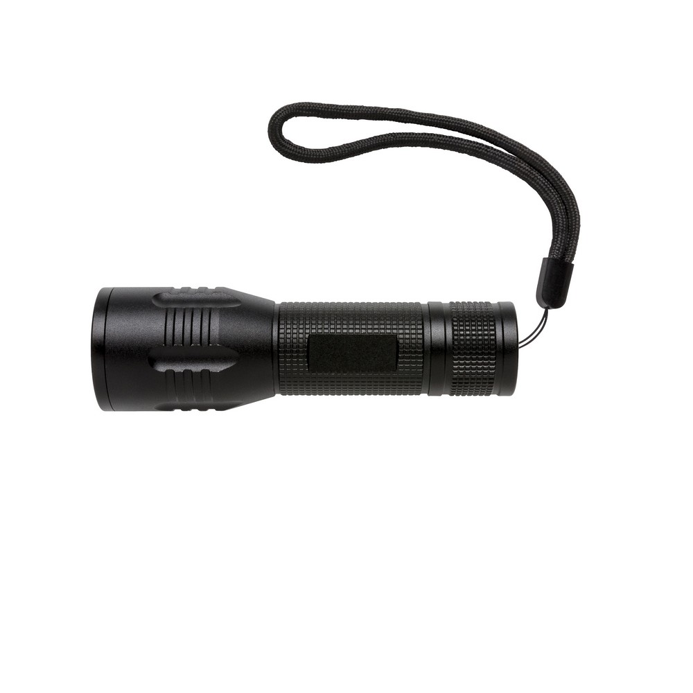 Latarka CREE 3W o bardzo jasnym świetle, wykonana z trwałego aluminium, 100 lumenów, czas pracy do 6 godzin, baterie w komplecie, ślad węglowy produktu: 1,48 kg CO2