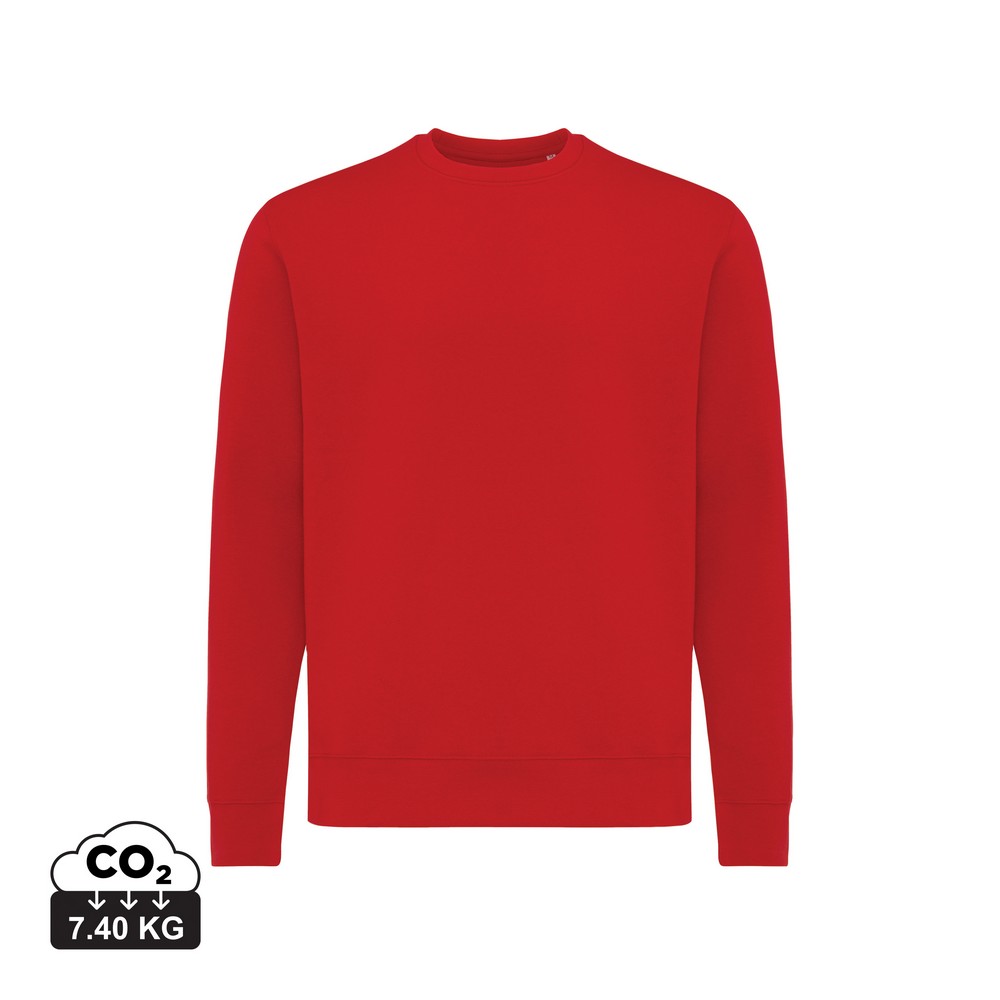 Lekki sweter, unisex, regularny krój, okrągły dekolt, długie rękawy, wykonana w 30% z bawełny z recyklingu i w 70% z bawełny organicznej o gramaturze 280 g/m2, posiada wbudowany znacznik AWARE™, który potwierdza wykorzystanie materiałów z recyklingu, posiada kod QR na metce, który prowadzi do cyfrowego paszportu produktu, 2% wpływów z każdego sprzedanego produktu z kolekcji Impact jest przekazywane na rzecz Water.org, ślad węglowy produktu: 7,4 kg CO2