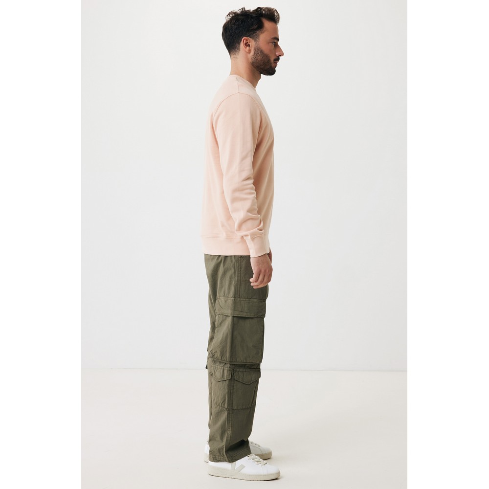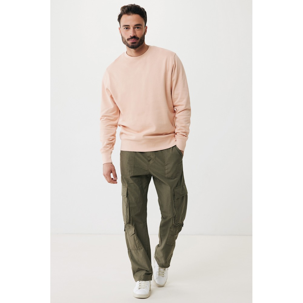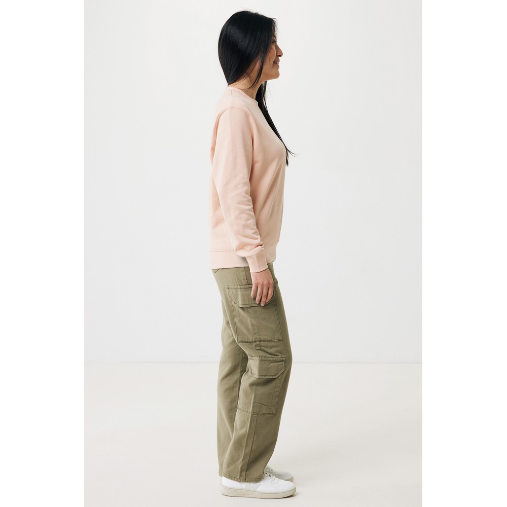 Lekki sweter, unisex, regularny krój, okrągły dekolt, długie rękawy, wykonana w 30% z bawełny z recyklingu i w 70% z bawełny organicznej o gramaturze 280 g/m2, posiada wbudowany znacznik AWARE™, który potwierdza wykorzystanie materiałów z recyklingu, posiada kod QR na metce, który prowadzi do cyfrowego paszportu produktu, 2% wpływów z każdego sprzedanego produktu z kolekcji Impact jest przekazywane na rzecz Water.org, ślad węglowy produktu: 7,04 kg CO2